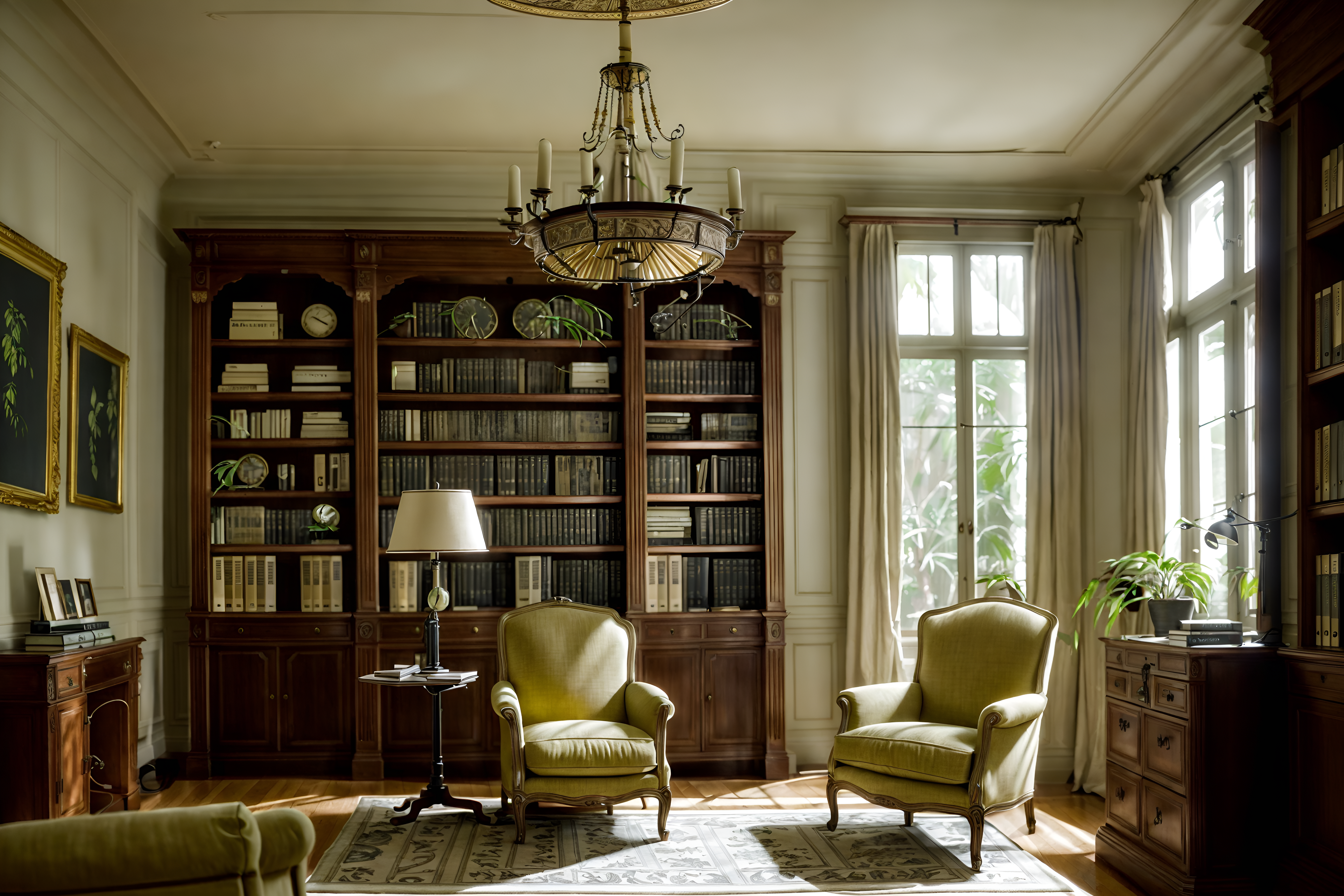 photo from pinterest of french-style interior designed (study room interior) with plant and bookshelves and writing desk and desk lamp and office chair and cabinets and lounge chair and plant cinematic photo, highly detailed, cinematic lighting, ultra-detailed, ultrarealistic, photorealism, 8k. trending on pinterest. french interior design style. masterpiece, cinematic light, ultrarealistic+, photorealistic+, 8k, raw photo, realistic, sharp focus on eyes, (symmetrical eyes), (intact eyes), hyperrealistic, highest quality, best quality, , highly detailed, masterpiece, best quality, extremely detailed 8k wallpaper, masterpiece, best quality, ultra-detailed, best shadow, detailed background, detailed face, detailed eyes, high contrast, best illumination, detailed face, dulux, caustic, dynamic angle, detailed glow. dramatic lighting. highly detailed, insanely detailed hair, symmetrical, intricate details, professionally retouched, 8k high definition. strong bokeh. award winning photo.