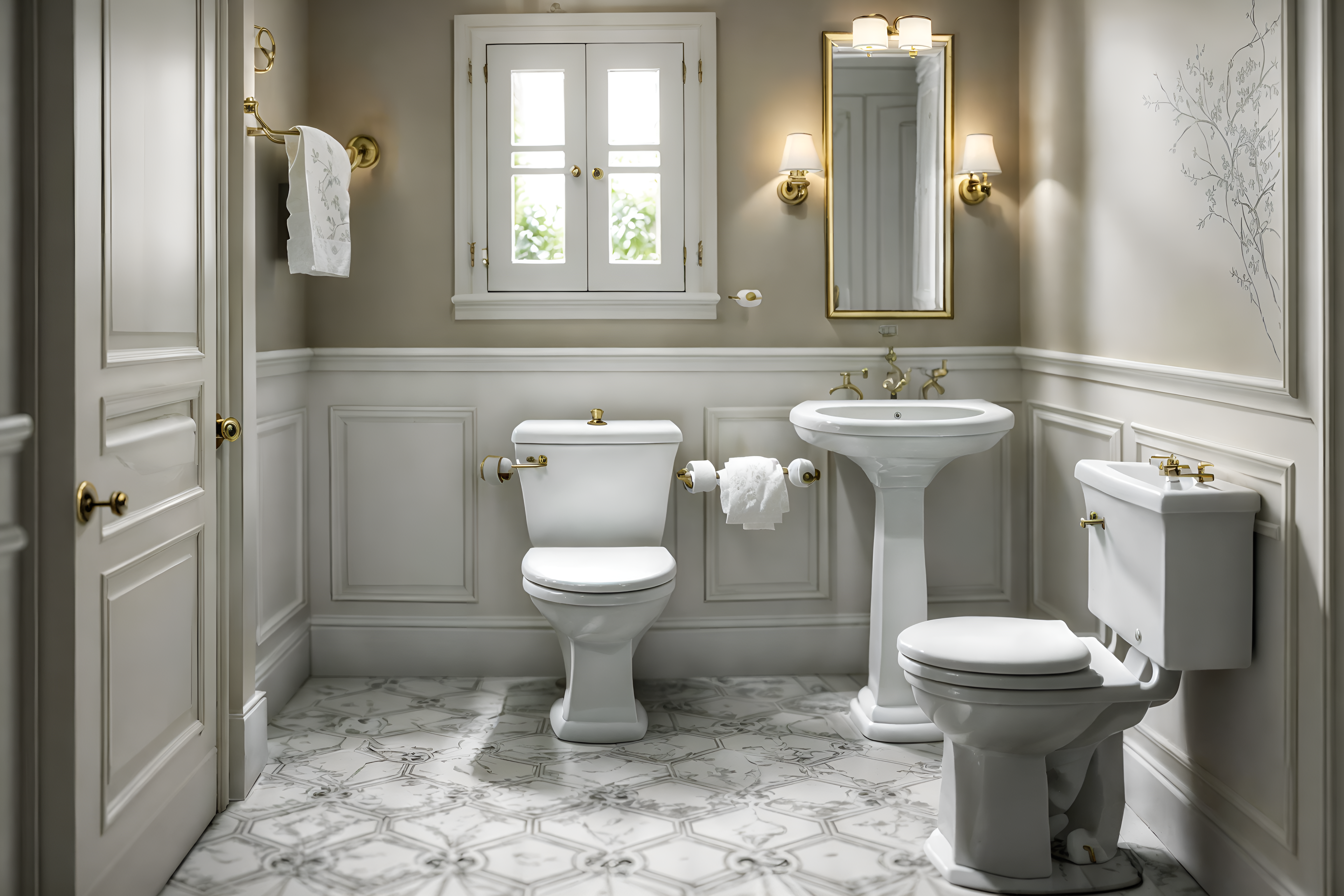 photo from pinterest of french-style interior designed (toilet interior) with toilet paper hanger and toilet with toilet seat up and sink with tap and toilet paper hanger cinematic photo, highly detailed, cinematic lighting, ultra-detailed, ultrarealistic, photorealism, 8k. trending on pinterest. french interior design style. masterpiece, cinematic light, ultrarealistic+, photorealistic+, 8k, raw photo, realistic, sharp focus on eyes, (symmetrical eyes), (intact eyes), hyperrealistic, highest quality, best quality, , highly detailed, masterpiece, best quality, extremely detailed 8k wallpaper, masterpiece, best quality, ultra-detailed, best shadow, detailed background, detailed face, detailed eyes, high contrast, best illumination, detailed face, dulux, caustic, dynamic angle, detailed glow. dramatic lighting. highly detailed, insanely detailed hair, symmetrical, intricate details, professionally retouched, 8k high definition. strong bokeh. award winning photo.