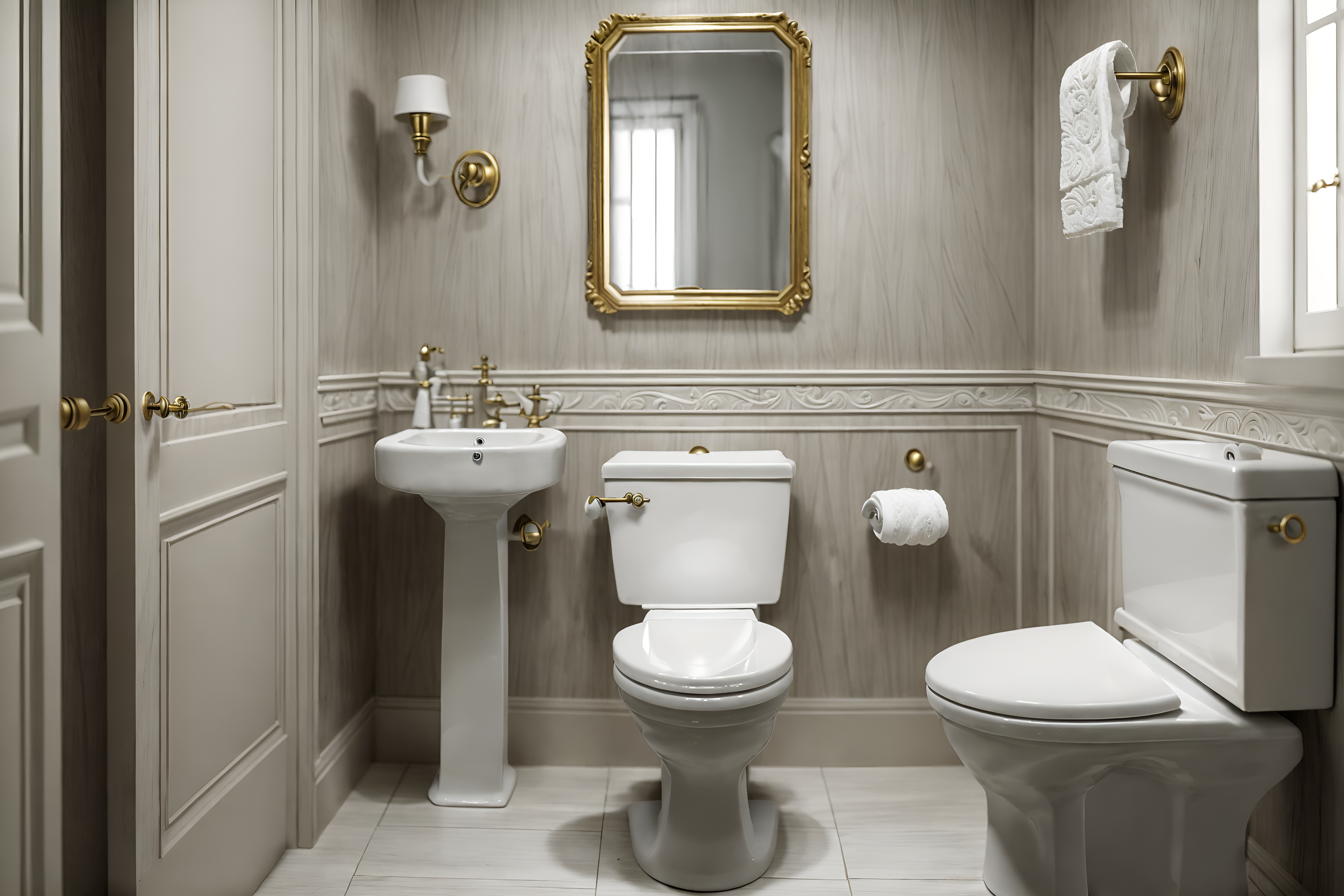 photo from pinterest of french-style interior designed (toilet interior) with toilet paper hanger and toilet with toilet seat up and sink with tap and toilet paper hanger cinematic photo, highly detailed, cinematic lighting, ultra-detailed, ultrarealistic, photorealism, 8k. trending on pinterest. french interior design style. masterpiece, cinematic light, ultrarealistic+, photorealistic+, 8k, raw photo, realistic, sharp focus on eyes, (symmetrical eyes), (intact eyes), hyperrealistic, highest quality, best quality, , highly detailed, masterpiece, best quality, extremely detailed 8k wallpaper, masterpiece, best quality, ultra-detailed, best shadow, detailed background, detailed face, detailed eyes, high contrast, best illumination, detailed face, dulux, caustic, dynamic angle, detailed glow. dramatic lighting. highly detailed, insanely detailed hair, symmetrical, intricate details, professionally retouched, 8k high definition. strong bokeh. award winning photo.