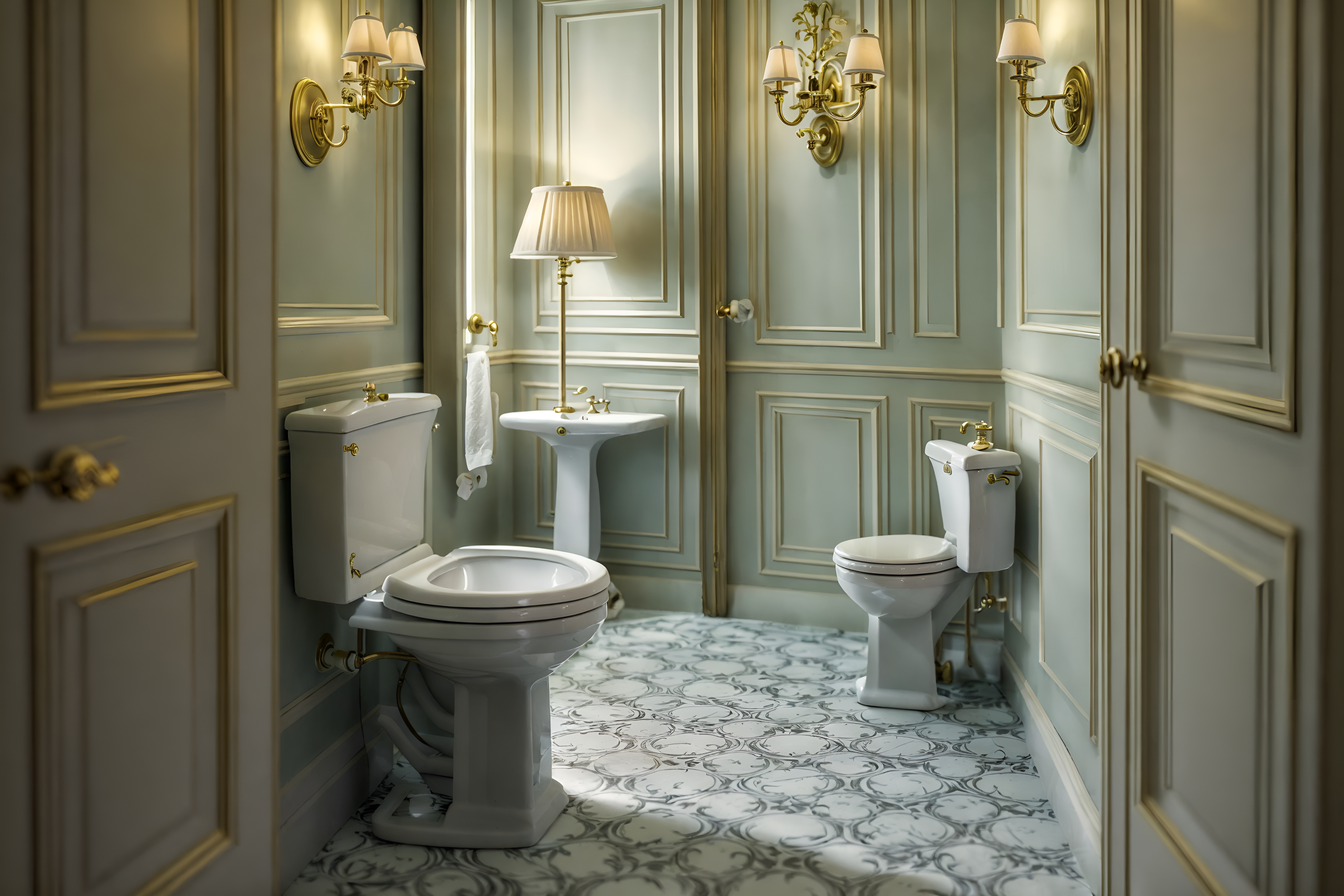 photo from pinterest of french-style interior designed (toilet interior) with toilet paper hanger and toilet with toilet seat up and sink with tap and toilet paper hanger cinematic photo, highly detailed, cinematic lighting, ultra-detailed, ultrarealistic, photorealism, 8k. trending on pinterest. french interior design style. masterpiece, cinematic light, ultrarealistic+, photorealistic+, 8k, raw photo, realistic, sharp focus on eyes, (symmetrical eyes), (intact eyes), hyperrealistic, highest quality, best quality, , highly detailed, masterpiece, best quality, extremely detailed 8k wallpaper, masterpiece, best quality, ultra-detailed, best shadow, detailed background, detailed face, detailed eyes, high contrast, best illumination, detailed face, dulux, caustic, dynamic angle, detailed glow. dramatic lighting. highly detailed, insanely detailed hair, symmetrical, intricate details, professionally retouched, 8k high definition. strong bokeh. award winning photo.