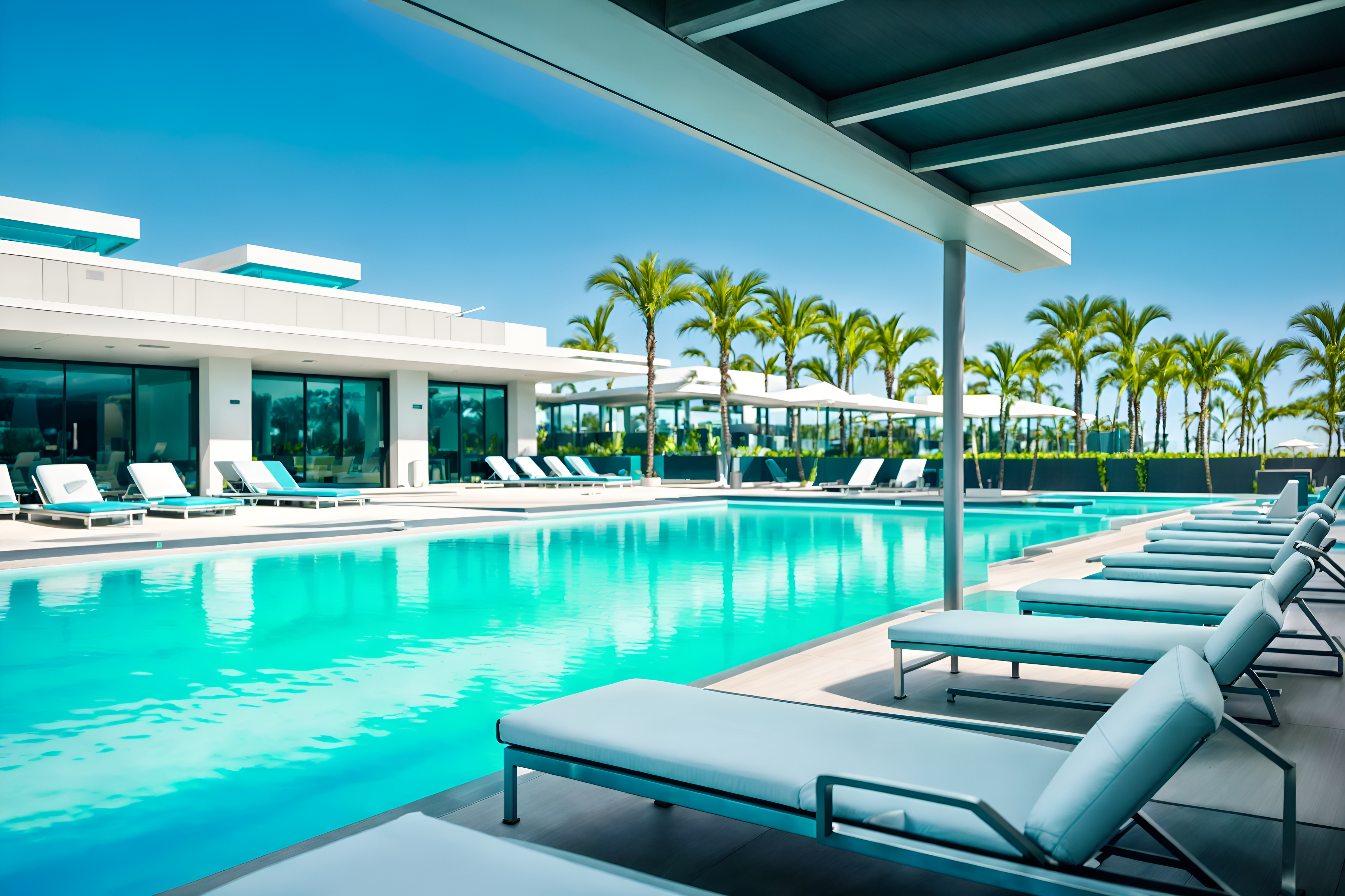 photo from pinterest of futuristic-style designed (outdoor pool area ) with pool lounge chairs and pool and pool lights and pool lounge chairs. . with neutral background and bright accents and steel finishing and floating surfaces and futurism minimalist and minimalist clean lines and light colors and futurism and futuristic . . cinematic photo, highly detailed, cinematic lighting, ultra-detailed, ultrarealistic, photorealism, 8k. trending on pinterest. futuristic design style. masterpiece, cinematic light, ultrarealistic+, photorealistic+, 8k, raw photo, realistic, sharp focus on eyes, (symmetrical eyes), (intact eyes), hyperrealistic, highest quality, best quality, , highly detailed, masterpiece, best quality, extremely detailed 8k wallpaper, masterpiece, best quality, ultra-detailed, best shadow, detailed background, detailed face, detailed eyes, high contrast, best illumination, detailed face, dulux, caustic, dynamic angle, detailed glow. dramatic lighting. highly detailed, insanely detailed hair, symmetrical, intricate details, professionally retouched, 8k high definition. strong bokeh. award winning photo.
