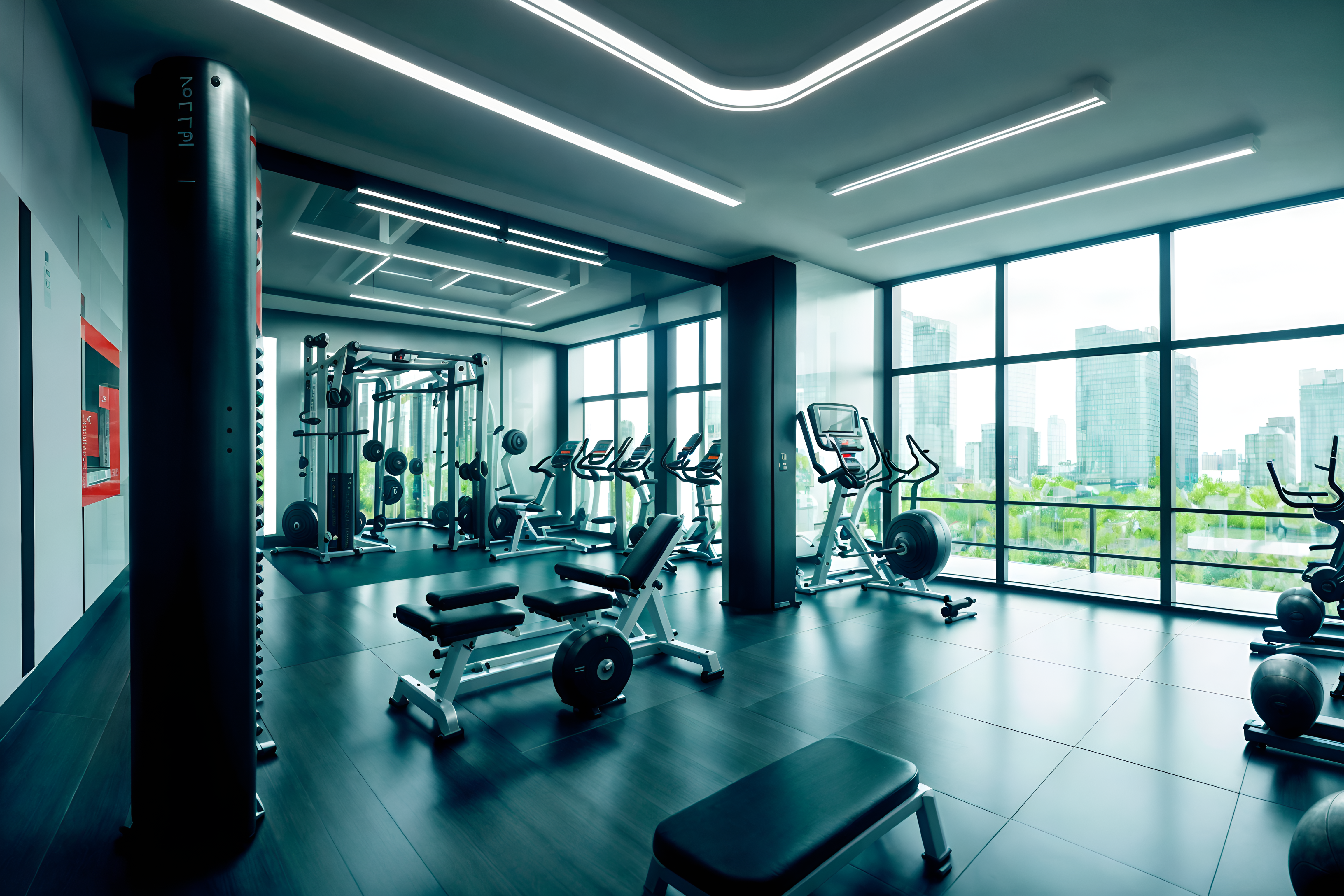 photo from pinterest of futuristic-style interior designed (fitness gym interior) with squat rack and bench press and crosstrainer and exercise bicycle and dumbbell stand and squat rack. . with smooth marble and minimalist clean lines and smooth polished marble and light colors and floating surfaces and glass panes and futuristic interior and circular shapes. . cinematic photo, highly detailed, cinematic lighting, ultra-detailed, ultrarealistic, photorealism, 8k. trending on pinterest. futuristic interior design style. masterpiece, cinematic light, ultrarealistic+, photorealistic+, 8k, raw photo, realistic, sharp focus on eyes, (symmetrical eyes), (intact eyes), hyperrealistic, highest quality, best quality, , highly detailed, masterpiece, best quality, extremely detailed 8k wallpaper, masterpiece, best quality, ultra-detailed, best shadow, detailed background, detailed face, detailed eyes, high contrast, best illumination, detailed face, dulux, caustic, dynamic angle, detailed glow. dramatic lighting. highly detailed, insanely detailed hair, symmetrical, intricate details, professionally retouched, 8k high definition. strong bokeh. award winning photo.