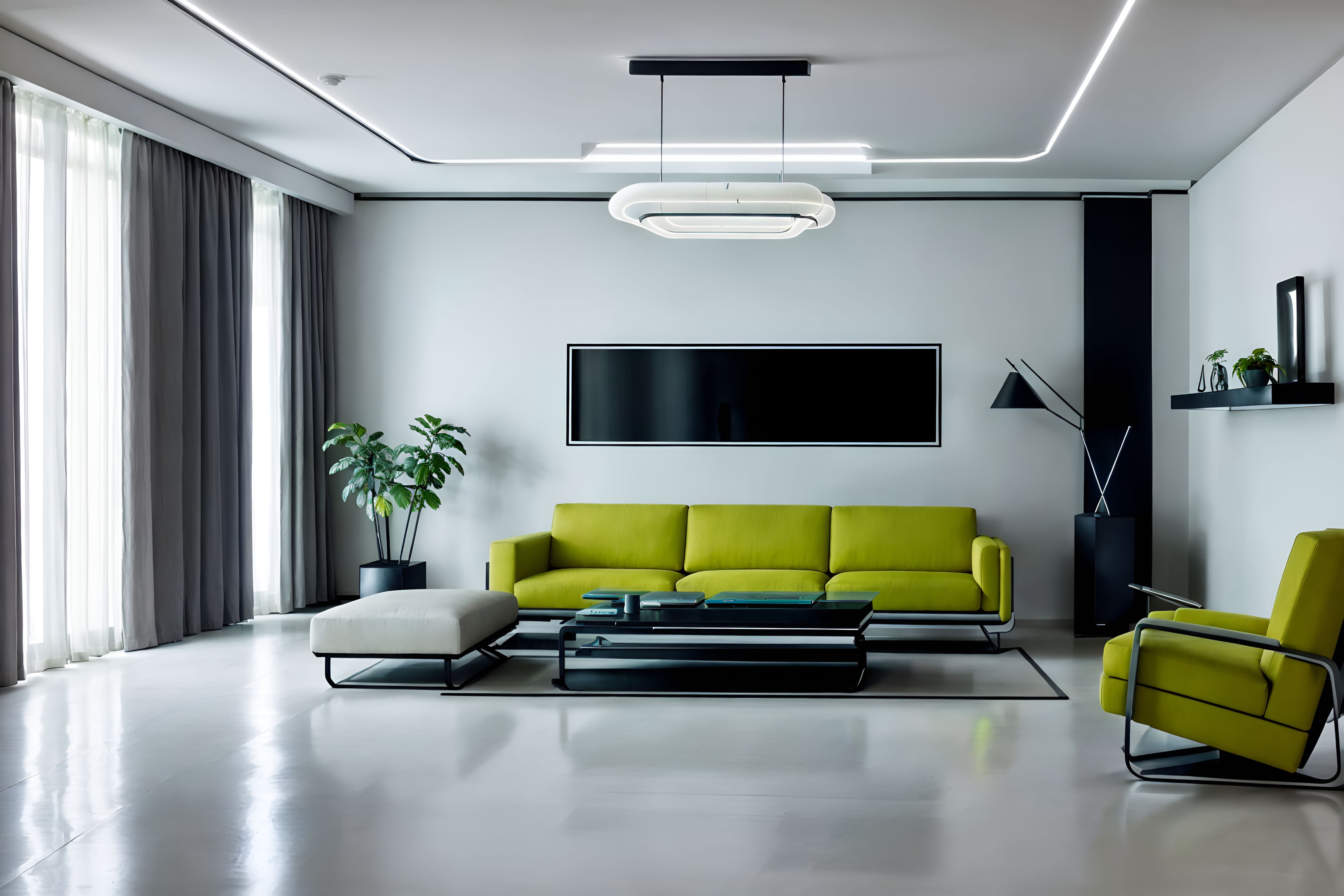 photo from pinterest of futuristic-style interior designed (living room interior) with sofa and furniture and occasional tables and televisions and rug and chairs and plant and electric lamps. . with minimalist clean lines and strong geometric walls and futurism and futuristic interior and futurism minimalist interior and steel finishing and neutral background and bright accents and smooth marble. . cinematic photo, highly detailed, cinematic lighting, ultra-detailed, ultrarealistic, photorealism, 8k. trending on pinterest. futuristic interior design style. masterpiece, cinematic light, ultrarealistic+, photorealistic+, 8k, raw photo, realistic, sharp focus on eyes, (symmetrical eyes), (intact eyes), hyperrealistic, highest quality, best quality, , highly detailed, masterpiece, best quality, extremely detailed 8k wallpaper, masterpiece, best quality, ultra-detailed, best shadow, detailed background, detailed face, detailed eyes, high contrast, best illumination, detailed face, dulux, caustic, dynamic angle, detailed glow. dramatic lighting. highly detailed, insanely detailed hair, symmetrical, intricate details, professionally retouched, 8k high definition. strong bokeh. award winning photo.