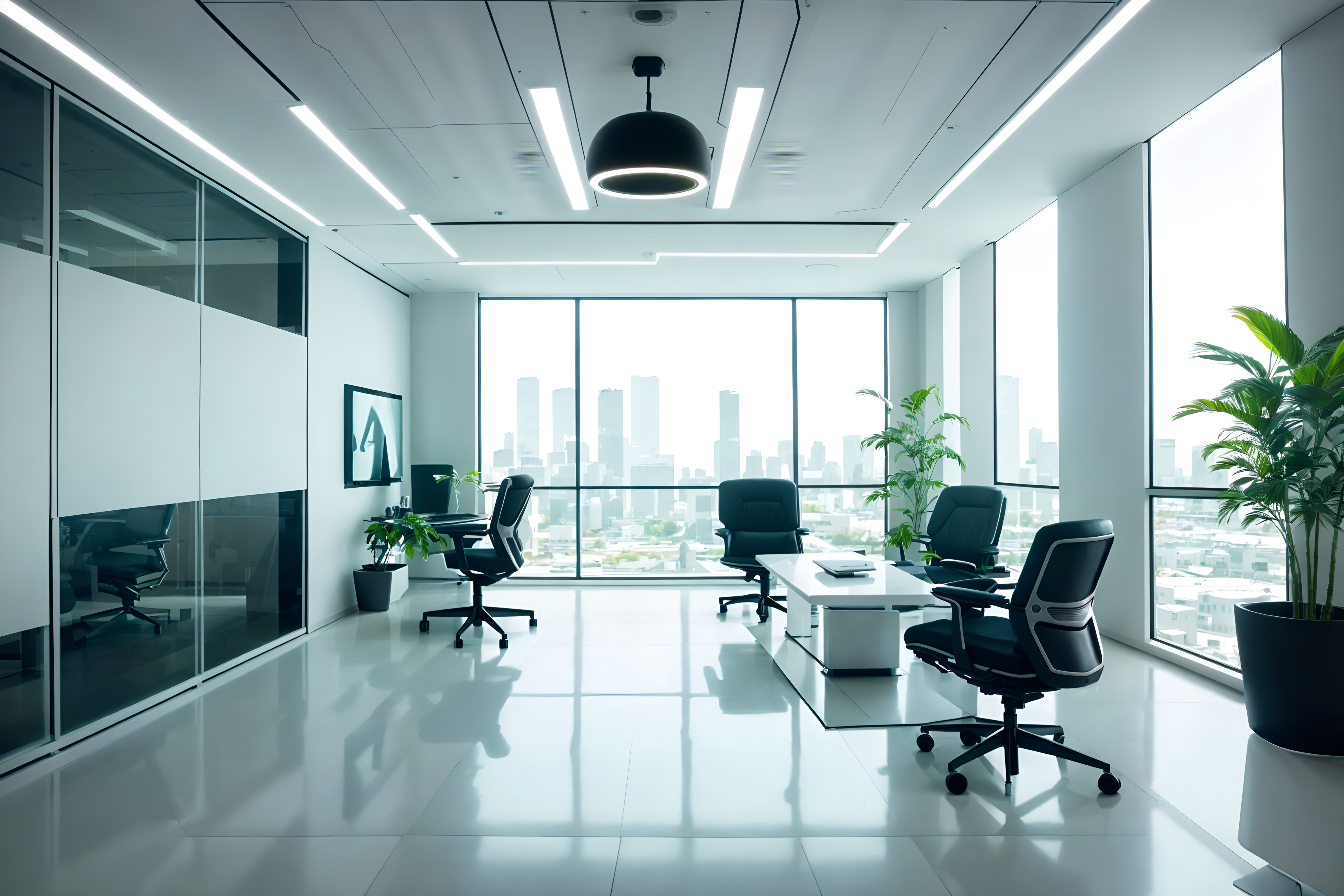 photo from pinterest of futuristic-style interior designed (office interior) with plants and computer desks and office chairs and cabinets and seating area with sofa and desk lamps and lounge chairs and windows. . with light colors and circular shapes and minimalist clean lines and glass panes and monochromatic palette and smooth polished marble and strong geometric walls and spaceship interior. . cinematic photo, highly detailed, cinematic lighting, ultra-detailed, ultrarealistic, photorealism, 8k. trending on pinterest. futuristic interior design style. masterpiece, cinematic light, ultrarealistic+, photorealistic+, 8k, raw photo, realistic, sharp focus on eyes, (symmetrical eyes), (intact eyes), hyperrealistic, highest quality, best quality, , highly detailed, masterpiece, best quality, extremely detailed 8k wallpaper, masterpiece, best quality, ultra-detailed, best shadow, detailed background, detailed face, detailed eyes, high contrast, best illumination, detailed face, dulux, caustic, dynamic angle, detailed glow. dramatic lighting. highly detailed, insanely detailed hair, symmetrical, intricate details, professionally retouched, 8k high definition. strong bokeh. award winning photo.