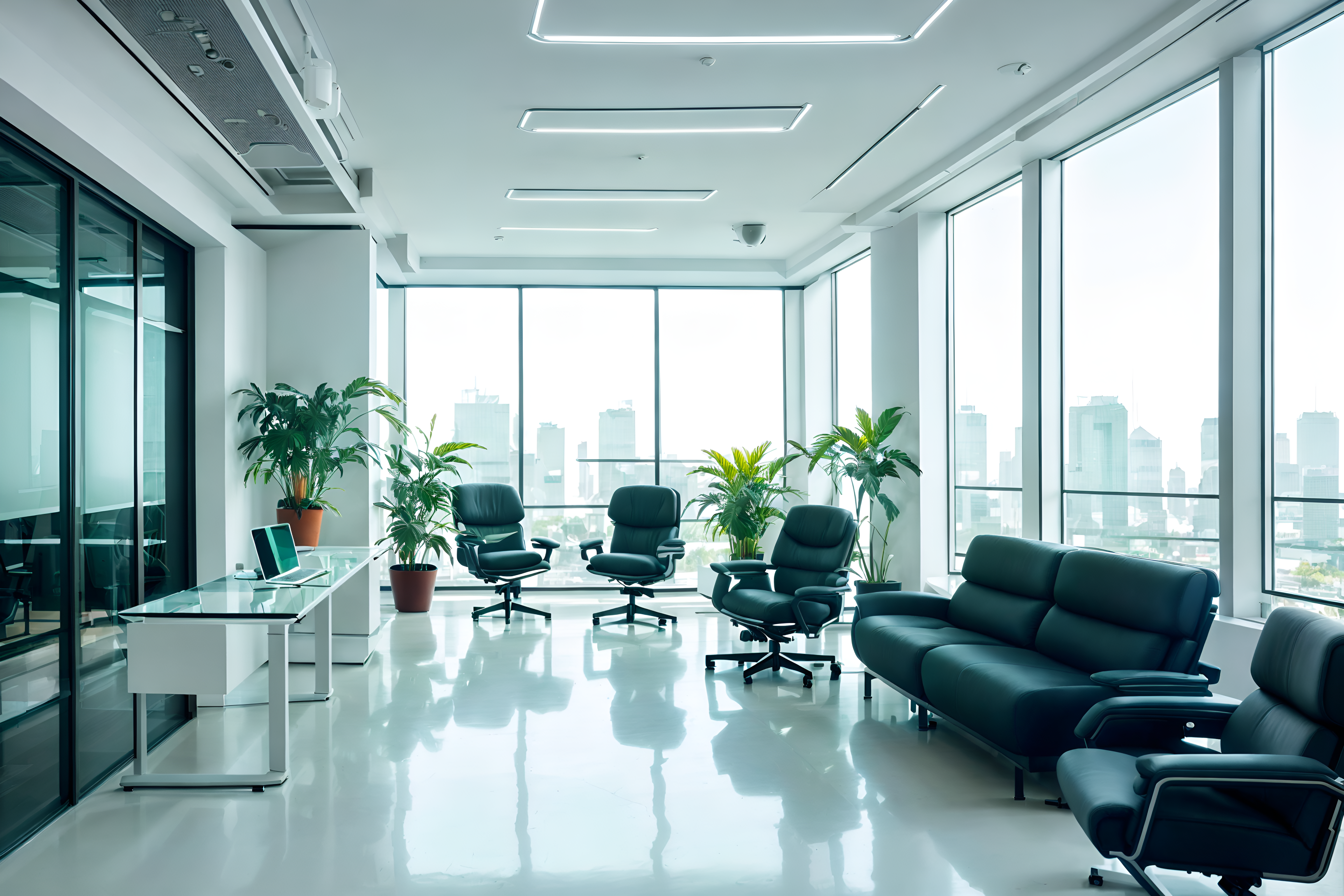 photo from pinterest of futuristic-style interior designed (office interior) with plants and computer desks and office chairs and cabinets and seating area with sofa and desk lamps and lounge chairs and windows. . with light colors and circular shapes and minimalist clean lines and glass panes and monochromatic palette and smooth polished marble and strong geometric walls and spaceship interior. . cinematic photo, highly detailed, cinematic lighting, ultra-detailed, ultrarealistic, photorealism, 8k. trending on pinterest. futuristic interior design style. masterpiece, cinematic light, ultrarealistic+, photorealistic+, 8k, raw photo, realistic, sharp focus on eyes, (symmetrical eyes), (intact eyes), hyperrealistic, highest quality, best quality, , highly detailed, masterpiece, best quality, extremely detailed 8k wallpaper, masterpiece, best quality, ultra-detailed, best shadow, detailed background, detailed face, detailed eyes, high contrast, best illumination, detailed face, dulux, caustic, dynamic angle, detailed glow. dramatic lighting. highly detailed, insanely detailed hair, symmetrical, intricate details, professionally retouched, 8k high definition. strong bokeh. award winning photo.