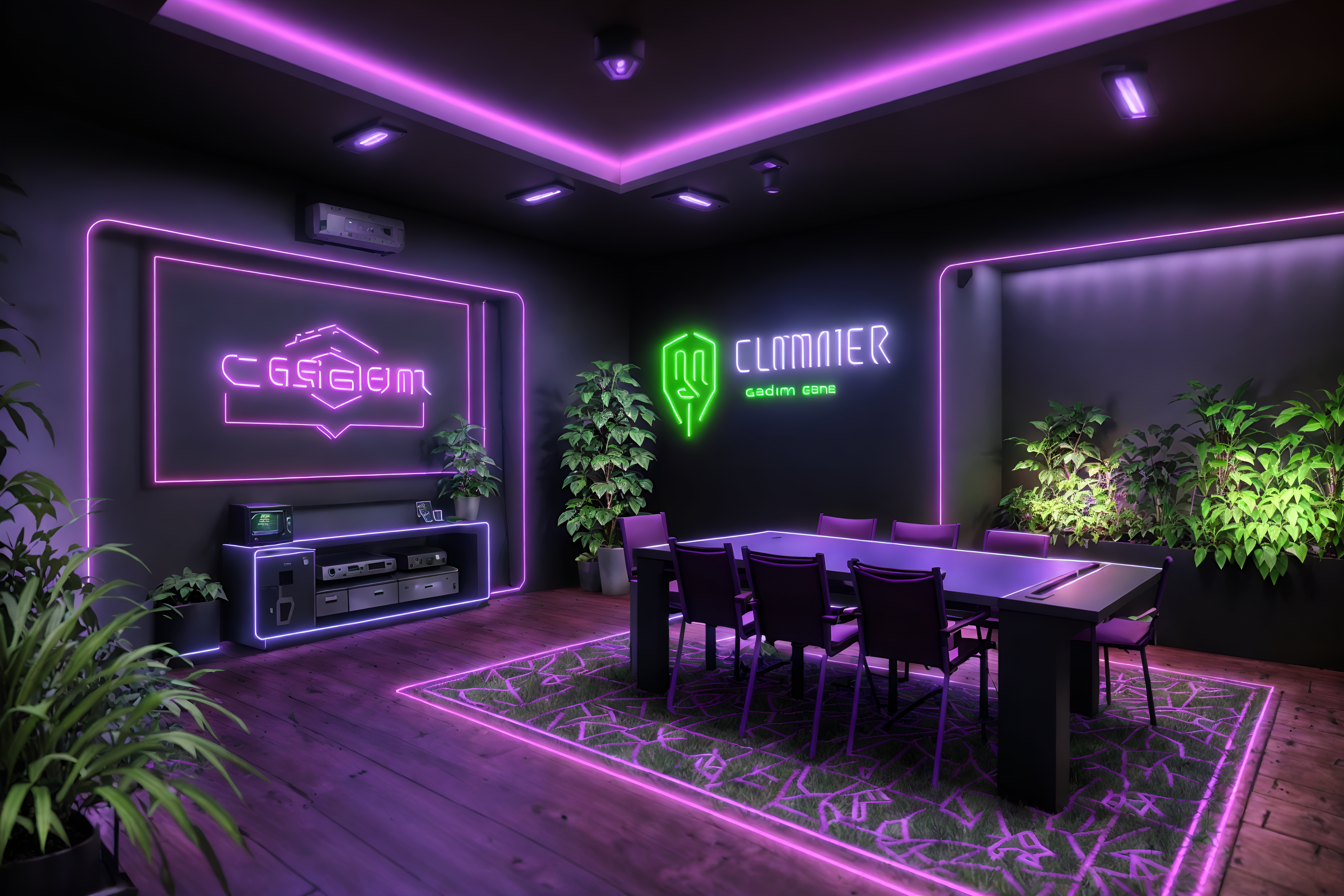 photo from pinterest of gaming room-style designed (outdoor garden ) with garden plants and garden tree and grass and garden plants. . with purple and red lights and at night and dark room and neon letters on wall and dark walls and gaming chair and purple, red and blue fade light and neon lights. . cinematic photo, highly detailed, cinematic lighting, ultra-detailed, ultrarealistic, photorealism, 8k. trending on pinterest. gaming room design style. masterpiece, cinematic light, ultrarealistic+, photorealistic+, 8k, raw photo, realistic, sharp focus on eyes, (symmetrical eyes), (intact eyes), hyperrealistic, highest quality, best quality, , highly detailed, masterpiece, best quality, extremely detailed 8k wallpaper, masterpiece, best quality, ultra-detailed, best shadow, detailed background, detailed face, detailed eyes, high contrast, best illumination, detailed face, dulux, caustic, dynamic angle, detailed glow. dramatic lighting. highly detailed, insanely detailed hair, symmetrical, intricate details, professionally retouched, 8k high definition. strong bokeh. award winning photo.