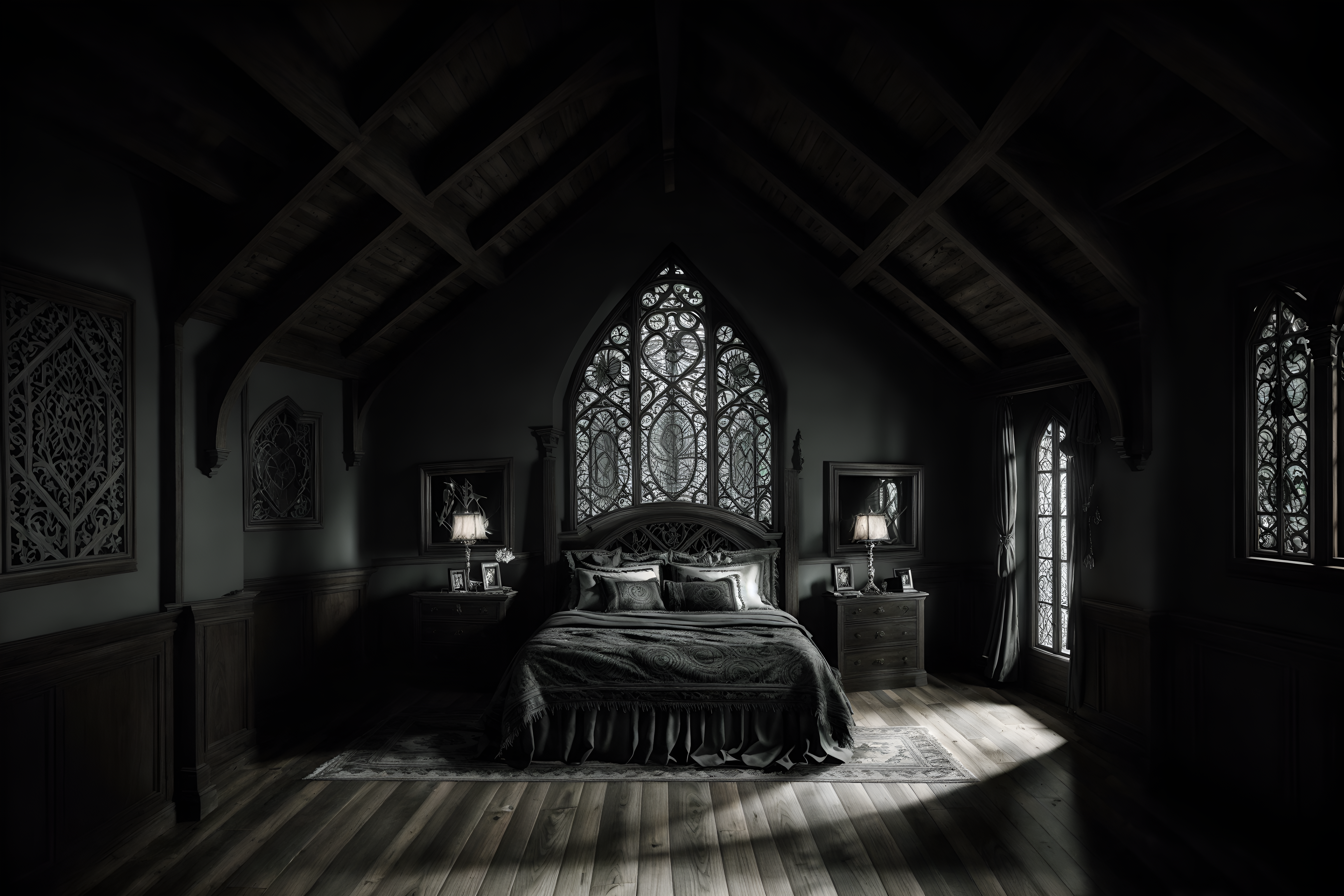 photo from pinterest of gothic-style interior designed (attic interior) . . cinematic photo, highly detailed, cinematic lighting, ultra-detailed, ultrarealistic, photorealism, 8k. trending on pinterest. gothic interior design style. masterpiece, cinematic light, ultrarealistic+, photorealistic+, 8k, raw photo, realistic, sharp focus on eyes, (symmetrical eyes), (intact eyes), hyperrealistic, highest quality, best quality, , highly detailed, masterpiece, best quality, extremely detailed 8k wallpaper, masterpiece, best quality, ultra-detailed, best shadow, detailed background, detailed face, detailed eyes, high contrast, best illumination, detailed face, dulux, caustic, dynamic angle, detailed glow. dramatic lighting. highly detailed, insanely detailed hair, symmetrical, intricate details, professionally retouched, 8k high definition. strong bokeh. award winning photo.