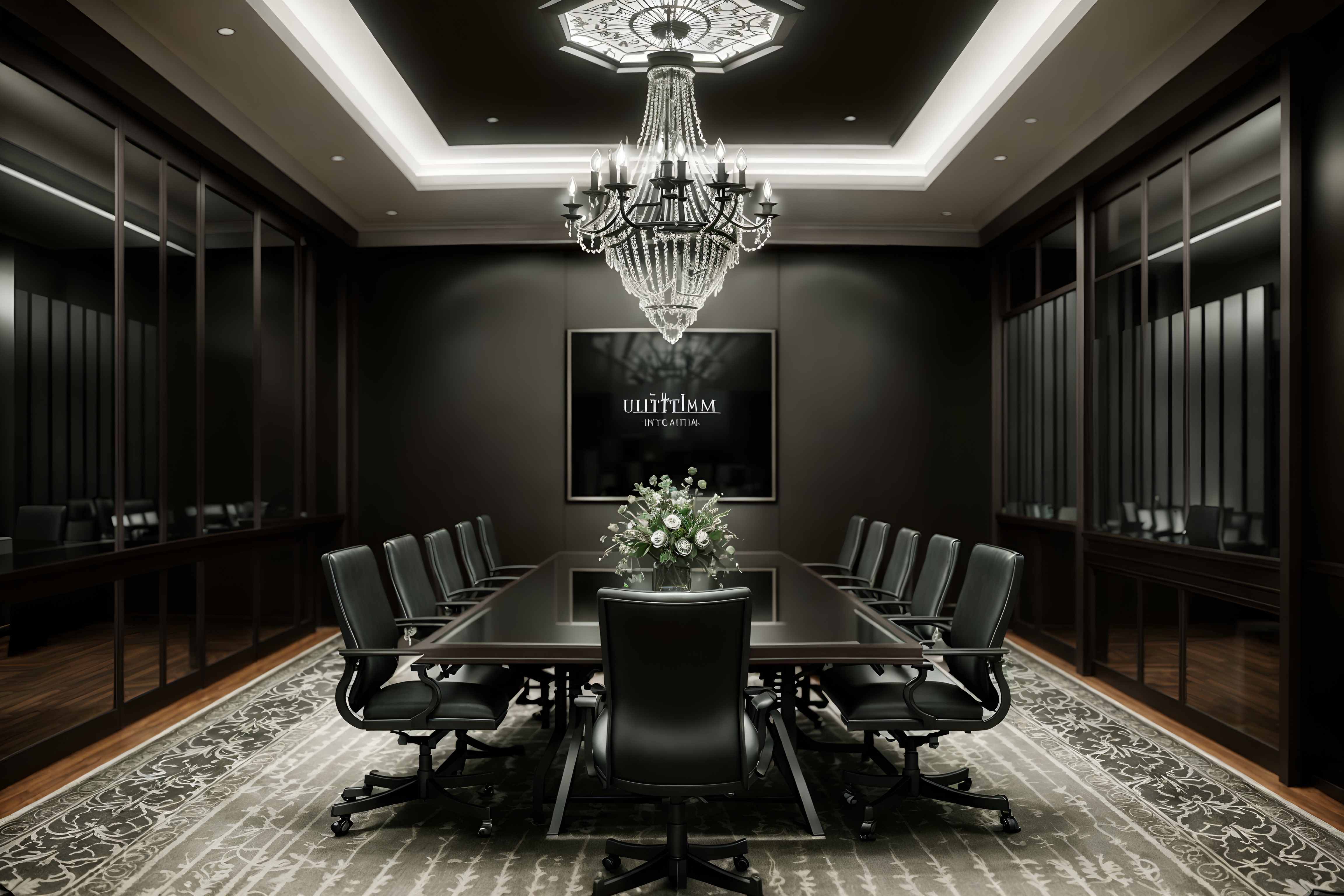 photo from pinterest of gothic-style interior designed (meeting room interior) with boardroom table and glass walls and painting or photo on wall and vase and plant and office chairs and glass doors and cabinets cinematic photo, highly detailed, cinematic lighting, ultra-detailed, ultrarealistic, photorealism, 8k. trending on pinterest. gothic interior design style. masterpiece, cinematic light, ultrarealistic+, photorealistic+, 8k, raw photo, realistic, sharp focus on eyes, (symmetrical eyes), (intact eyes), hyperrealistic, highest quality, best quality, , highly detailed, masterpiece, best quality, extremely detailed 8k wallpaper, masterpiece, best quality, ultra-detailed, best shadow, detailed background, detailed face, detailed eyes, high contrast, best illumination, detailed face, dulux, caustic, dynamic angle, detailed glow. dramatic lighting. highly detailed, insanely detailed hair, symmetrical, intricate details, professionally retouched, 8k high definition. strong bokeh. award winning photo.