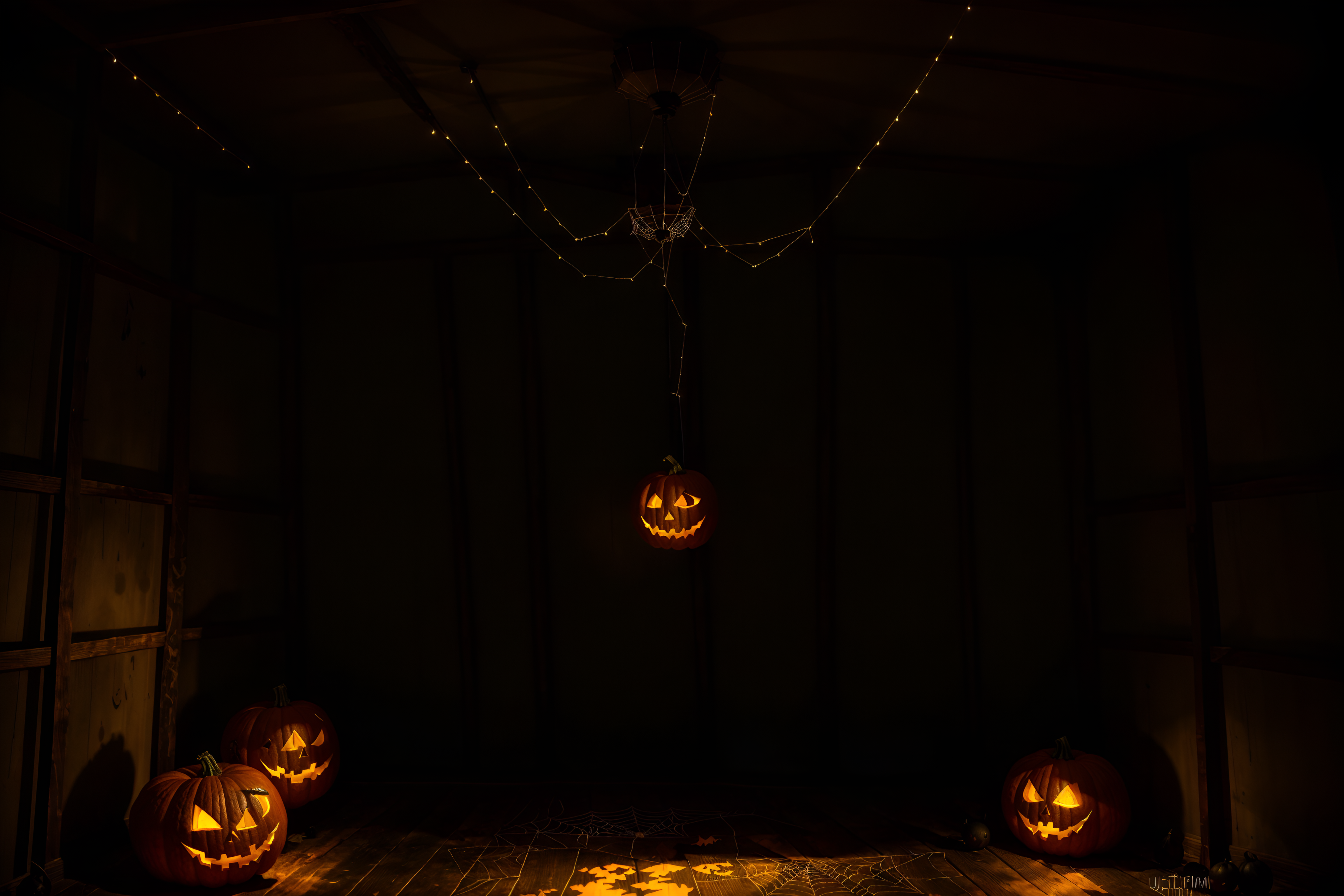 photo from pinterest of halloween-style interior designed (attic interior) . with glowing pumpkins and human skulls and yellow black balloons and cobwebs and lanterns and lanterns and spiderwebs and skeletons sitting and standing. . cinematic photo, highly detailed, cinematic lighting, ultra-detailed, ultrarealistic, photorealism, 8k. trending on pinterest. halloween interior design style. masterpiece, cinematic light, ultrarealistic+, photorealistic+, 8k, raw photo, realistic, sharp focus on eyes, (symmetrical eyes), (intact eyes), hyperrealistic, highest quality, best quality, , highly detailed, masterpiece, best quality, extremely detailed 8k wallpaper, masterpiece, best quality, ultra-detailed, best shadow, detailed background, detailed face, detailed eyes, high contrast, best illumination, detailed face, dulux, caustic, dynamic angle, detailed glow. dramatic lighting. highly detailed, insanely detailed hair, symmetrical, intricate details, professionally retouched, 8k high definition. strong bokeh. award winning photo.
