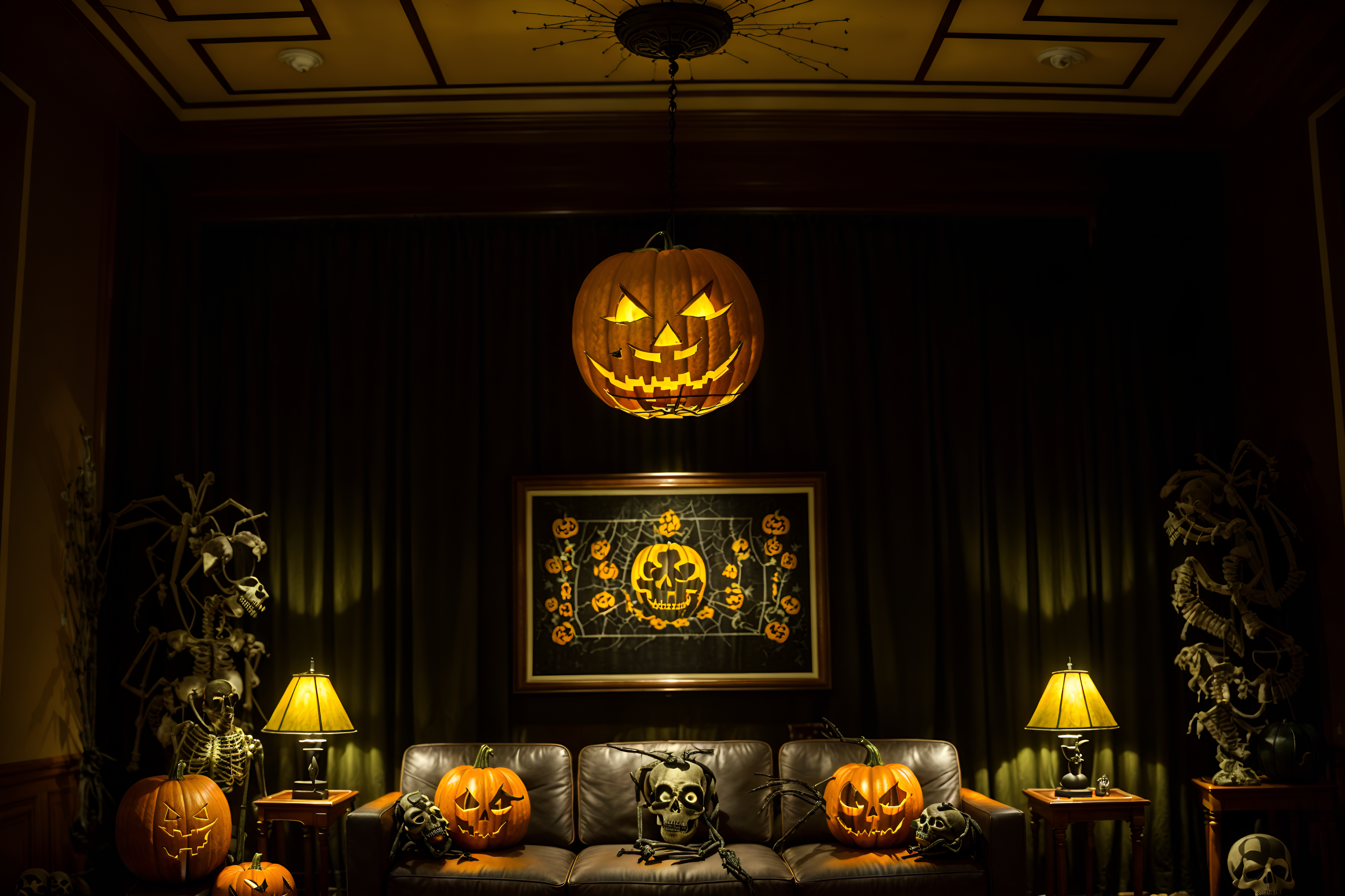 halloween interiorsinterior decorate this cinema with halloween style. . . with projector and curtains and dim lighting and exit signs and surround sound speakers and concession stand and popcorn machine and movie screen. . with glowing pumpkins and spiderwebs and cobwebs and cobwebs and lanterns and yellow black balloons and lanterns and skeletons sitting and standing. . .interior decorate this gaming room with halloween style. . . . with glowing pumpkins and cobwebs and yellow black balloons and cobwebs and lanterns and skeletons sitting and standing and spiderwebs and lanterns. . .interior decorate this restaurant with halloween style. . . with restaurant decor and restaurant bar and restaurant chairs and restaurant dining tables and restaurant decor. . with human skulls and glowing pumpkins and cobwebs and yellow black balloons and lanterns and spiderwebs and lanterns and skeletons sitting and standing. . .interior decorate this courtroom with halloween style. . . with gallery seating and gavel and legal books and witness stand and attorney tables and court reporter desk and jury box and scales of justice. . with cobwebs and lanterns and yellow black balloons and human skulls and lanterns and cobwebs and glowing pumpkins and skeletons sitting and standing. . .interior decorate this parliament with halloween style. . . with ceremonial mace and press gallery and gallery seating and flags and hansard reporters and speaker podium and voting buttons and dispatch boxes. . with spiderwebs and lanterns and lanterns and skeletons sitting and standing and cobwebs and cobwebs and glowing pumpkins and human skulls. . .interior decorate this clothing store with halloween style. . . . with cobwebs and lanterns and skeletons sitting and standing and human skulls and yellow black balloons and glowing pumpkins and cobwebs and lanterns. . .interior decorate this outdoor patio with halloween style. . . with plant and patio couch with pillows and deck with deck chairs and barbeque or grill and grass and plant. . with skeletons sitting and standing and spiderwebs and lanterns and yellow black balloons and glowing pumpkins and cobwebs and cobwebs and lanterns. . .interior decorate this photography studio with halloween style. . . with professional photography studio and photo studio interior and camera on tripod and soft lighting and photography studio and studio monitor and photography studio and professional lighting equipment. . with lanterns and spiderwebs and lanterns and skeletons sitting and standing and glowing pumpkins and cobwebs and human skulls and yellow black balloons. . .interior decorate this conference hall with halloween style. . . with projection screen and speaker phone and whiteboard and notepads and water glasses and projector and office chairs and conference table. . with yellow black balloons and skeletons sitting and standing and spiderwebs and cobwebs and glowing pumpkins and lanterns and human skulls and cobwebs. . .