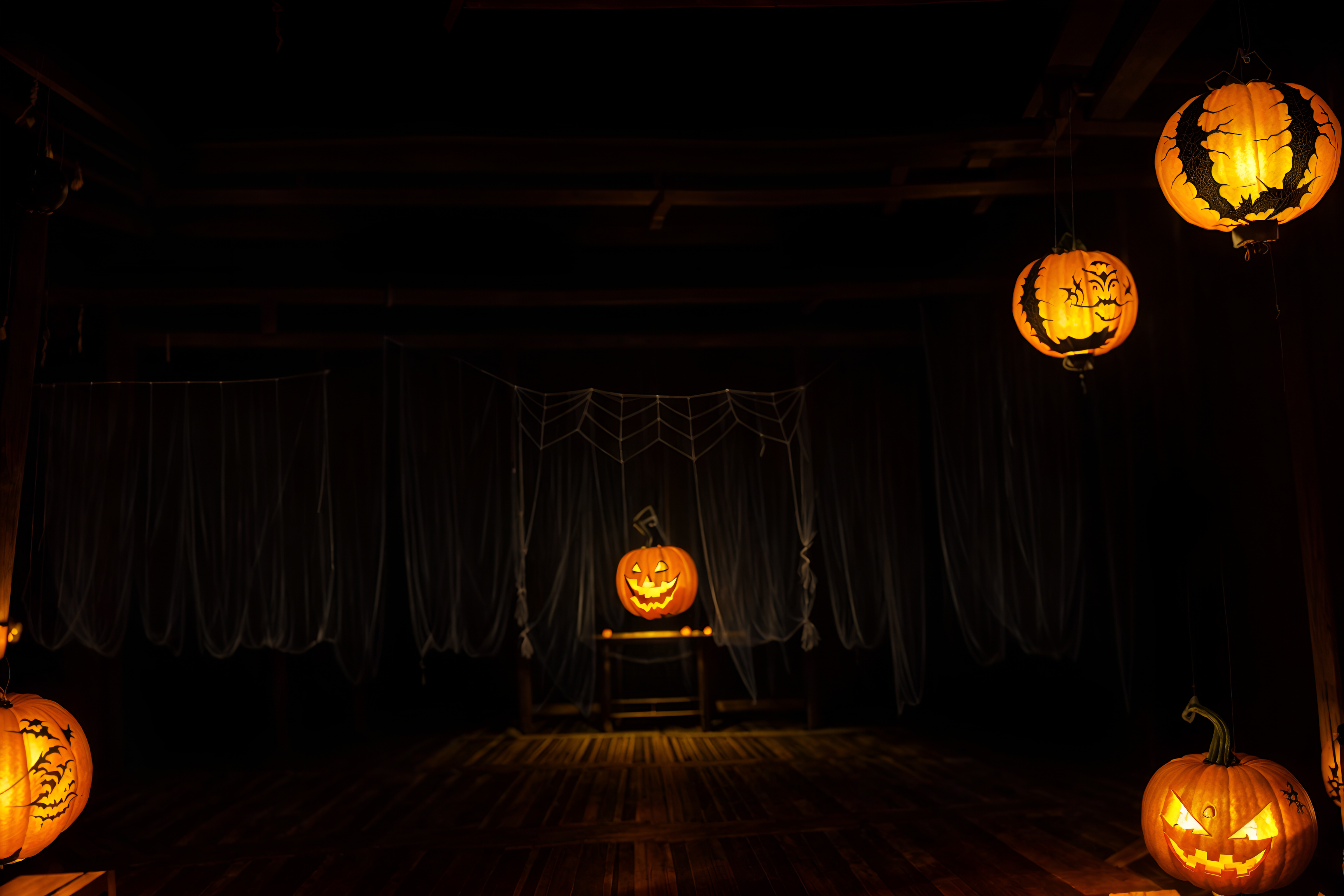 photo from pinterest of halloween-style interior designed (onsen interior) . with cobwebs and yellow black balloons and lanterns and glowing pumpkins and cobwebs and lanterns and skeletons sitting and standing and spiderwebs. . cinematic photo, highly detailed, cinematic lighting, ultra-detailed, ultrarealistic, photorealism, 8k. trending on pinterest. halloween interior design style. masterpiece, cinematic light, ultrarealistic+, photorealistic+, 8k, raw photo, realistic, sharp focus on eyes, (symmetrical eyes), (intact eyes), hyperrealistic, highest quality, best quality, , highly detailed, masterpiece, best quality, extremely detailed 8k wallpaper, masterpiece, best quality, ultra-detailed, best shadow, detailed background, detailed face, detailed eyes, high contrast, best illumination, detailed face, dulux, caustic, dynamic angle, detailed glow. dramatic lighting. highly detailed, insanely detailed hair, symmetrical, intricate details, professionally retouched, 8k high definition. strong bokeh. award winning photo.