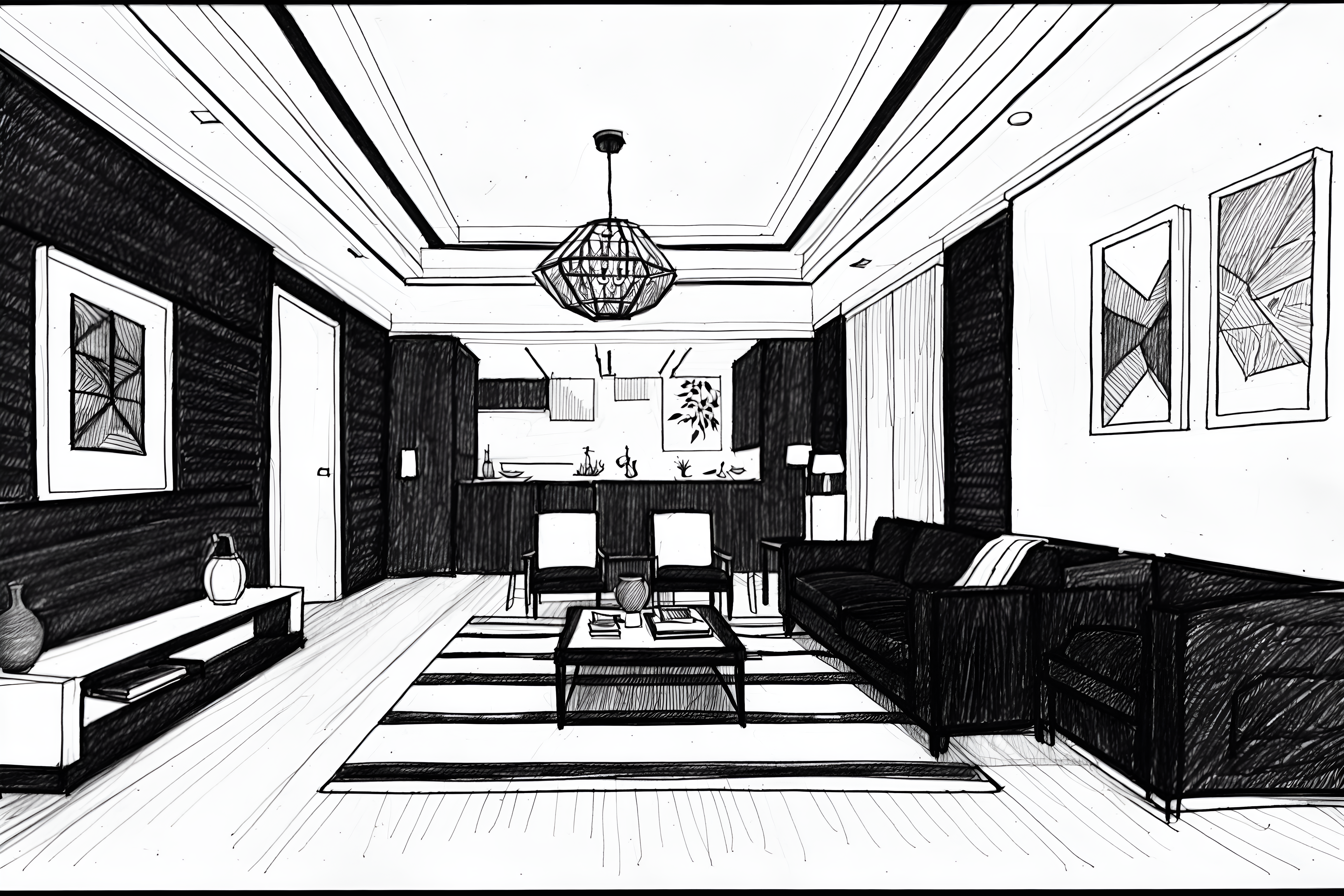 (hand-drawn monochrome black and white sketch line drawing)++ of sketch-style interior designed () apartment interior. a sketch of interior. with . a sketch of interior. trending on artstation. black and white line drawing sketch without colors. masterpiece, cinematic light, ultrarealistic+, photorealistic+, 8k, raw photo, realistic, sharp focus on eyes, (symmetrical eyes), (intact eyes), hyperrealistic, highest quality, best quality, , highly detailed, masterpiece, best quality, extremely detailed 8k wallpaper, masterpiece, best quality, ultra-detailed, best shadow, detailed background, detailed face, detailed eyes, high contrast, best illumination, detailed face, dulux, caustic, dynamic angle, detailed glow. dramatic lighting. highly detailed, insanely detailed hair, symmetrical, intricate details, professionally retouched, 8k high definition. strong bokeh. award winning photo.