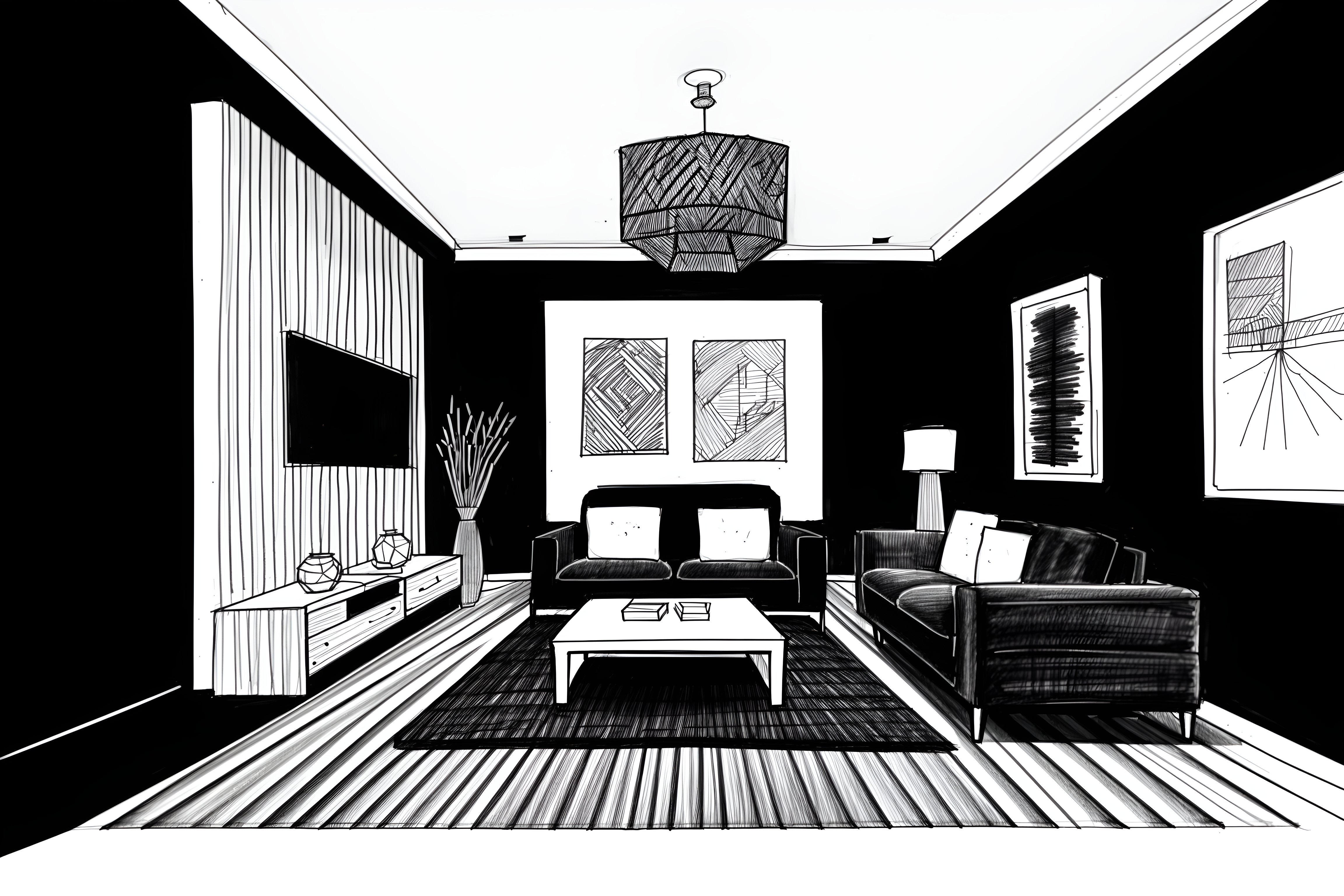 (hand-drawn monochrome black and white sketch line drawing)++ of sketch-style interior designed () apartment interior. a sketch of interior. with . a sketch of interior. trending on artstation. black and white line drawing sketch without colors. masterpiece, cinematic light, ultrarealistic+, photorealistic+, 8k, raw photo, realistic, sharp focus on eyes, (symmetrical eyes), (intact eyes), hyperrealistic, highest quality, best quality, , highly detailed, masterpiece, best quality, extremely detailed 8k wallpaper, masterpiece, best quality, ultra-detailed, best shadow, detailed background, detailed face, detailed eyes, high contrast, best illumination, detailed face, dulux, caustic, dynamic angle, detailed glow. dramatic lighting. highly detailed, insanely detailed hair, symmetrical, intricate details, professionally retouched, 8k high definition. strong bokeh. award winning photo.
