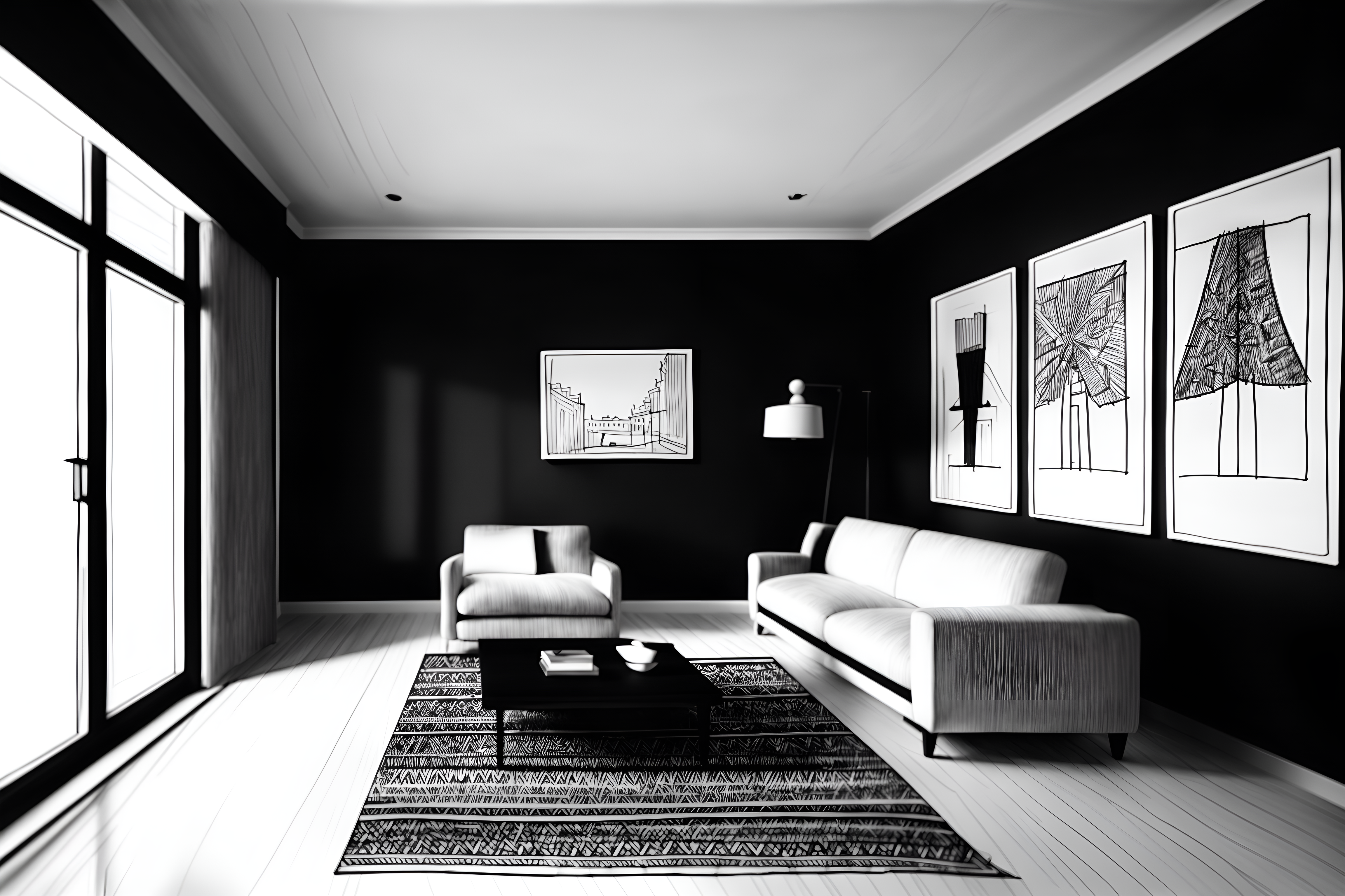 (hand-drawn monochrome black and white sketch line drawing)++ of sketch-style interior designed () apartment interior. a sketch of interior. with . a sketch of interior. trending on artstation. black and white line drawing sketch without colors. masterpiece, cinematic light, ultrarealistic+, photorealistic+, 8k, raw photo, realistic, sharp focus on eyes, (symmetrical eyes), (intact eyes), hyperrealistic, highest quality, best quality, , highly detailed, masterpiece, best quality, extremely detailed 8k wallpaper, masterpiece, best quality, ultra-detailed, best shadow, detailed background, detailed face, detailed eyes, high contrast, best illumination, detailed face, dulux, caustic, dynamic angle, detailed glow. dramatic lighting. highly detailed, insanely detailed hair, symmetrical, intricate details, professionally retouched, 8k high definition. strong bokeh. award winning photo.