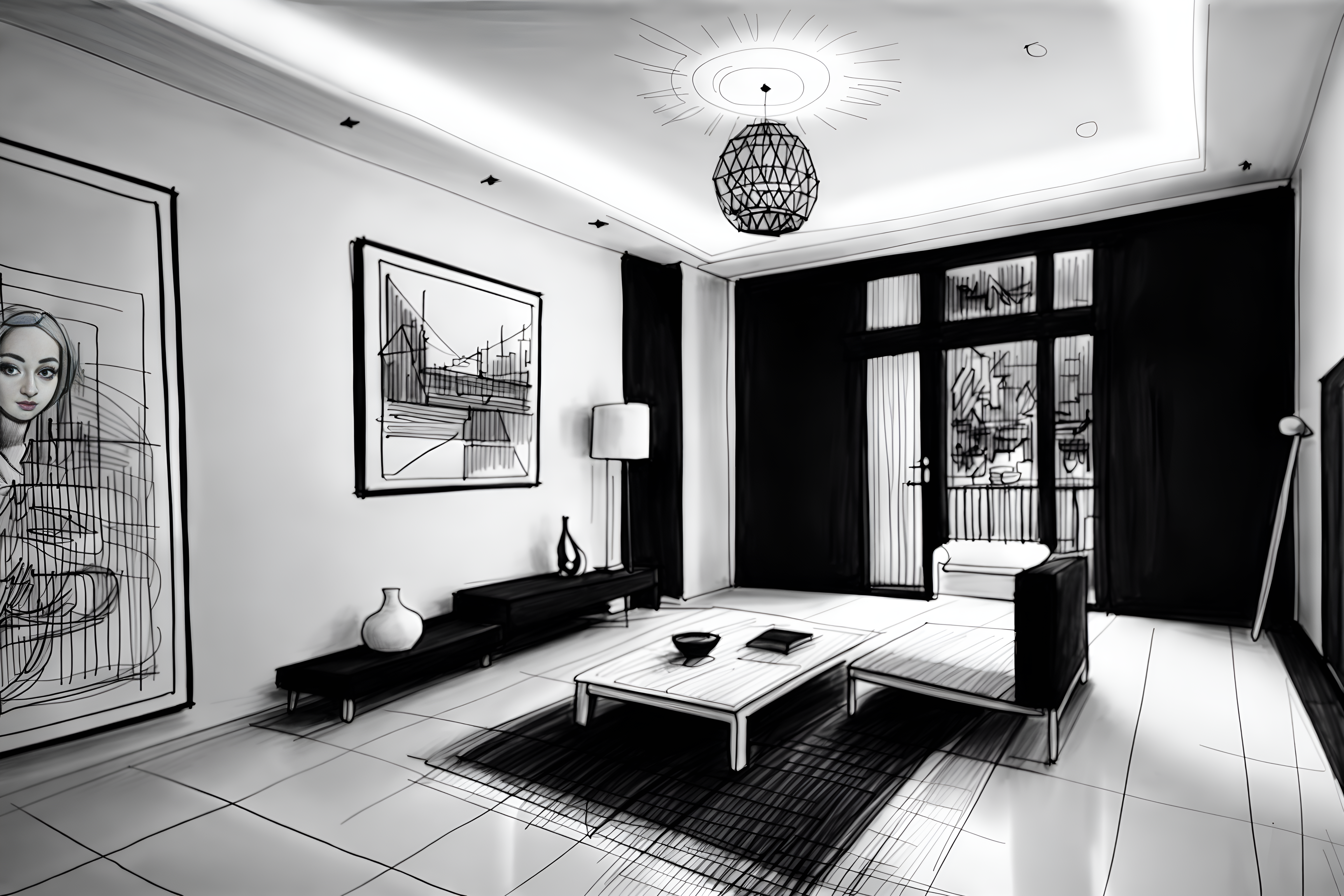 (hand-drawn monochrome black and white sketch line drawing)++ of sketch-style interior designed () apartment interior. a sketch of interior. with . a sketch of interior. trending on artstation. black and white line drawing sketch without colors. masterpiece, cinematic light, ultrarealistic+, photorealistic+, 8k, raw photo, realistic, sharp focus on eyes, (symmetrical eyes), (intact eyes), hyperrealistic, highest quality, best quality, , highly detailed, masterpiece, best quality, extremely detailed 8k wallpaper, masterpiece, best quality, ultra-detailed, best shadow, detailed background, detailed face, detailed eyes, high contrast, best illumination, detailed face, dulux, caustic, dynamic angle, detailed glow. dramatic lighting. highly detailed, insanely detailed hair, symmetrical, intricate details, professionally retouched, 8k high definition. strong bokeh. award winning photo.