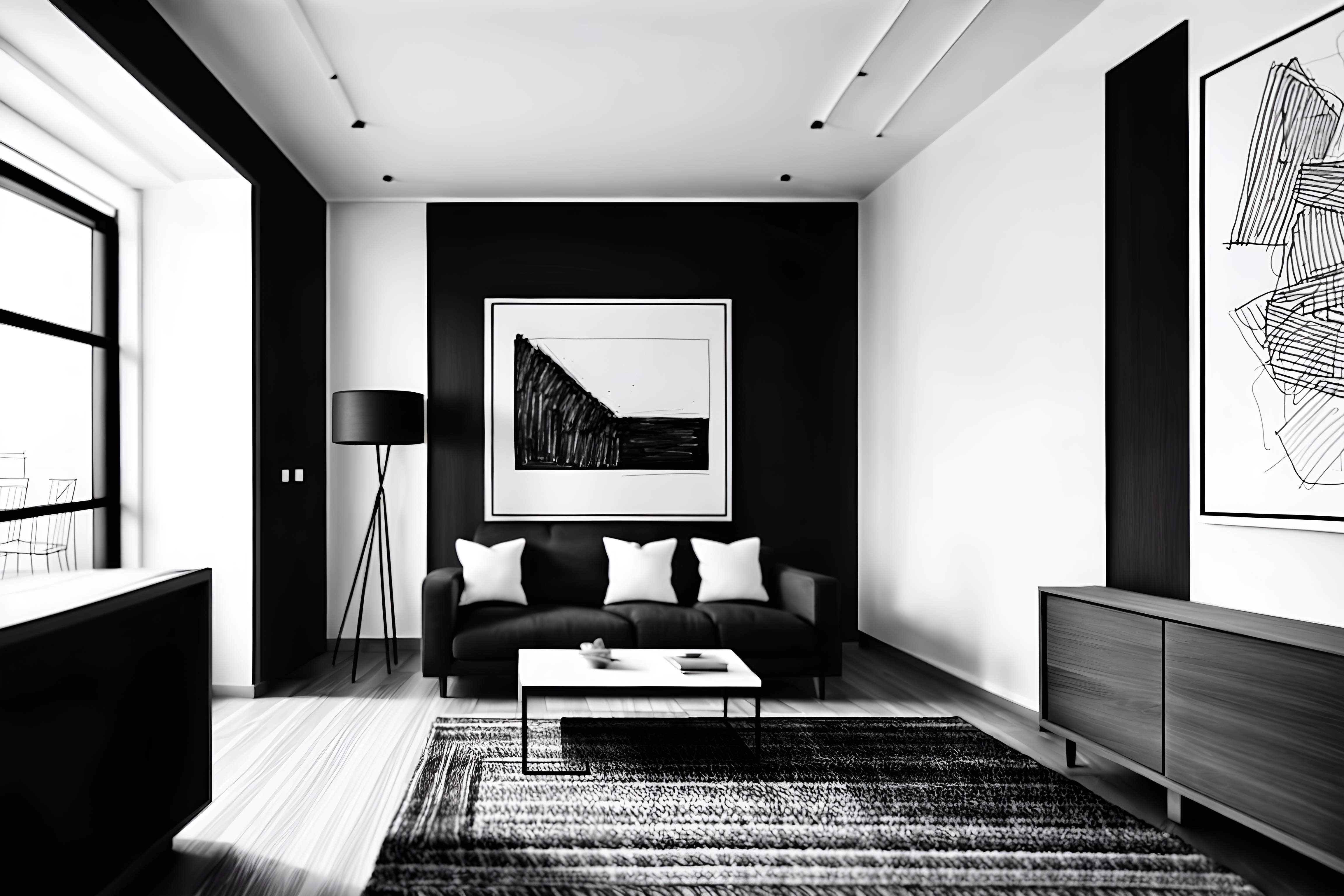 (hand-drawn monochrome black and white sketch line drawing)++ of sketch-style interior designed () apartment interior. a sketch of interior. with . a sketch of interior. trending on artstation. black and white line drawing sketch without colors. masterpiece, cinematic light, ultrarealistic+, photorealistic+, 8k, raw photo, realistic, sharp focus on eyes, (symmetrical eyes), (intact eyes), hyperrealistic, highest quality, best quality, , highly detailed, masterpiece, best quality, extremely detailed 8k wallpaper, masterpiece, best quality, ultra-detailed, best shadow, detailed background, detailed face, detailed eyes, high contrast, best illumination, detailed face, dulux, caustic, dynamic angle, detailed glow. dramatic lighting. highly detailed, insanely detailed hair, symmetrical, intricate details, professionally retouched, 8k high definition. strong bokeh. award winning photo.