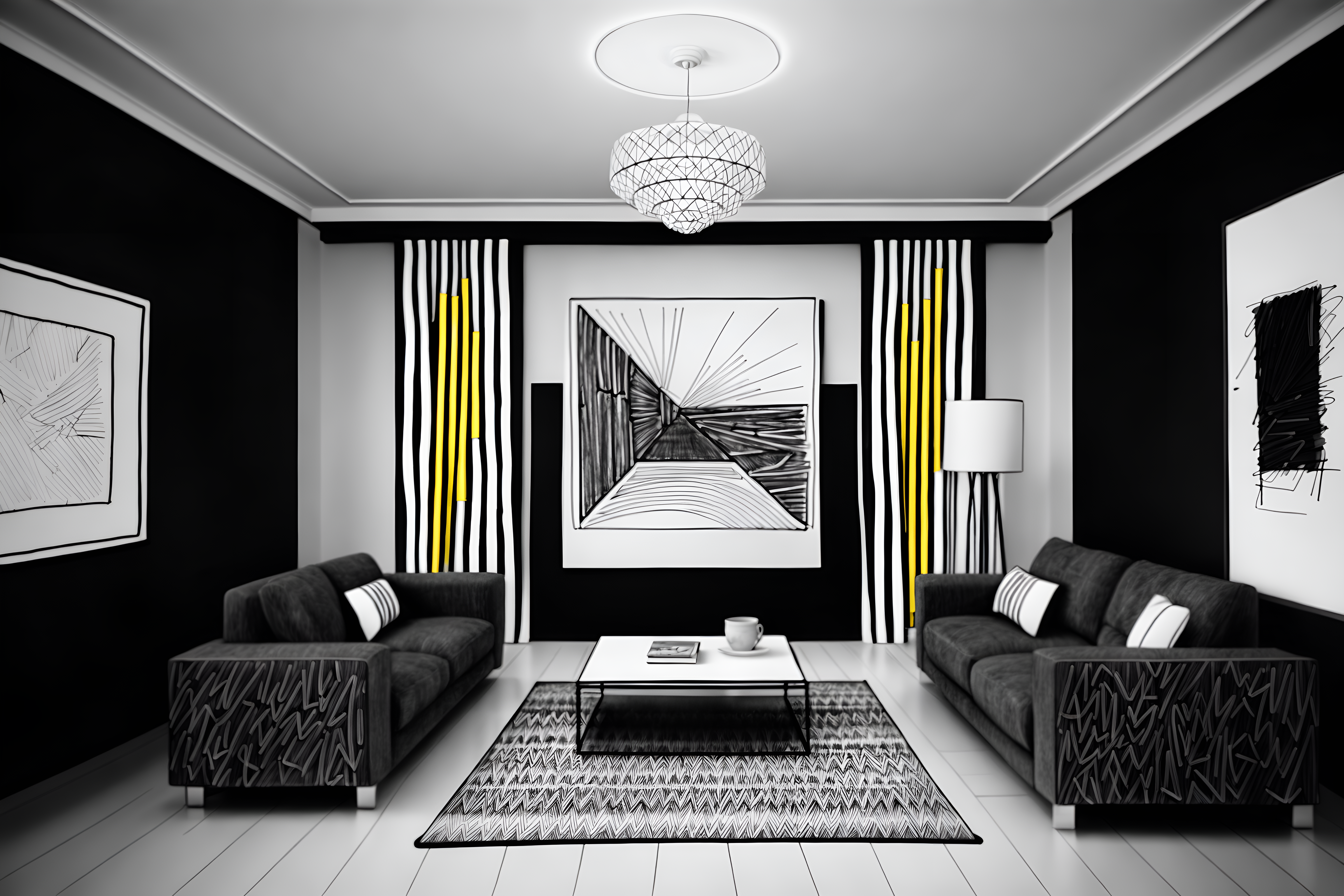 living rooms(hand-drawn monochrome black and white sketch line drawing)++ of sketch-style interior designed (living room) apartment interior. a sketch of interior. with . . a sketch of interior. with plant and sofa and televisions. trending on artstation. black and white line drawing sketch without colors.interior decorate this living room with ski chalet style. . . with chairs and coffee tables and furniture and sofa and plant and occasional tables and rug and electric lamps. . with animal rugs and exposed construction beams and animal motifs and stone fireplace and rustic and stone fireplace and layered textiles and exposed wood. . .interior decorate this living room with art deco style. . . with occasional tables and coffee tables and televisions and chairs and bookshelves and furniture and plant and rug. . with bright and cheerful colors and angular shapes and rich colors and exuberant shapes and geometric shapes and luxury and bold geometry and decadent detail. . .interior decorate this living room with vaporwave style. . . with coffee tables and chairs and occasional tables and sofa and furniture and plant and rug and electric lamps. . with teal colors and bright pink and purple lights and white square bath tiles and palm trees and hanging plants and neon glow and washed out colors. . .interior decorate this living room with mediterranean style. . . with plant and chairs and coffee tables and bookshelves and rug and occasional tables and electric lamps and sofa. . with coastal influence and warm earth tones and arched doorways and blue and white and mosaic patterns and outdoor living and terracotta tiles and rustic charm. . .interior decorate this living room with traditional style. . . with electric lamps and coffee tables and sofa and chairs and rug and televisions and plant and furniture. . with classic elegance and warm colors and rich fabrics and refined atmosphere and formal furniture and antique pieces and timeless design and ornate details. . .interior decorate this living room with post-apocalyptic style. . . with plant and occasional tables and televisions and electric lamps and bookshelves and sofa and rug and chairs. . with broken tiles and rusted metal and weathered materials and scavenged decor and urbex and cracked concrete walls and neglected atmosphere and cheap mismatched furniture. . .interior decorate this living room with gaming room style. . . with plant and coffee tables and furniture and televisions and occasional tables and rug and electric lamps and bookshelves. . with speakers and purple, red and blue fade light and neon letters on wall and gaming chair and at night and multiple displays and neon lights and purple and red lights. . .interior decorate this living room with midcentury modern style. . . with televisions and furniture and chairs and coffee tables and occasional tables and bookshelves and plant and sofa. . with nature indoors and function over form and mid century modern mobile chandelier and natural and manmade materials and organic and geometric shapes and graphic shapes and clean lines and minimalist. . .