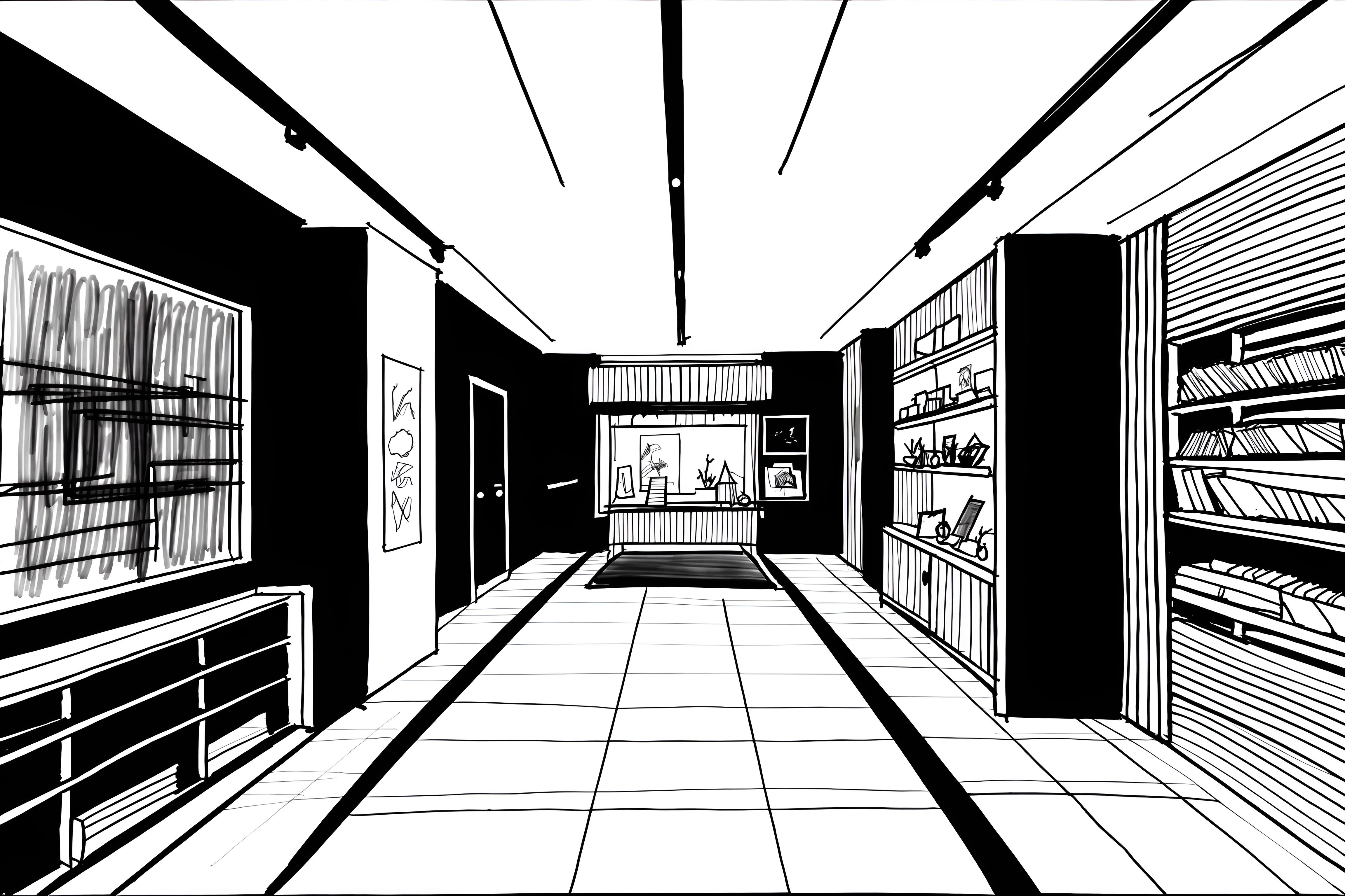 (hand-drawn monochrome black and white sketch line drawing)++ of sketch-style interior designed (clothing store) apartment interior. a sketch of interior. with . . a sketch of interior. trending on artstation. black and white line drawing sketch without colors. masterpiece, cinematic light, ultrarealistic+, photorealistic+, 8k, raw photo, realistic, sharp focus on eyes, (symmetrical eyes), (intact eyes), hyperrealistic, highest quality, best quality, , highly detailed, masterpiece, best quality, extremely detailed 8k wallpaper, masterpiece, best quality, ultra-detailed, best shadow, detailed background, detailed face, detailed eyes, high contrast, best illumination, detailed face, dulux, caustic, dynamic angle, detailed glow. dramatic lighting. highly detailed, insanely detailed hair, symmetrical, intricate details, professionally retouched, 8k high definition. strong bokeh. award winning photo.