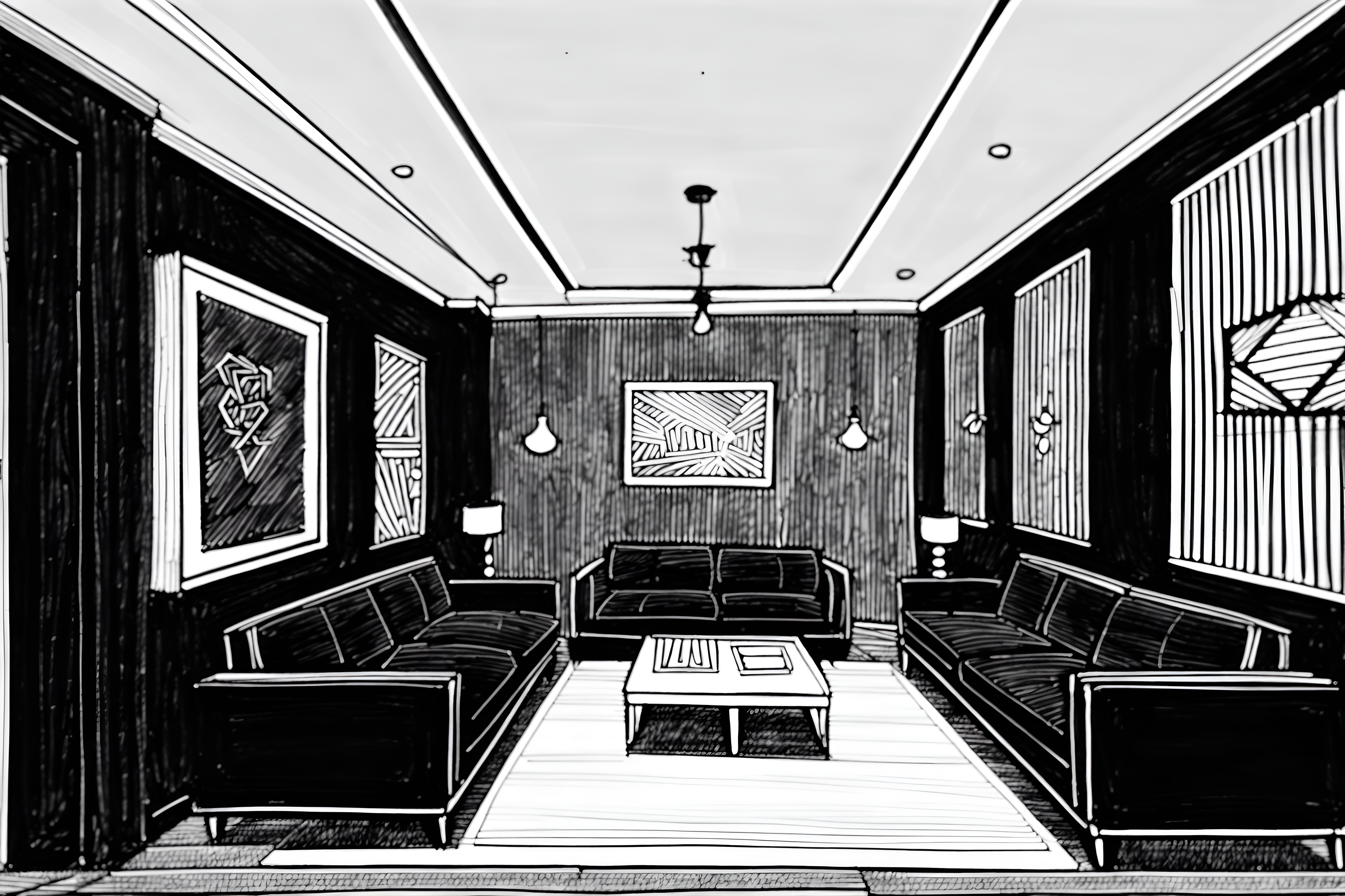 (hand-drawn monochrome black and white sketch line drawing)++ of sketch-style interior designed (coffee shop) apartment interior. a sketch of interior. with . . a sketch of interior. trending on artstation. black and white line drawing sketch without colors. masterpiece, cinematic light, ultrarealistic+, photorealistic+, 8k, raw photo, realistic, sharp focus on eyes, (symmetrical eyes), (intact eyes), hyperrealistic, highest quality, best quality, , highly detailed, masterpiece, best quality, extremely detailed 8k wallpaper, masterpiece, best quality, ultra-detailed, best shadow, detailed background, detailed face, detailed eyes, high contrast, best illumination, detailed face, dulux, caustic, dynamic angle, detailed glow. dramatic lighting. highly detailed, insanely detailed hair, symmetrical, intricate details, professionally retouched, 8k high definition. strong bokeh. award winning photo.