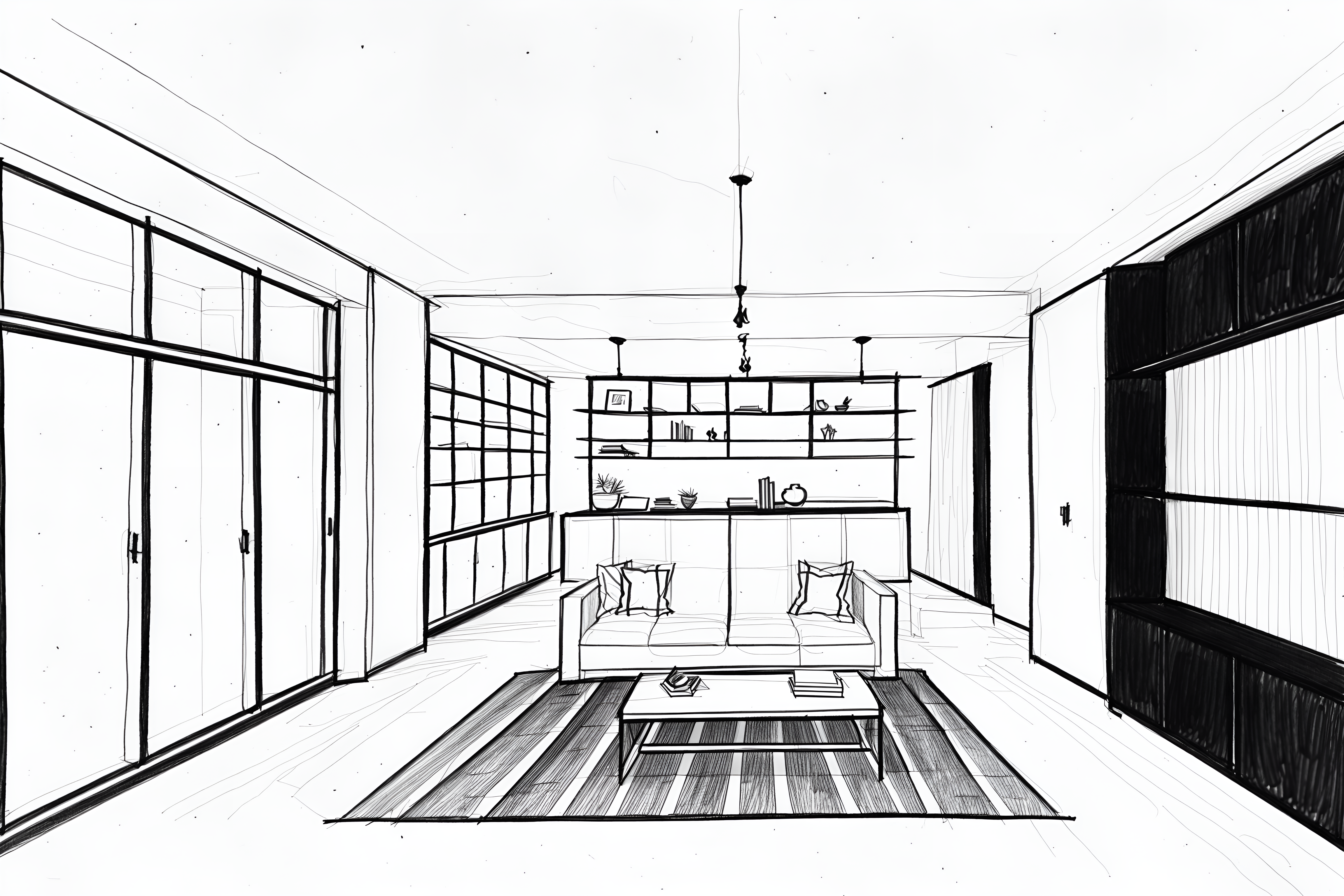 (hand-drawn monochrome black and white sketch line drawing)++ of sketch-style interior designed (drop zone) apartment interior. a sketch of interior. with . . a sketch of interior. with cubbies and shelves for shoes and cabinets. trending on artstation. black and white line drawing sketch without colors. masterpiece, cinematic light, ultrarealistic+, photorealistic+, 8k, raw photo, realistic, sharp focus on eyes, (symmetrical eyes), (intact eyes), hyperrealistic, highest quality, best quality, , highly detailed, masterpiece, best quality, extremely detailed 8k wallpaper, masterpiece, best quality, ultra-detailed, best shadow, detailed background, detailed face, detailed eyes, high contrast, best illumination, detailed face, dulux, caustic, dynamic angle, detailed glow. dramatic lighting. highly detailed, insanely detailed hair, symmetrical, intricate details, professionally retouched, 8k high definition. strong bokeh. award winning photo.