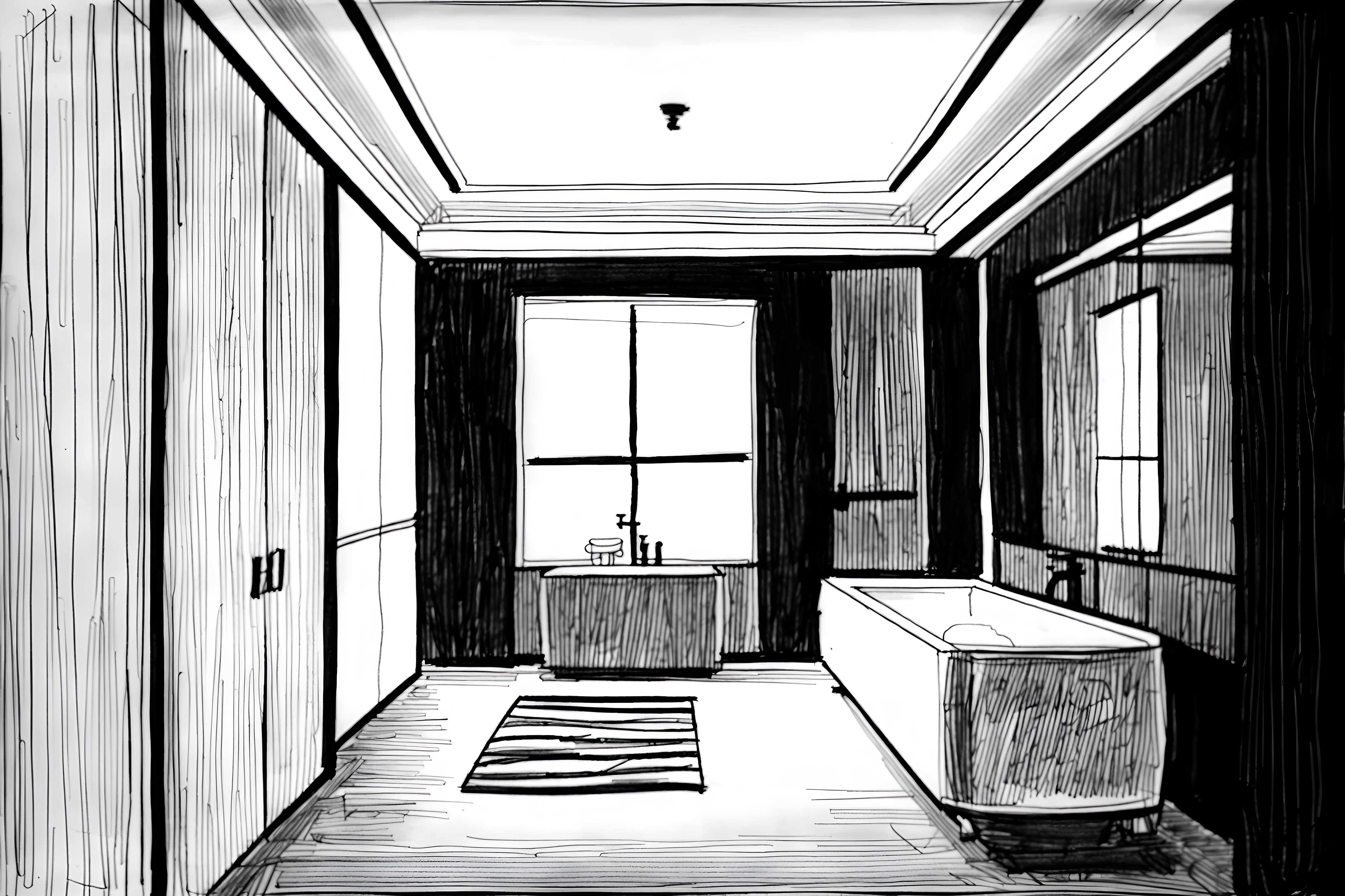 (hand-drawn monochrome black and white sketch line drawing)++ of sketch-style interior designed (hotel bathroom) apartment interior. a sketch of interior. with . . a sketch of interior. with bathroom cabinet and bathtub and mirror. trending on artstation. black and white line drawing sketch without colors. masterpiece, cinematic light, ultrarealistic+, photorealistic+, 8k, raw photo, realistic, sharp focus on eyes, (symmetrical eyes), (intact eyes), hyperrealistic, highest quality, best quality, , highly detailed, masterpiece, best quality, extremely detailed 8k wallpaper, masterpiece, best quality, ultra-detailed, best shadow, detailed background, detailed face, detailed eyes, high contrast, best illumination, detailed face, dulux, caustic, dynamic angle, detailed glow. dramatic lighting. highly detailed, insanely detailed hair, symmetrical, intricate details, professionally retouched, 8k high definition. strong bokeh. award winning photo.