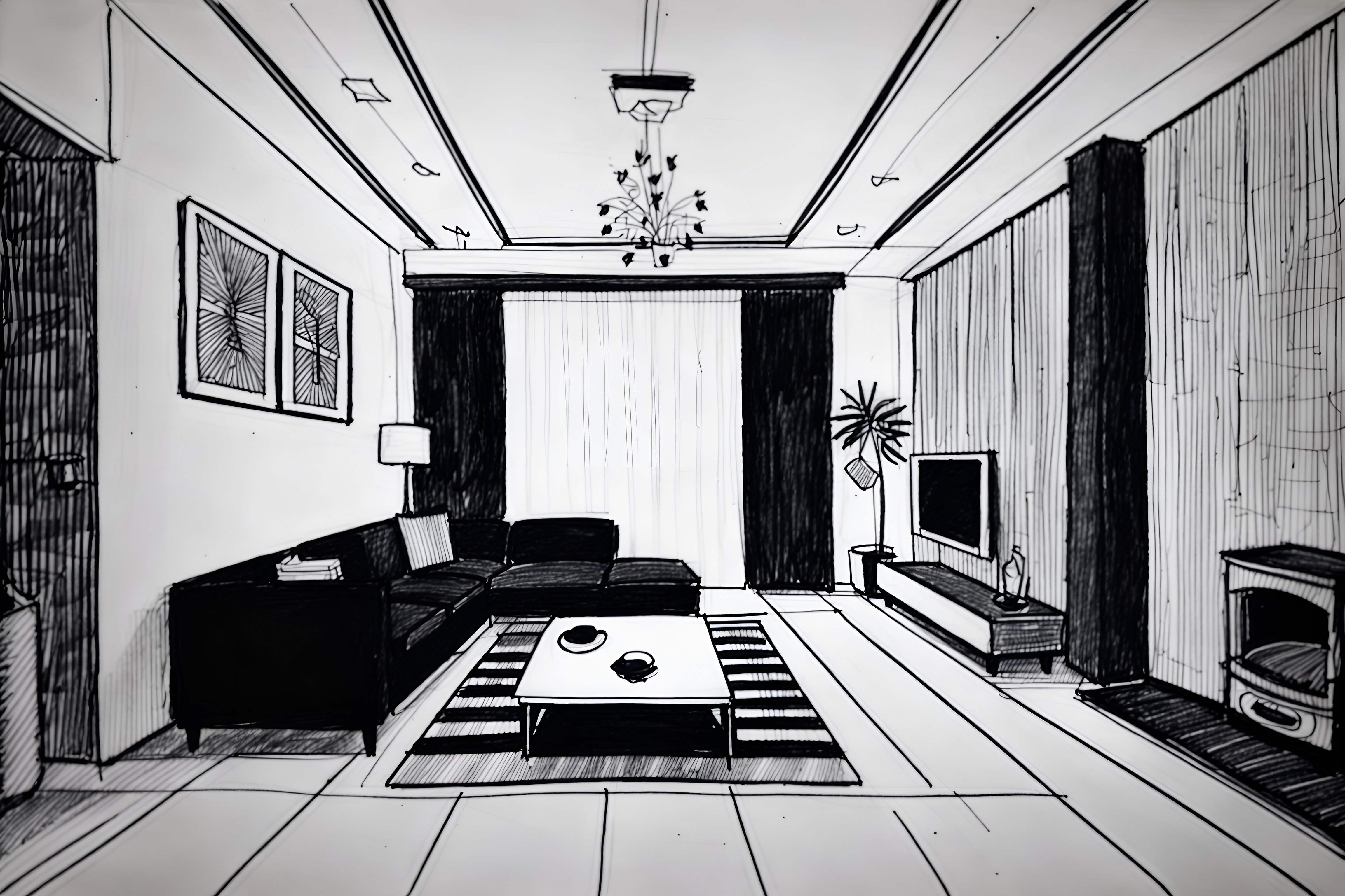 (hand-drawn monochrome black and white sketch line drawing)++ of sketch-style interior designed (kitchen living combo) apartment interior. a sketch of interior. with . a sketch of interior. with chairs and stove and plant. trending on artstation. black and white line drawing sketch without colors. masterpiece, cinematic light, ultrarealistic+, photorealistic+, 8k, raw photo, realistic, sharp focus on eyes, (symmetrical eyes), (intact eyes), hyperrealistic, highest quality, best quality, , highly detailed, masterpiece, best quality, extremely detailed 8k wallpaper, masterpiece, best quality, ultra-detailed, best shadow, detailed background, detailed face, detailed eyes, high contrast, best illumination, detailed face, dulux, caustic, dynamic angle, detailed glow. dramatic lighting. highly detailed, insanely detailed hair, symmetrical, intricate details, professionally retouched, 8k high definition. strong bokeh. award winning photo.