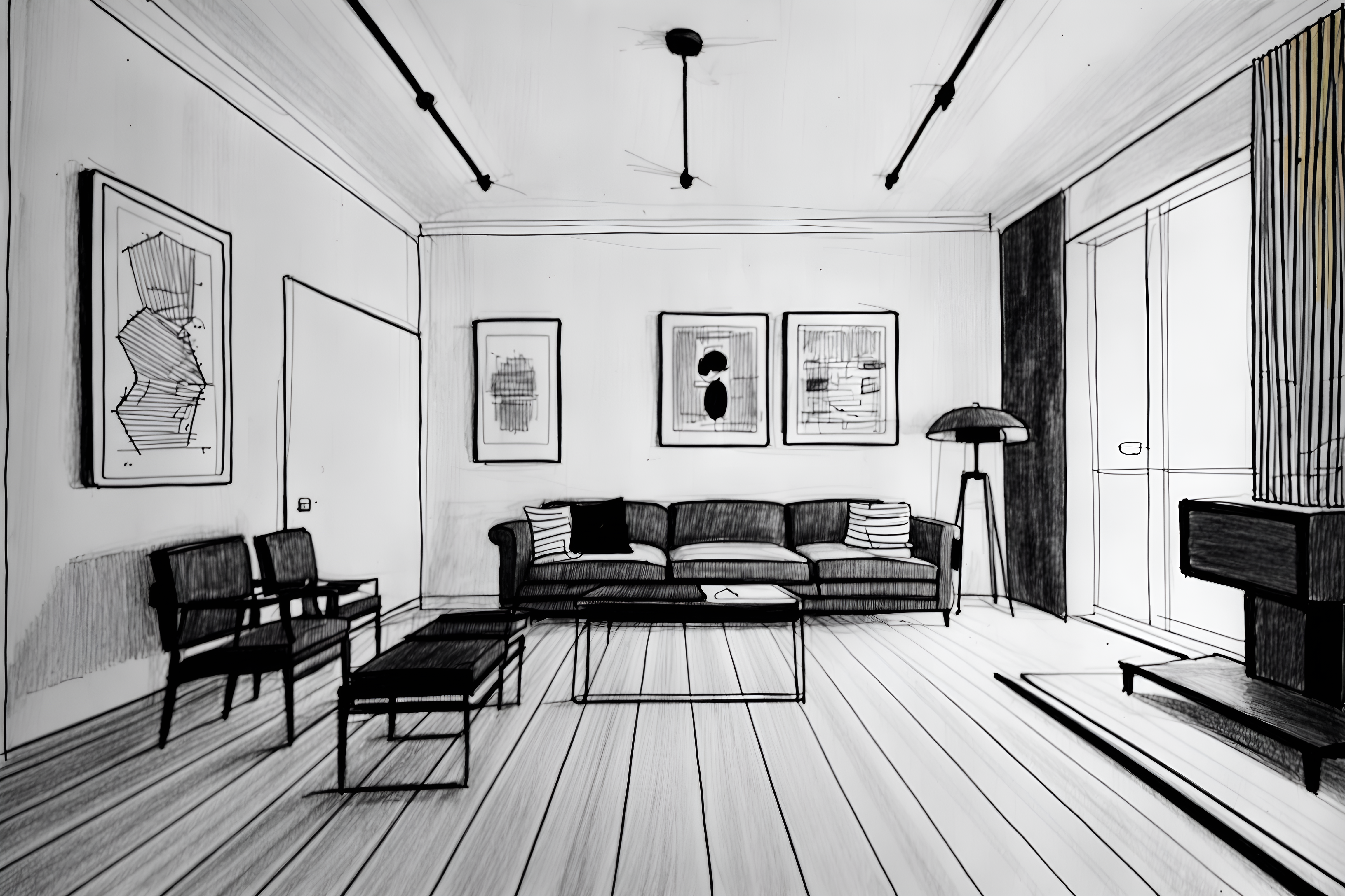 (hand-drawn monochrome black and white sketch line drawing)++ of sketch-style interior designed (kitchen living combo) apartment interior. a sketch of interior. with . a sketch of interior. with chairs and stove and plant. trending on artstation. black and white line drawing sketch without colors. masterpiece, cinematic light, ultrarealistic+, photorealistic+, 8k, raw photo, realistic, sharp focus on eyes, (symmetrical eyes), (intact eyes), hyperrealistic, highest quality, best quality, , highly detailed, masterpiece, best quality, extremely detailed 8k wallpaper, masterpiece, best quality, ultra-detailed, best shadow, detailed background, detailed face, detailed eyes, high contrast, best illumination, detailed face, dulux, caustic, dynamic angle, detailed glow. dramatic lighting. highly detailed, insanely detailed hair, symmetrical, intricate details, professionally retouched, 8k high definition. strong bokeh. award winning photo.
