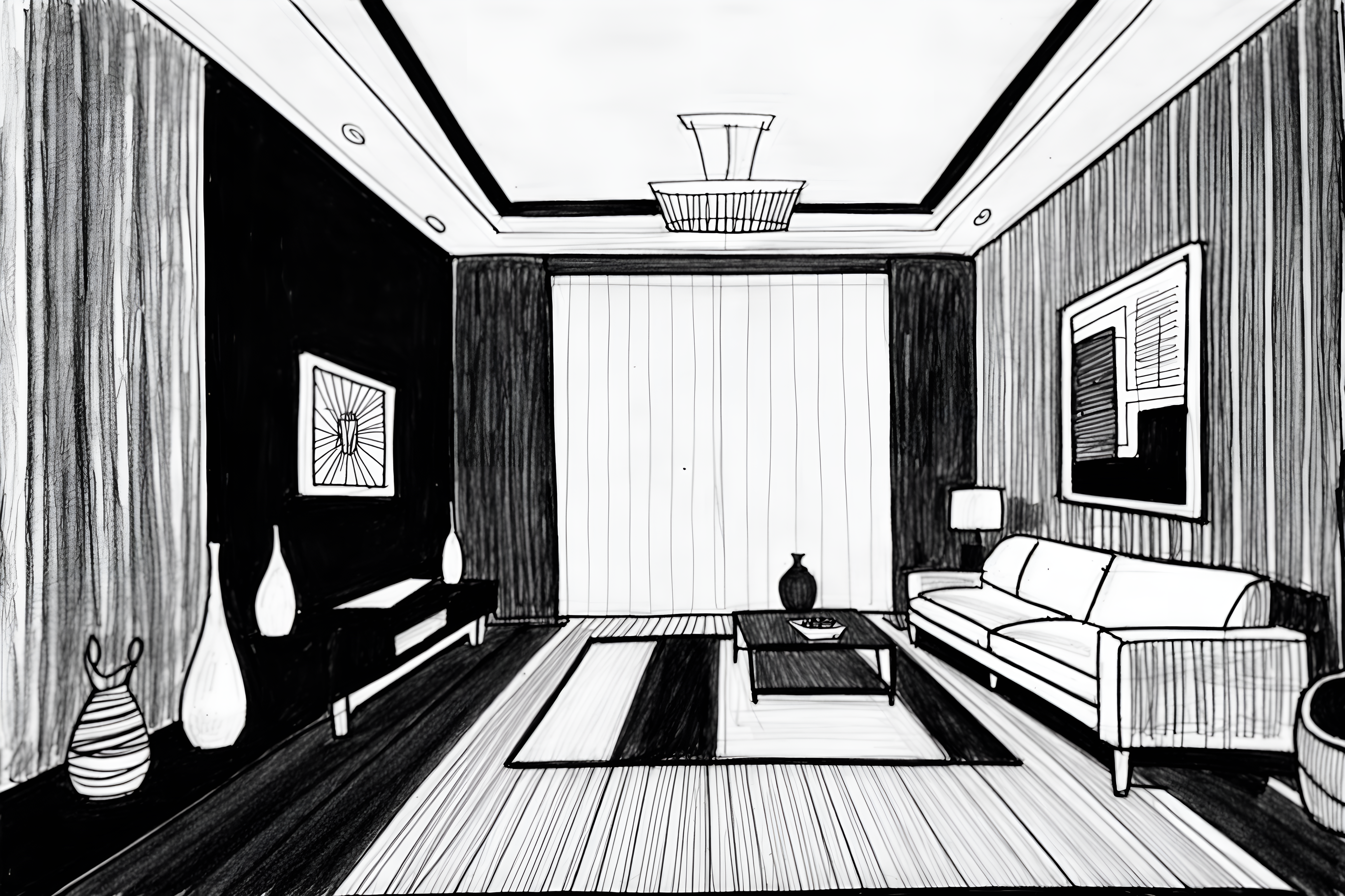 (hand-drawn monochrome black and white sketch line drawing)++ of sketch-style interior designed (living room) apartment interior. a sketch of interior. with . . a sketch of interior. with televisions and plant and occasional tables. trending on artstation. black and white line drawing sketch without colors. masterpiece, cinematic light, ultrarealistic+, photorealistic+, 8k, raw photo, realistic, sharp focus on eyes, (symmetrical eyes), (intact eyes), hyperrealistic, highest quality, best quality, , highly detailed, masterpiece, best quality, extremely detailed 8k wallpaper, masterpiece, best quality, ultra-detailed, best shadow, detailed background, detailed face, detailed eyes, high contrast, best illumination, detailed face, dulux, caustic, dynamic angle, detailed glow. dramatic lighting. highly detailed, insanely detailed hair, symmetrical, intricate details, professionally retouched, 8k high definition. strong bokeh. award winning photo.