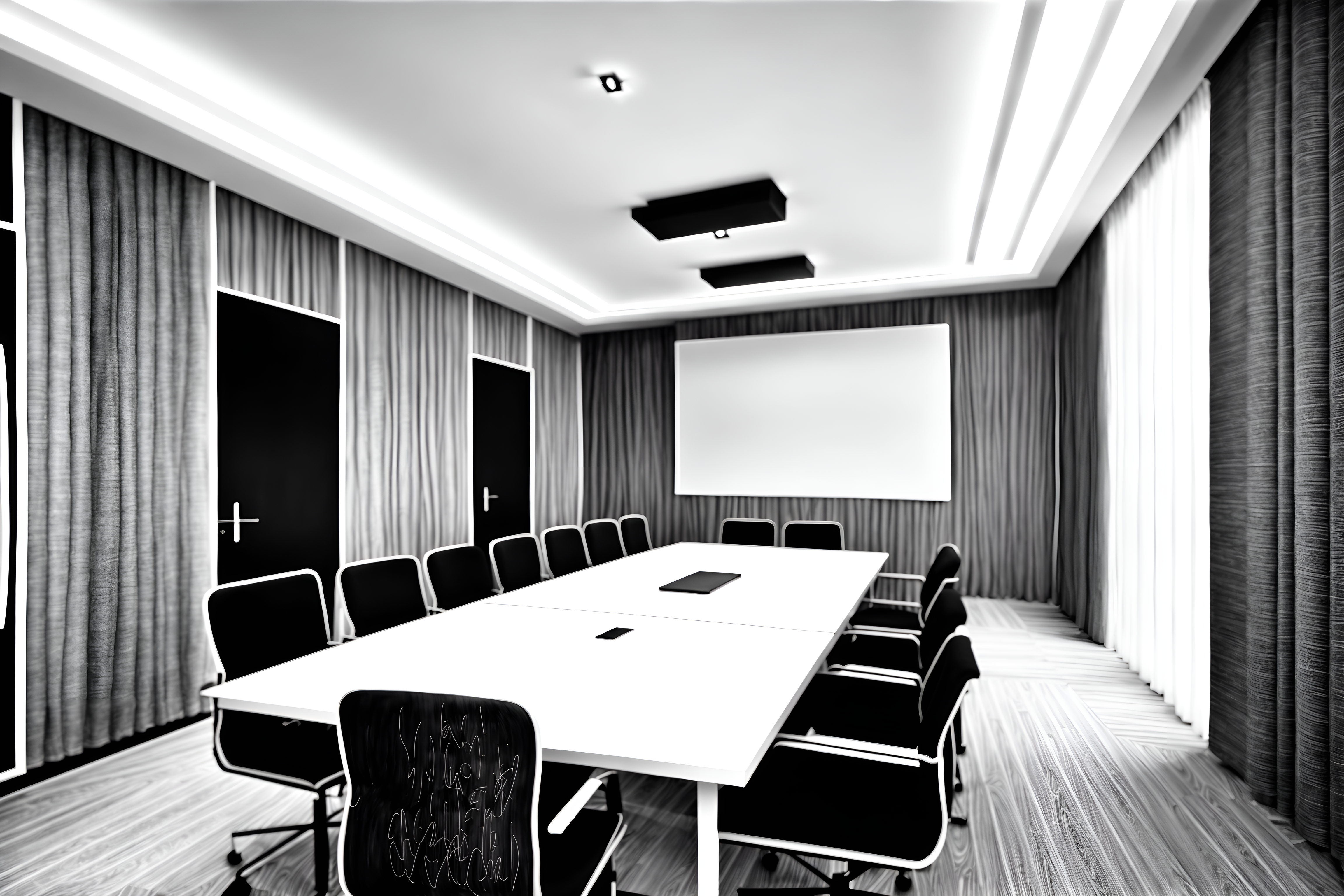(hand-drawn monochrome black and white sketch line drawing)++ of sketch-style interior designed (meeting room) apartment interior. a sketch of interior. with . . a sketch of interior. with plant and boardroom table and painting or photo on wall. trending on artstation. black and white line drawing sketch without colors. masterpiece, cinematic light, ultrarealistic+, photorealistic+, 8k, raw photo, realistic, sharp focus on eyes, (symmetrical eyes), (intact eyes), hyperrealistic, highest quality, best quality, , highly detailed, masterpiece, best quality, extremely detailed 8k wallpaper, masterpiece, best quality, ultra-detailed, best shadow, detailed background, detailed face, detailed eyes, high contrast, best illumination, detailed face, dulux, caustic, dynamic angle, detailed glow. dramatic lighting. highly detailed, insanely detailed hair, symmetrical, intricate details, professionally retouched, 8k high definition. strong bokeh. award winning photo.