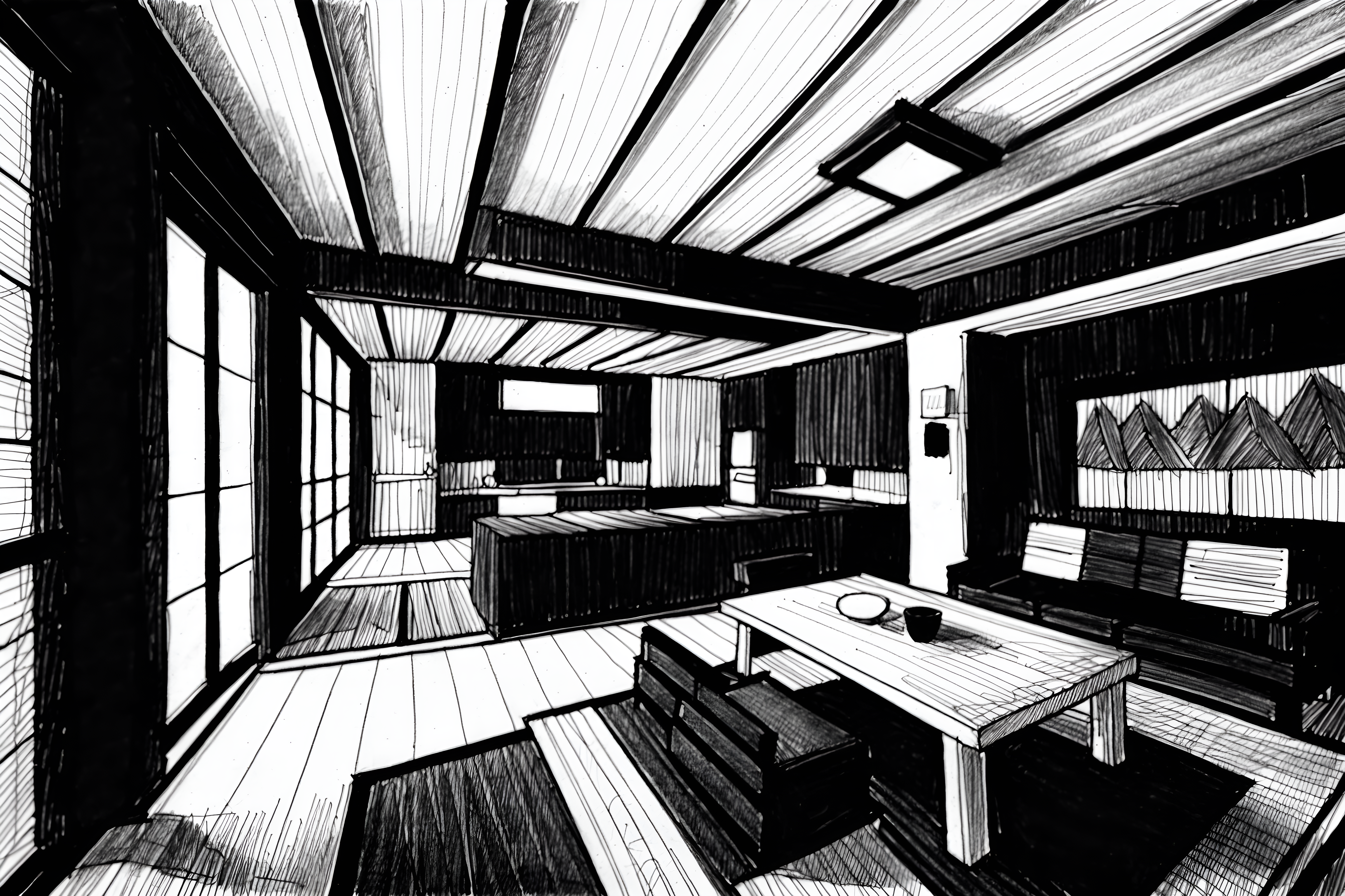 (hand-drawn monochrome black and white sketch line drawing)++ of sketch-style interior designed (onsen) apartment interior. a sketch of interior. with . . a sketch of interior. trending on artstation. black and white line drawing sketch without colors. masterpiece, cinematic light, ultrarealistic+, photorealistic+, 8k, raw photo, realistic, sharp focus on eyes, (symmetrical eyes), (intact eyes), hyperrealistic, highest quality, best quality, , highly detailed, masterpiece, best quality, extremely detailed 8k wallpaper, masterpiece, best quality, ultra-detailed, best shadow, detailed background, detailed face, detailed eyes, high contrast, best illumination, detailed face, dulux, caustic, dynamic angle, detailed glow. dramatic lighting. highly detailed, insanely detailed hair, symmetrical, intricate details, professionally retouched, 8k high definition. strong bokeh. award winning photo.