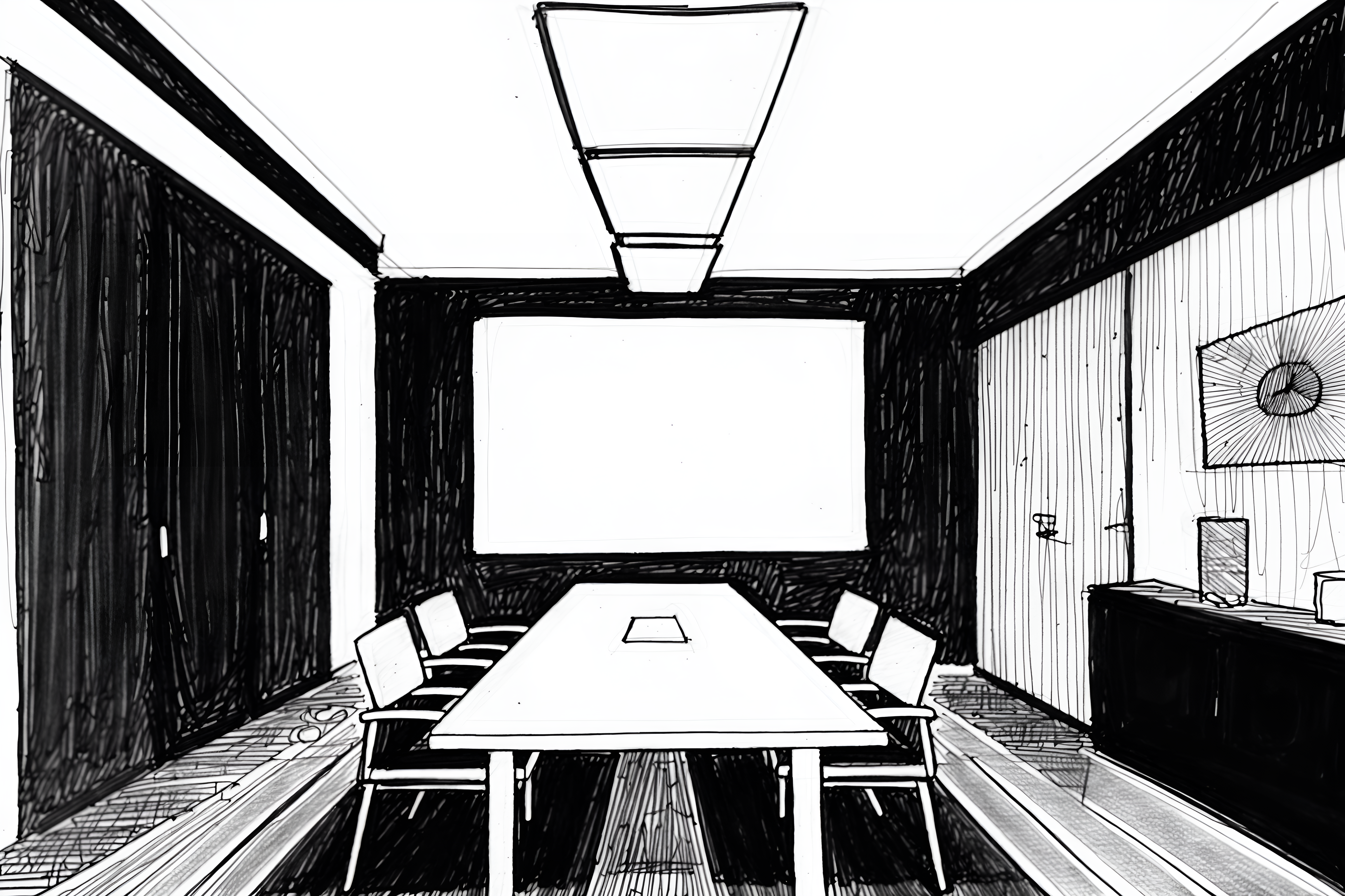 (hand-drawn monochrome black and white sketch line drawing)++ of sketch-style interior designed (office) apartment interior. a sketch of interior. with . . a sketch of interior. with desk lamps and office desks and office chairs. trending on artstation. black and white line drawing sketch without colors. masterpiece, cinematic light, ultrarealistic+, photorealistic+, 8k, raw photo, realistic, sharp focus on eyes, (symmetrical eyes), (intact eyes), hyperrealistic, highest quality, best quality, , highly detailed, masterpiece, best quality, extremely detailed 8k wallpaper, masterpiece, best quality, ultra-detailed, best shadow, detailed background, detailed face, detailed eyes, high contrast, best illumination, detailed face, dulux, caustic, dynamic angle, detailed glow. dramatic lighting. highly detailed, insanely detailed hair, symmetrical, intricate details, professionally retouched, 8k high definition. strong bokeh. award winning photo.
