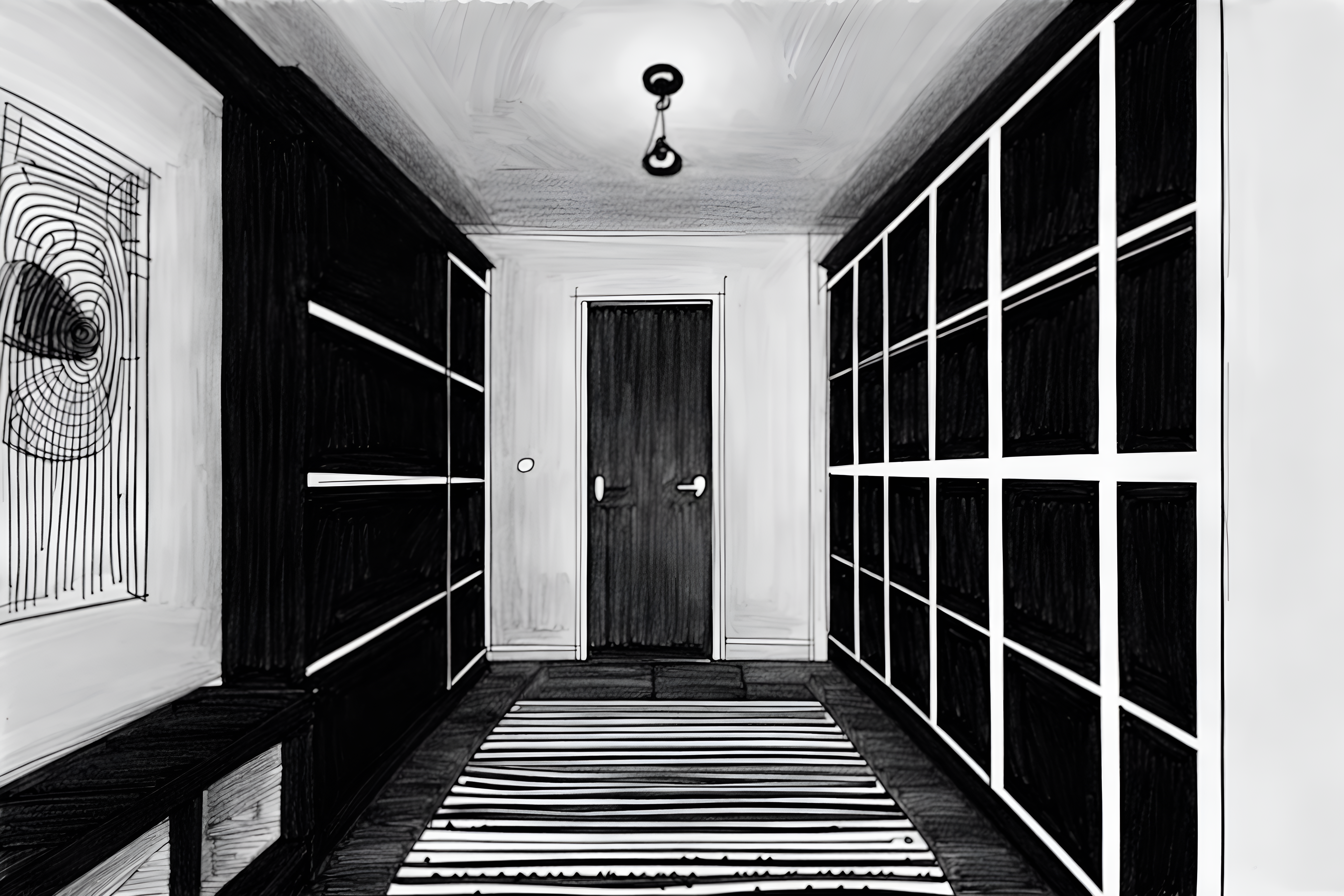 walk in closets(hand-drawn monochrome black and white sketch line drawing)++ of sketch-style interior designed (walk in closet) apartment interior. a sketch of interior. with . . a sketch of interior. trending on artstation. black and white line drawing sketch without colors.interior decorate this walk in closet with simple style. . . . with calm atmosphere and neutral colors and clean design and uncluttered space and functional furniture and minimal decor and streamlined look and understated style. . .interior decorate this walk in closet with coastal style. . . . with sand tones and airy feel and nautical decor and wicker furniture and light blue and relaxed style and white decor and natural materials. . .interior decorate this walk in closet with vaporwave style. . . . with baby blue and white roman statues, white roman sculptures, white roman columns, white roman pillars in the center of the room, and purple lights and neon glow and japanese letters on wall and white square bath tiles and white square bath tiles and japanese letters on wall. . .interior decorate this walk in closet with industrial style. . . . with raw aesthetic and utilitarian objects and exposed brick and metal panels and exposed concrete and open floorplan and reclaimed wood and neutral tones. . .interior decorate this walk in closet with eclectic style. . . . with vintage finds and global influences and personal expression and creative freedom and layered textures and bold combinations and colorful palette and unique pieces. . .interior decorate this walk in closet with minimalist style. . . . with focus on the shape, colour and texture of just a few of essential elements and lots of light and clean lines and an open floor plan and functional furniture and a monochromatic palette with colour used as an accent and focus on the shape, colour and texture of just a few of essential elements. . .interior decorate this walk in closet with baroque style. . . . with opulent and colossal furniture and dynamism and crystal and glass accents and tension and grandeur and heavy moldings and luxurious floral and damask fabrics and expensive and plush flooring. . .interior decorate this walk in closet with post-apocalyptic style. . . . with cheap mismatched furniture and broken tiles and dirty floor and scavenged decor and run-down favela style and poverty-stricken and industrial elements and dim lighting. . .