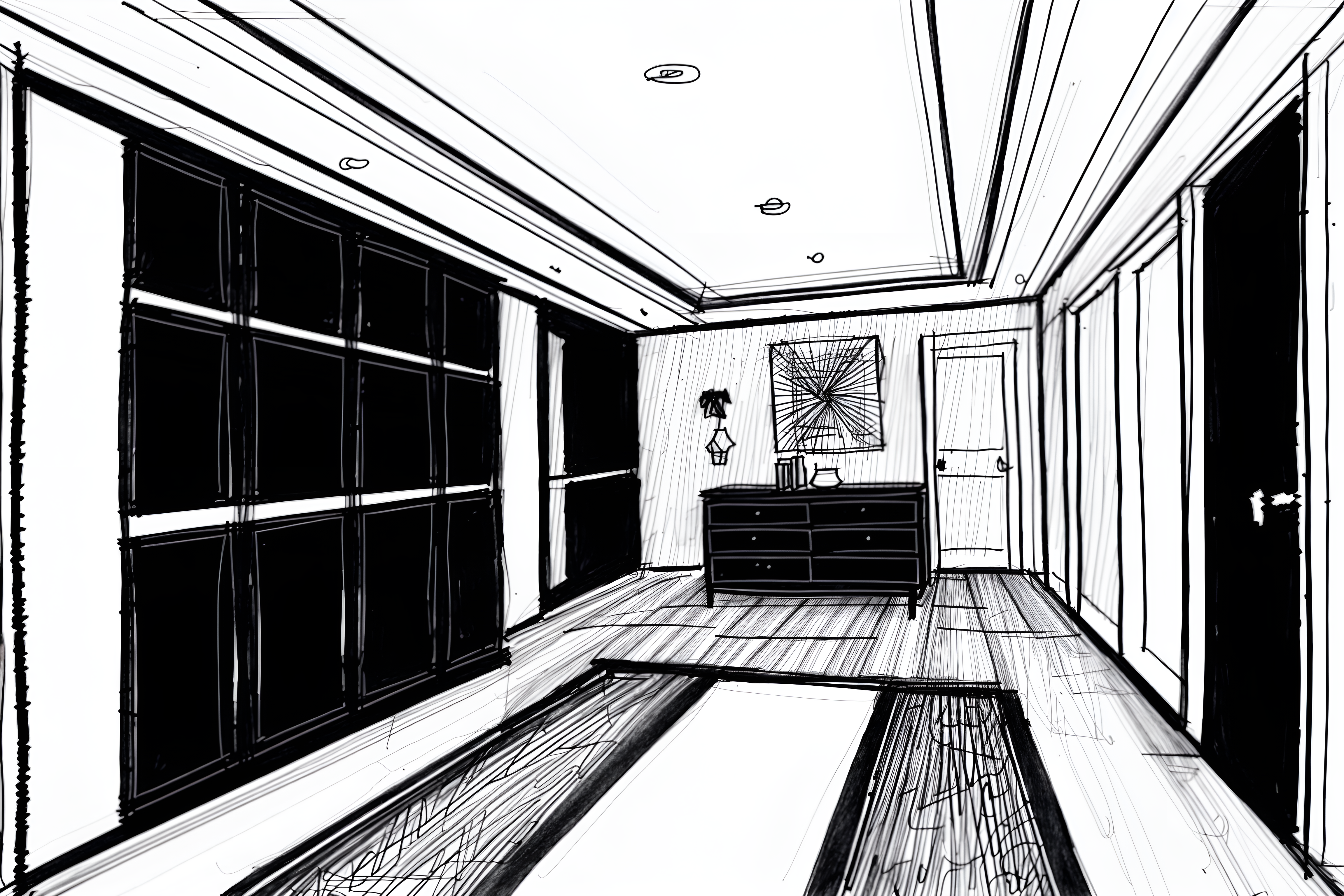 (hand-drawn monochrome black and white sketch line drawing)++ of sketch-style interior designed (walk in closet) apartment interior. a sketch of interior. with . . a sketch of interior. trending on artstation. black and white line drawing sketch without colors. masterpiece, cinematic light, ultrarealistic+, photorealistic+, 8k, raw photo, realistic, sharp focus on eyes, (symmetrical eyes), (intact eyes), hyperrealistic, highest quality, best quality, , highly detailed, masterpiece, best quality, extremely detailed 8k wallpaper, masterpiece, best quality, ultra-detailed, best shadow, detailed background, detailed face, detailed eyes, high contrast, best illumination, detailed face, dulux, caustic, dynamic angle, detailed glow. dramatic lighting. highly detailed, insanely detailed hair, symmetrical, intricate details, professionally retouched, 8k high definition. strong bokeh. award winning photo.