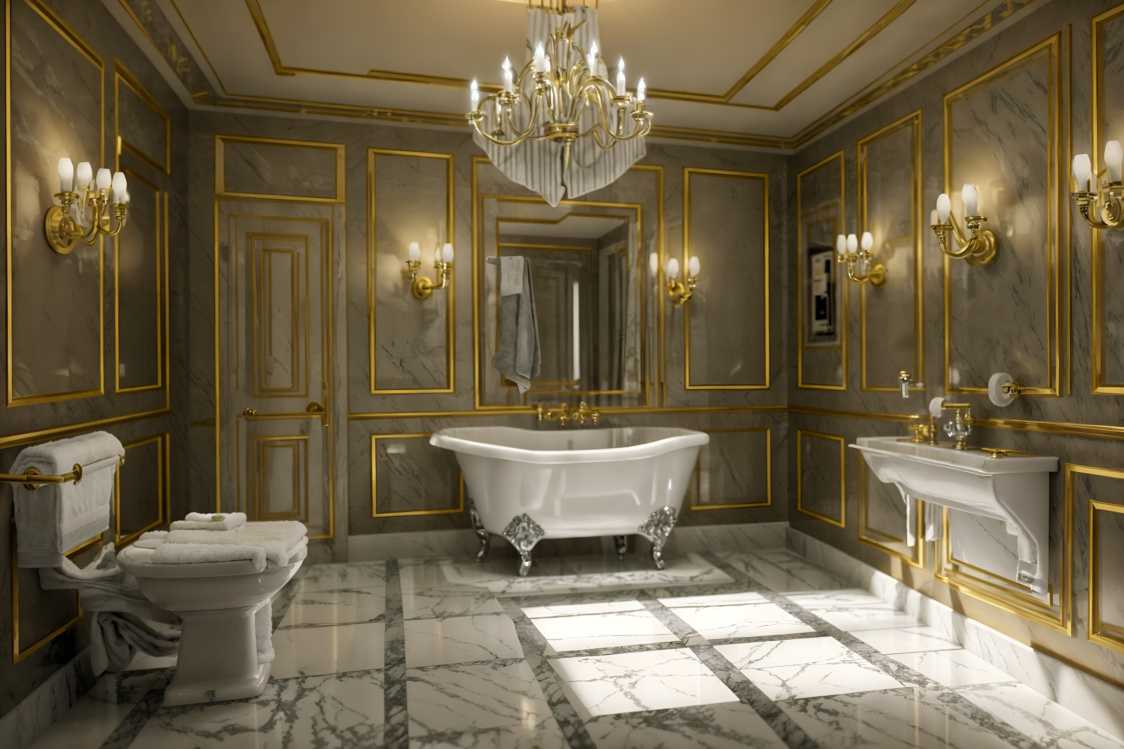 photo from pinterest of hollywood glam-style interior designed (bathroom interior) with shower and toilet seat and bath rail and bathroom sink with faucet and bath towel and waste basket and bathtub and plant cinematic photo, highly detailed, cinematic lighting, ultra-detailed, ultrarealistic, photorealism, 8k. trending on pinterest. hollywood glam interior design style. masterpiece, cinematic light, ultrarealistic+, photorealistic+, 8k, raw photo, realistic, sharp focus on eyes, (symmetrical eyes), (intact eyes), hyperrealistic, highest quality, best quality, , highly detailed, masterpiece, best quality, extremely detailed 8k wallpaper, masterpiece, best quality, ultra-detailed, best shadow, detailed background, detailed face, detailed eyes, high contrast, best illumination, detailed face, dulux, caustic, dynamic angle, detailed glow. dramatic lighting. highly detailed, insanely detailed hair, symmetrical, intricate details, professionally retouched, 8k high definition. strong bokeh. award winning photo.