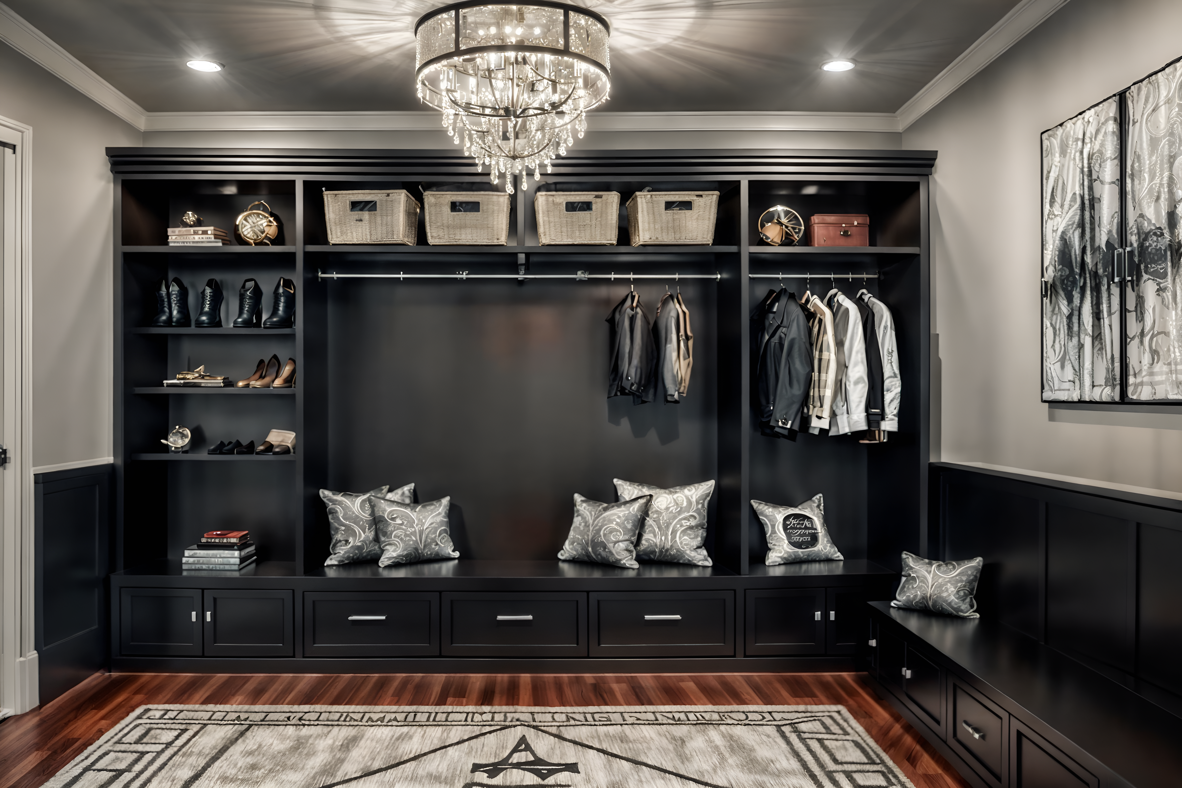 photo from pinterest of hollywood glam-style interior designed (drop zone interior) with high up storage and storage baskets and wall hooks for coats and a bench and lockers and storage drawers and shelves for shoes and cabinets cinematic photo, highly detailed, cinematic lighting, ultra-detailed, ultrarealistic, photorealism, 8k. trending on pinterest. hollywood glam interior design style. masterpiece, cinematic light, ultrarealistic+, photorealistic+, 8k, raw photo, realistic, sharp focus on eyes, (symmetrical eyes), (intact eyes), hyperrealistic, highest quality, best quality, , highly detailed, masterpiece, best quality, extremely detailed 8k wallpaper, masterpiece, best quality, ultra-detailed, best shadow, detailed background, detailed face, detailed eyes, high contrast, best illumination, detailed face, dulux, caustic, dynamic angle, detailed glow. dramatic lighting. highly detailed, insanely detailed hair, symmetrical, intricate details, professionally retouched, 8k high definition. strong bokeh. award winning photo.