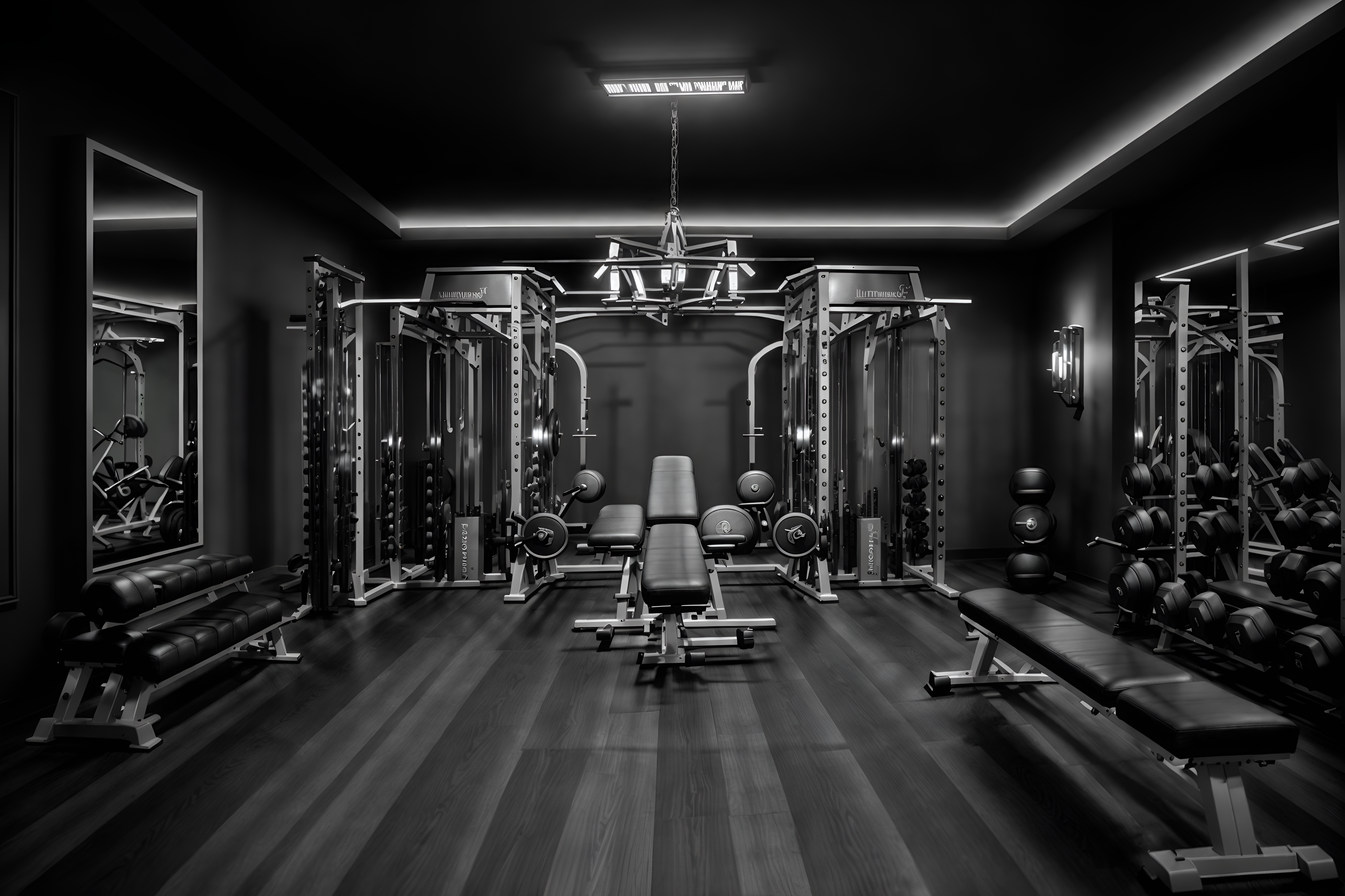 photo from pinterest of hollywood glam-style interior designed (fitness gym interior) with crosstrainer and bench press and dumbbell stand and squat rack and exercise bicycle and crosstrainer cinematic photo, highly detailed, cinematic lighting, ultra-detailed, ultrarealistic, photorealism, 8k. trending on pinterest. hollywood glam interior design style. masterpiece, cinematic light, ultrarealistic+, photorealistic+, 8k, raw photo, realistic, sharp focus on eyes, (symmetrical eyes), (intact eyes), hyperrealistic, highest quality, best quality, , highly detailed, masterpiece, best quality, extremely detailed 8k wallpaper, masterpiece, best quality, ultra-detailed, best shadow, detailed background, detailed face, detailed eyes, high contrast, best illumination, detailed face, dulux, caustic, dynamic angle, detailed glow. dramatic lighting. highly detailed, insanely detailed hair, symmetrical, intricate details, professionally retouched, 8k high definition. strong bokeh. award winning photo.