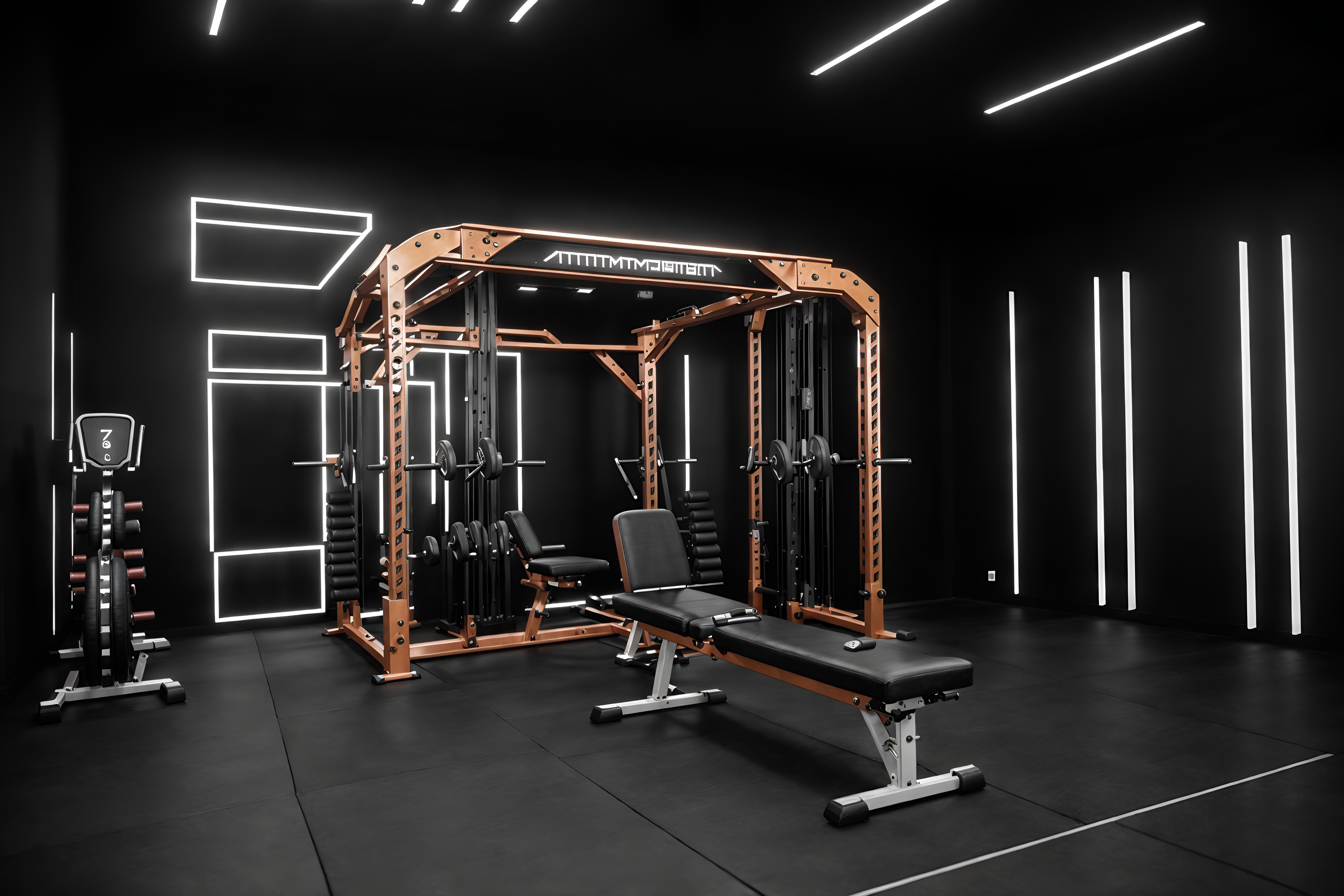 photo from pinterest of hollywood glam-style interior designed (fitness gym interior) with crosstrainer and bench press and dumbbell stand and squat rack and exercise bicycle and crosstrainer cinematic photo, highly detailed, cinematic lighting, ultra-detailed, ultrarealistic, photorealism, 8k. trending on pinterest. hollywood glam interior design style. masterpiece, cinematic light, ultrarealistic+, photorealistic+, 8k, raw photo, realistic, sharp focus on eyes, (symmetrical eyes), (intact eyes), hyperrealistic, highest quality, best quality, , highly detailed, masterpiece, best quality, extremely detailed 8k wallpaper, masterpiece, best quality, ultra-detailed, best shadow, detailed background, detailed face, detailed eyes, high contrast, best illumination, detailed face, dulux, caustic, dynamic angle, detailed glow. dramatic lighting. highly detailed, insanely detailed hair, symmetrical, intricate details, professionally retouched, 8k high definition. strong bokeh. award winning photo.
