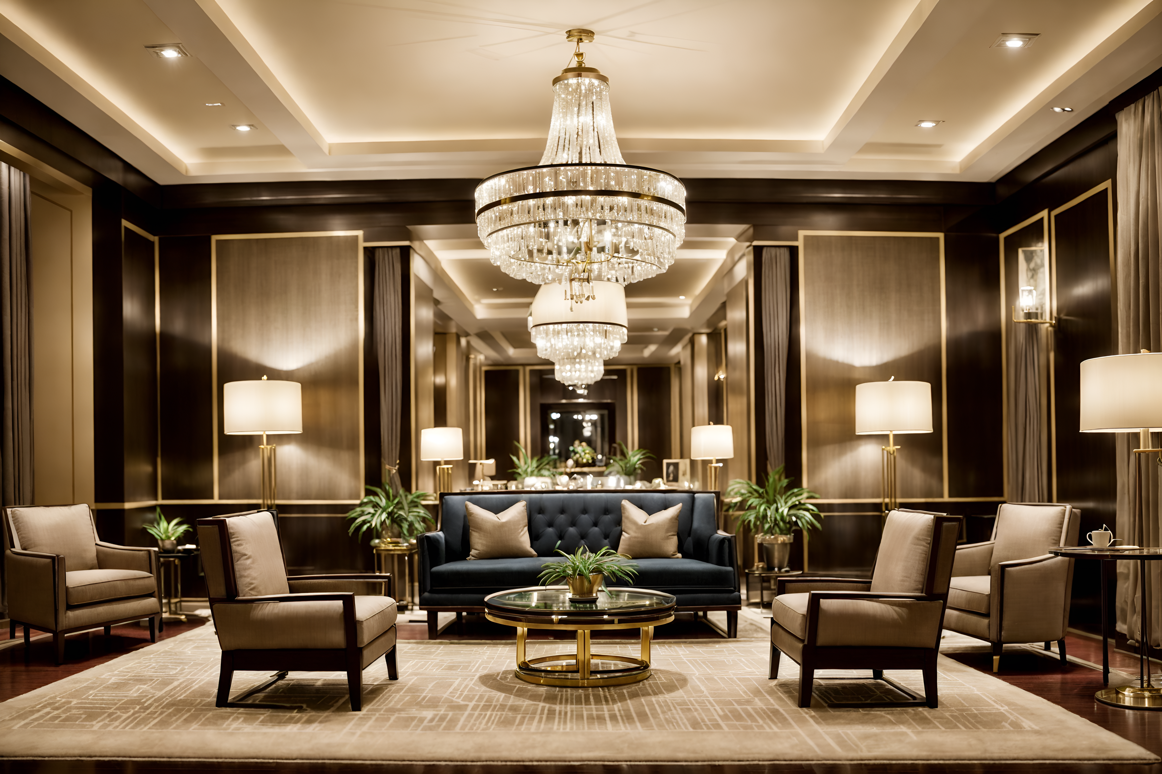 photo from pinterest of hollywood glam-style interior designed (hotel lobby interior) with lounge chairs and plant and sofas and coffee tables and rug and check in desk and hanging lamps and furniture cinematic photo, highly detailed, cinematic lighting, ultra-detailed, ultrarealistic, photorealism, 8k. trending on pinterest. hollywood glam interior design style. masterpiece, cinematic light, ultrarealistic+, photorealistic+, 8k, raw photo, realistic, sharp focus on eyes, (symmetrical eyes), (intact eyes), hyperrealistic, highest quality, best quality, , highly detailed, masterpiece, best quality, extremely detailed 8k wallpaper, masterpiece, best quality, ultra-detailed, best shadow, detailed background, detailed face, detailed eyes, high contrast, best illumination, detailed face, dulux, caustic, dynamic angle, detailed glow. dramatic lighting. highly detailed, insanely detailed hair, symmetrical, intricate details, professionally retouched, 8k high definition. strong bokeh. award winning photo.