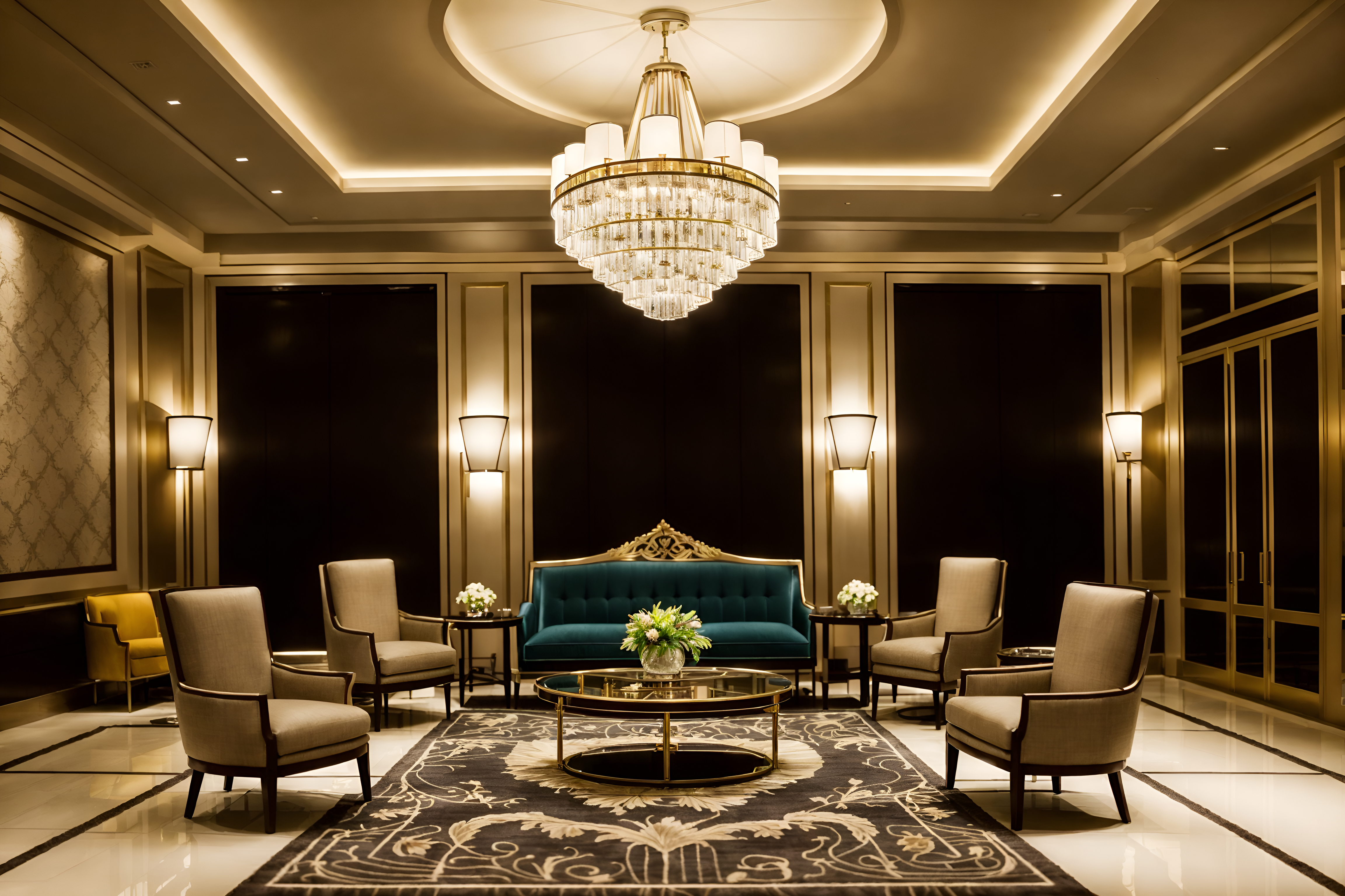 photo from pinterest of hollywood glam-style interior designed (hotel lobby interior) with lounge chairs and plant and sofas and coffee tables and rug and check in desk and hanging lamps and furniture cinematic photo, highly detailed, cinematic lighting, ultra-detailed, ultrarealistic, photorealism, 8k. trending on pinterest. hollywood glam interior design style. masterpiece, cinematic light, ultrarealistic+, photorealistic+, 8k, raw photo, realistic, sharp focus on eyes, (symmetrical eyes), (intact eyes), hyperrealistic, highest quality, best quality, , highly detailed, masterpiece, best quality, extremely detailed 8k wallpaper, masterpiece, best quality, ultra-detailed, best shadow, detailed background, detailed face, detailed eyes, high contrast, best illumination, detailed face, dulux, caustic, dynamic angle, detailed glow. dramatic lighting. highly detailed, insanely detailed hair, symmetrical, intricate details, professionally retouched, 8k high definition. strong bokeh. award winning photo.