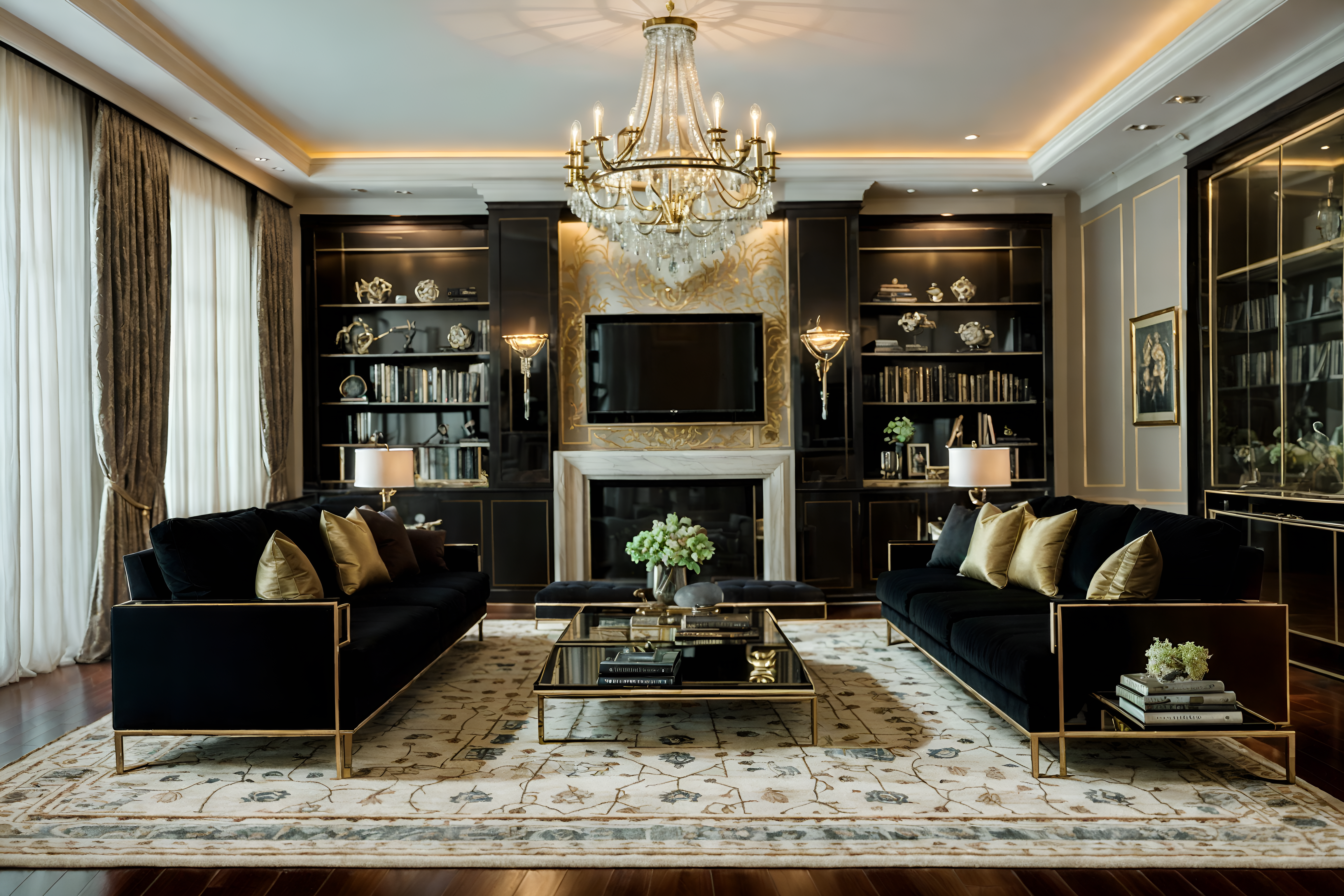 photo from pinterest of hollywood glam-style interior designed (living room interior) with sofa and electric lamps and coffee tables and occasional tables and televisions and rug and plant and bookshelves cinematic photo, highly detailed, cinematic lighting, ultra-detailed, ultrarealistic, photorealism, 8k. trending on pinterest. hollywood glam interior design style. masterpiece, cinematic light, ultrarealistic+, photorealistic+, 8k, raw photo, realistic, sharp focus on eyes, (symmetrical eyes), (intact eyes), hyperrealistic, highest quality, best quality, , highly detailed, masterpiece, best quality, extremely detailed 8k wallpaper, masterpiece, best quality, ultra-detailed, best shadow, detailed background, detailed face, detailed eyes, high contrast, best illumination, detailed face, dulux, caustic, dynamic angle, detailed glow. dramatic lighting. highly detailed, insanely detailed hair, symmetrical, intricate details, professionally retouched, 8k high definition. strong bokeh. award winning photo.