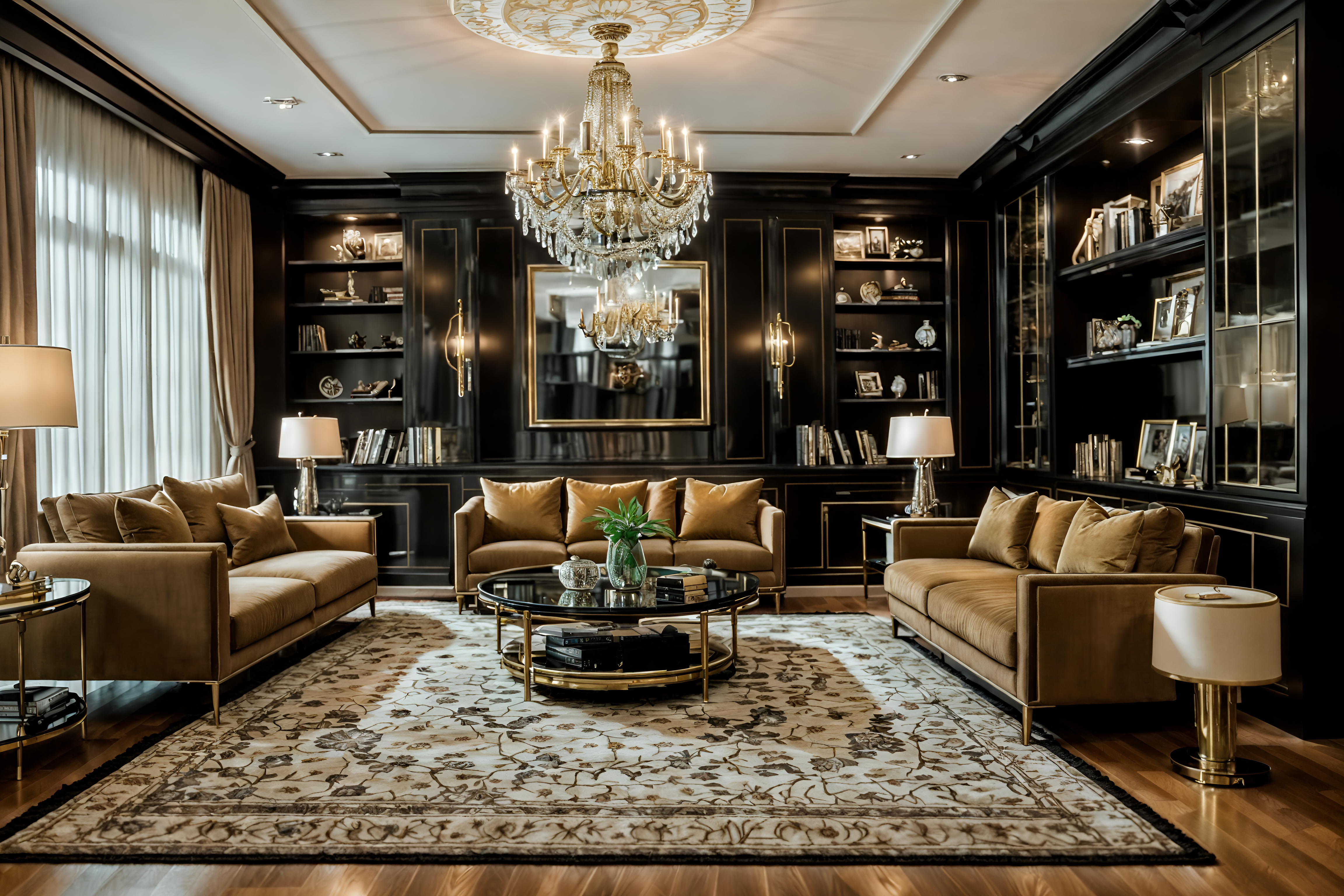 photo from pinterest of hollywood glam-style interior designed (living room interior) with sofa and electric lamps and coffee tables and occasional tables and televisions and rug and plant and bookshelves cinematic photo, highly detailed, cinematic lighting, ultra-detailed, ultrarealistic, photorealism, 8k. trending on pinterest. hollywood glam interior design style. masterpiece, cinematic light, ultrarealistic+, photorealistic+, 8k, raw photo, realistic, sharp focus on eyes, (symmetrical eyes), (intact eyes), hyperrealistic, highest quality, best quality, , highly detailed, masterpiece, best quality, extremely detailed 8k wallpaper, masterpiece, best quality, ultra-detailed, best shadow, detailed background, detailed face, detailed eyes, high contrast, best illumination, detailed face, dulux, caustic, dynamic angle, detailed glow. dramatic lighting. highly detailed, insanely detailed hair, symmetrical, intricate details, professionally retouched, 8k high definition. strong bokeh. award winning photo.