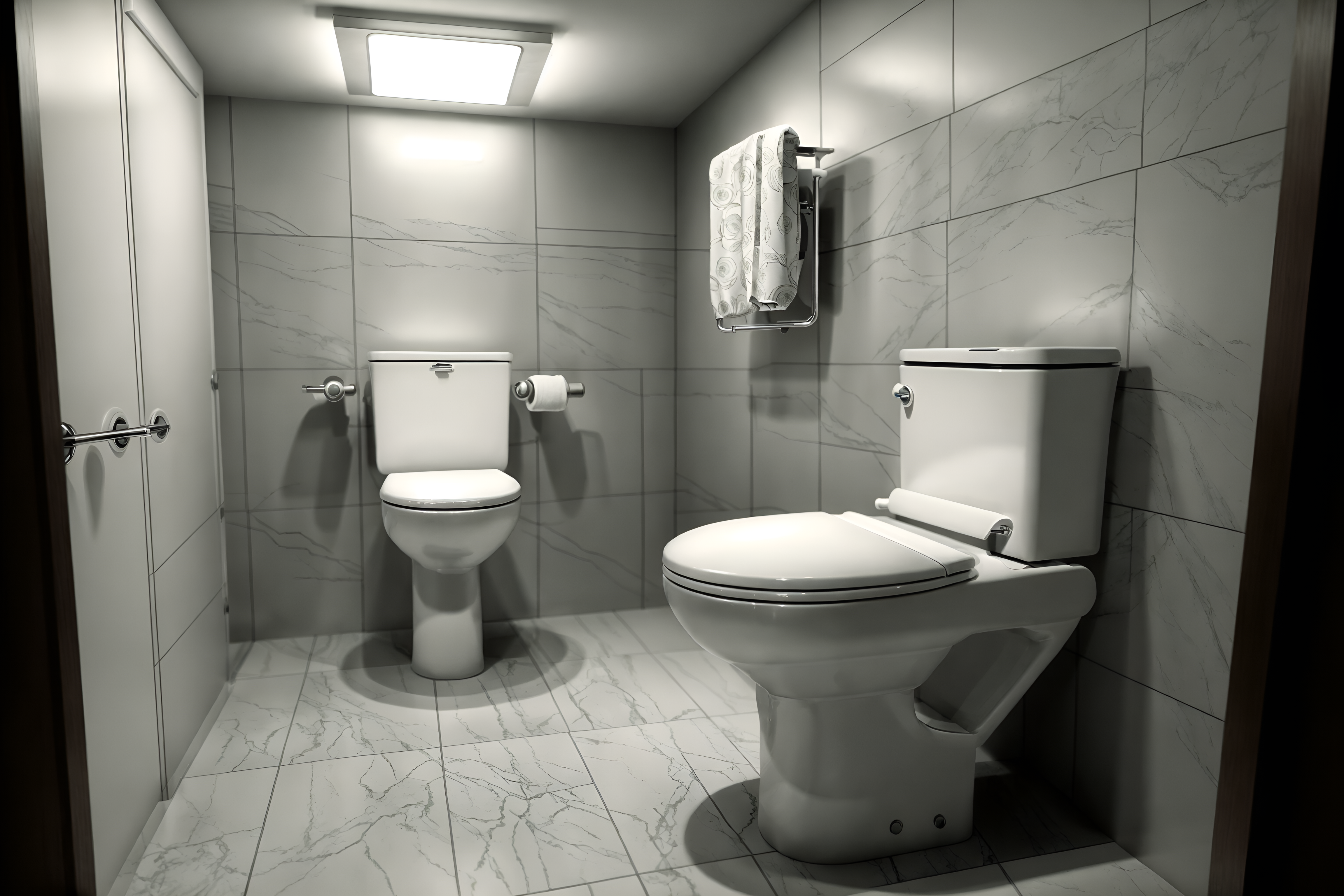 photo from pinterest of hollywood glam-style interior designed (toilet interior) with toilet with toilet seat up and toilet paper hanger and sink with tap and toilet with toilet seat up cinematic photo, highly detailed, cinematic lighting, ultra-detailed, ultrarealistic, photorealism, 8k. trending on pinterest. hollywood glam interior design style. masterpiece, cinematic light, ultrarealistic+, photorealistic+, 8k, raw photo, realistic, sharp focus on eyes, (symmetrical eyes), (intact eyes), hyperrealistic, highest quality, best quality, , highly detailed, masterpiece, best quality, extremely detailed 8k wallpaper, masterpiece, best quality, ultra-detailed, best shadow, detailed background, detailed face, detailed eyes, high contrast, best illumination, detailed face, dulux, caustic, dynamic angle, detailed glow. dramatic lighting. highly detailed, insanely detailed hair, symmetrical, intricate details, professionally retouched, 8k high definition. strong bokeh. award winning photo.