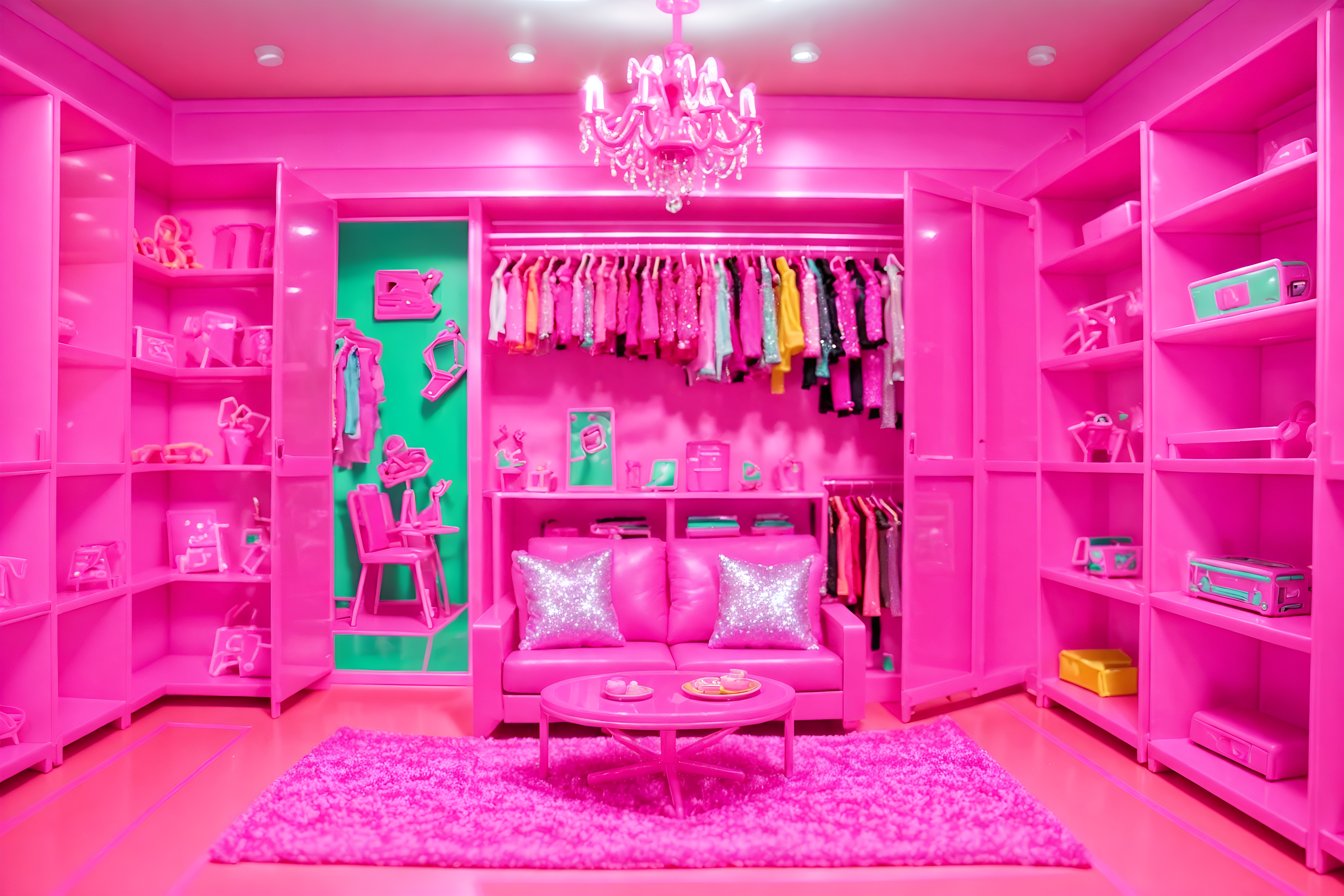 photo from pinterest of hot pink-style interior designed (clothing store interior) . with barbie closet and barbie plastic interior and barbie sofa and barbie chairs and hot pink barbie walls and barbie style interior and barbie bold rosy hues like fuchsia and magenta and barbie glitter and sparkle. . cinematic photo, highly detailed, cinematic lighting, ultra-detailed, ultrarealistic, photorealism, 8k. trending on pinterest. hot pink interior design style. masterpiece, cinematic light, ultrarealistic+, photorealistic+, 8k, raw photo, realistic, sharp focus on eyes, (symmetrical eyes), (intact eyes), hyperrealistic, highest quality, best quality, , highly detailed, masterpiece, best quality, extremely detailed 8k wallpaper, masterpiece, best quality, ultra-detailed, best shadow, detailed background, detailed face, detailed eyes, high contrast, best illumination, detailed face, dulux, caustic, dynamic angle, detailed glow. dramatic lighting. highly detailed, insanely detailed hair, symmetrical, intricate details, professionally retouched, 8k high definition. strong bokeh. award winning photo.