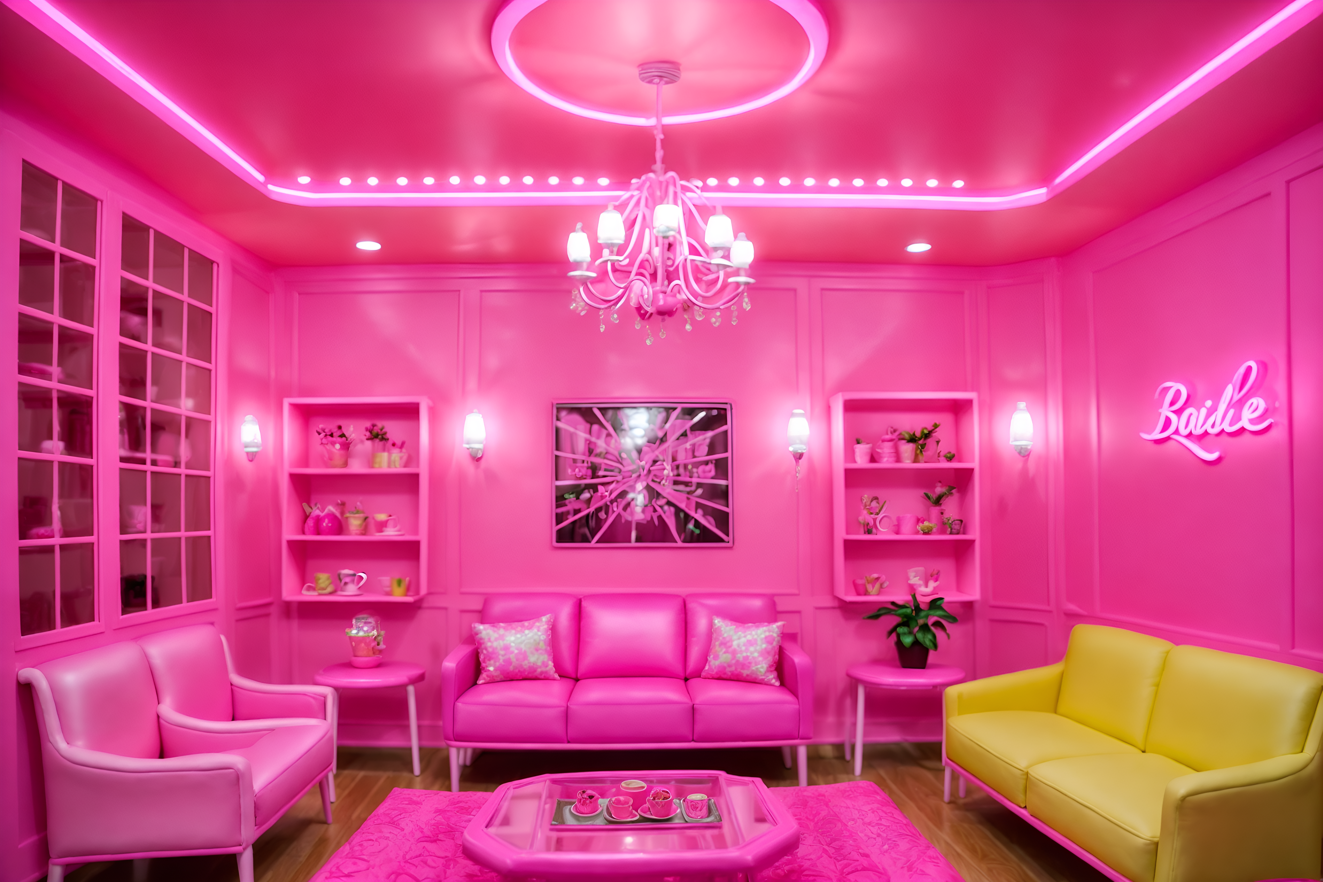 photo from pinterest of hot pink-style interior designed (coffee shop interior) . with barbie sofa and barbie closet and barbie bold rosy hues like fuchsia and magenta and barbie plastic interior and hot pink barbie colors and barbie style interior and hot pink barbie walls and barbie glitter and sparkle. . cinematic photo, highly detailed, cinematic lighting, ultra-detailed, ultrarealistic, photorealism, 8k. trending on pinterest. hot pink interior design style. masterpiece, cinematic light, ultrarealistic+, photorealistic+, 8k, raw photo, realistic, sharp focus on eyes, (symmetrical eyes), (intact eyes), hyperrealistic, highest quality, best quality, , highly detailed, masterpiece, best quality, extremely detailed 8k wallpaper, masterpiece, best quality, ultra-detailed, best shadow, detailed background, detailed face, detailed eyes, high contrast, best illumination, detailed face, dulux, caustic, dynamic angle, detailed glow. dramatic lighting. highly detailed, insanely detailed hair, symmetrical, intricate details, professionally retouched, 8k high definition. strong bokeh. award winning photo.