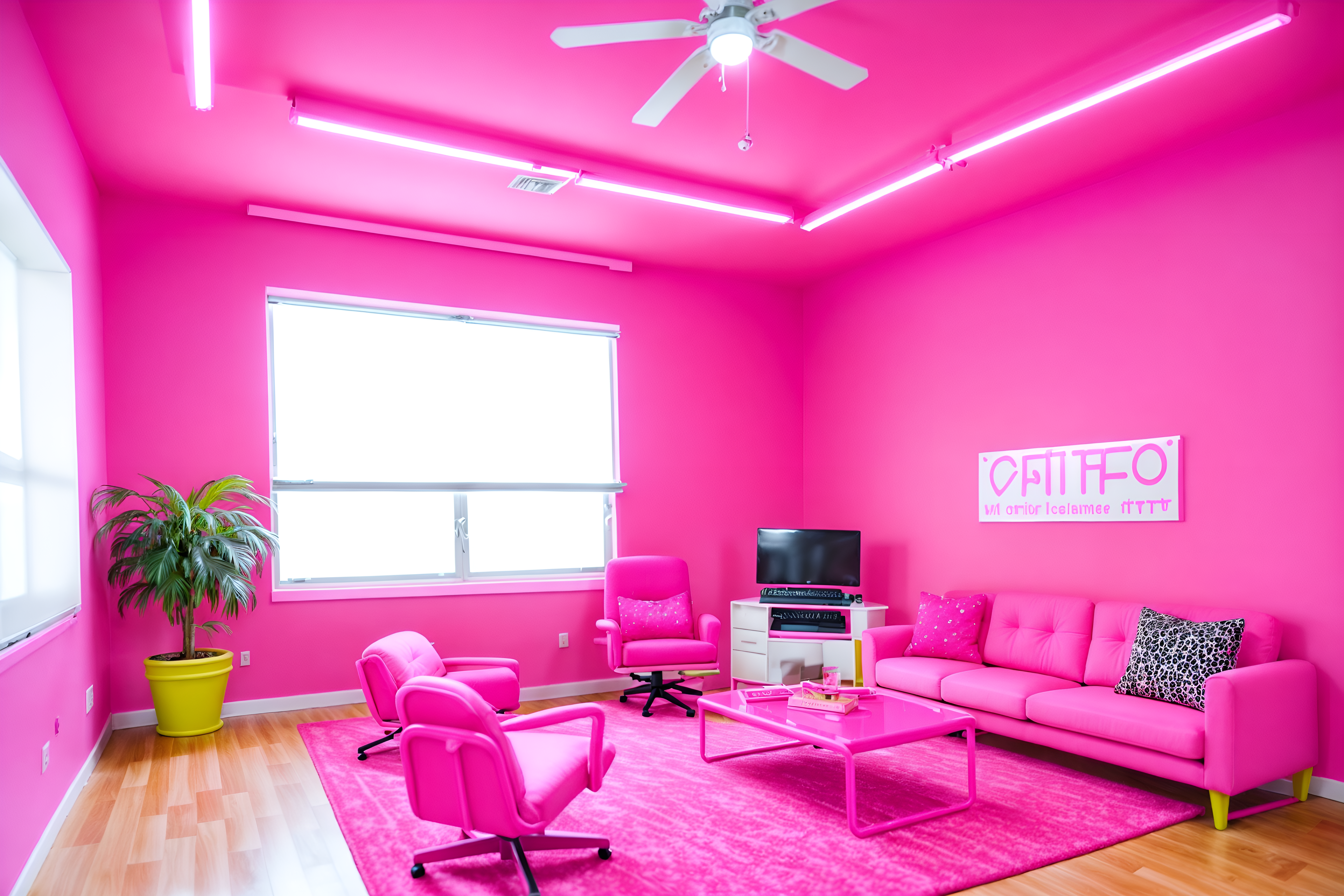 photo from pinterest of hot pink-style interior designed (coworking space interior) with office chairs and lounge chairs and office desks and seating area with sofa and office chairs. . with barbie sofa and barbie plastic interior and barbie chairs and barbie bold rosy hues like fuchsia and magenta and barbie closet and hot pink barbie colors and barbie glitter and sparkle and hot pink barbie walls. . cinematic photo, highly detailed, cinematic lighting, ultra-detailed, ultrarealistic, photorealism, 8k. trending on pinterest. hot pink interior design style. masterpiece, cinematic light, ultrarealistic+, photorealistic+, 8k, raw photo, realistic, sharp focus on eyes, (symmetrical eyes), (intact eyes), hyperrealistic, highest quality, best quality, , highly detailed, masterpiece, best quality, extremely detailed 8k wallpaper, masterpiece, best quality, ultra-detailed, best shadow, detailed background, detailed face, detailed eyes, high contrast, best illumination, detailed face, dulux, caustic, dynamic angle, detailed glow. dramatic lighting. highly detailed, insanely detailed hair, symmetrical, intricate details, professionally retouched, 8k high definition. strong bokeh. award winning photo.