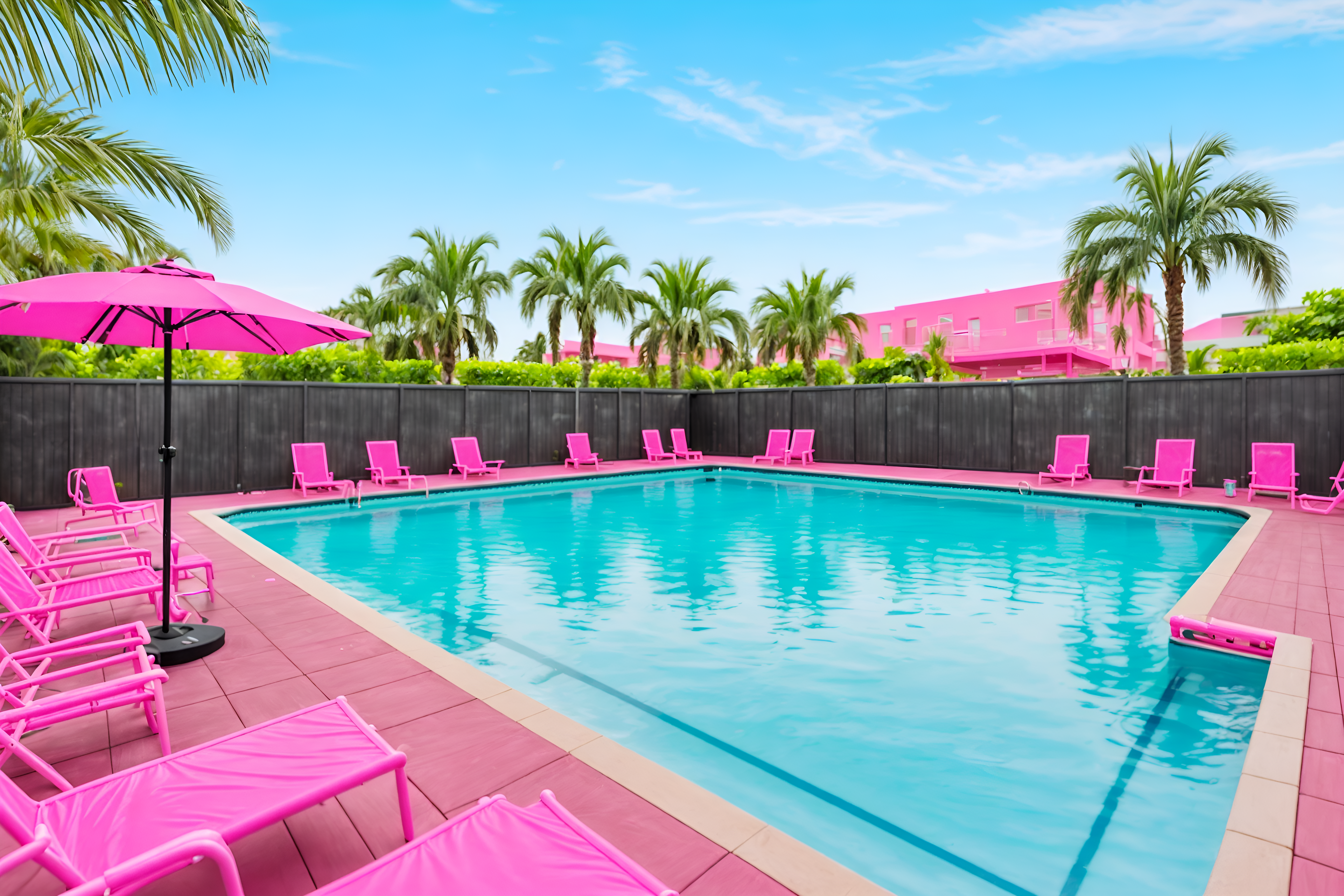 photo from pinterest of hot pink-style designed (outdoor pool area ) with pool lounge chairs and pool and pool lights and pool lounge chairs. . with barbie chairs and barbie style and barbie closet and hot pink barbie walls and barbie bold rosy hues like fuchsia and magenta and hot pink barbie colors and barbie plastic and barbie glitter and sparkle. . cinematic photo, highly detailed, cinematic lighting, ultra-detailed, ultrarealistic, photorealism, 8k. trending on pinterest. hot pink design style. masterpiece, cinematic light, ultrarealistic+, photorealistic+, 8k, raw photo, realistic, sharp focus on eyes, (symmetrical eyes), (intact eyes), hyperrealistic, highest quality, best quality, , highly detailed, masterpiece, best quality, extremely detailed 8k wallpaper, masterpiece, best quality, ultra-detailed, best shadow, detailed background, detailed face, detailed eyes, high contrast, best illumination, detailed face, dulux, caustic, dynamic angle, detailed glow. dramatic lighting. highly detailed, insanely detailed hair, symmetrical, intricate details, professionally retouched, 8k high definition. strong bokeh. award winning photo.