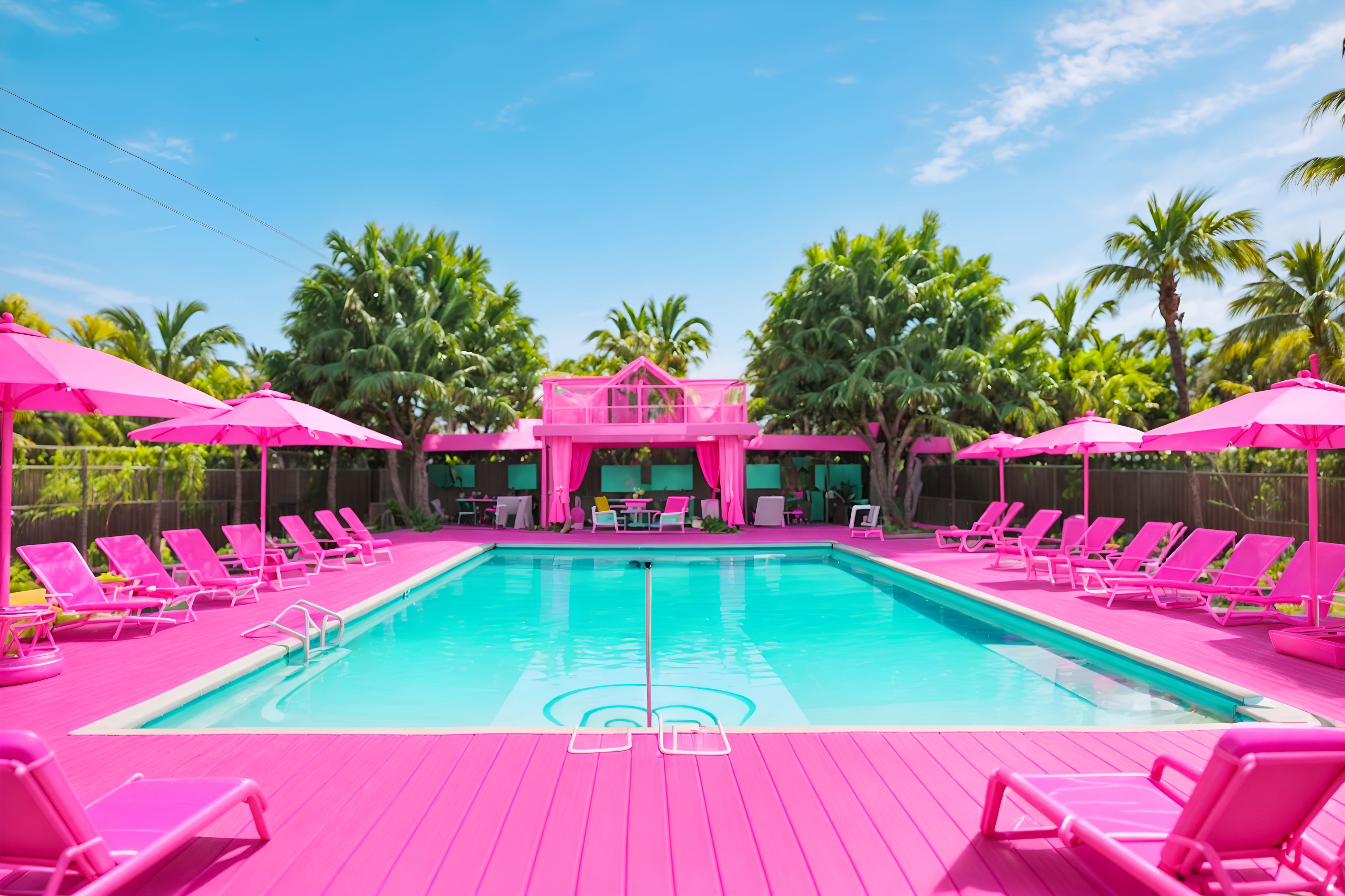 photo from pinterest of hot pink-style designed (outdoor pool area ) with pool lounge chairs and pool and pool lights and pool lounge chairs. . with barbie chairs and barbie style and barbie closet and hot pink barbie walls and barbie bold rosy hues like fuchsia and magenta and hot pink barbie colors and barbie plastic and barbie glitter and sparkle. . cinematic photo, highly detailed, cinematic lighting, ultra-detailed, ultrarealistic, photorealism, 8k. trending on pinterest. hot pink design style. masterpiece, cinematic light, ultrarealistic+, photorealistic+, 8k, raw photo, realistic, sharp focus on eyes, (symmetrical eyes), (intact eyes), hyperrealistic, highest quality, best quality, , highly detailed, masterpiece, best quality, extremely detailed 8k wallpaper, masterpiece, best quality, ultra-detailed, best shadow, detailed background, detailed face, detailed eyes, high contrast, best illumination, detailed face, dulux, caustic, dynamic angle, detailed glow. dramatic lighting. highly detailed, insanely detailed hair, symmetrical, intricate details, professionally retouched, 8k high definition. strong bokeh. award winning photo.