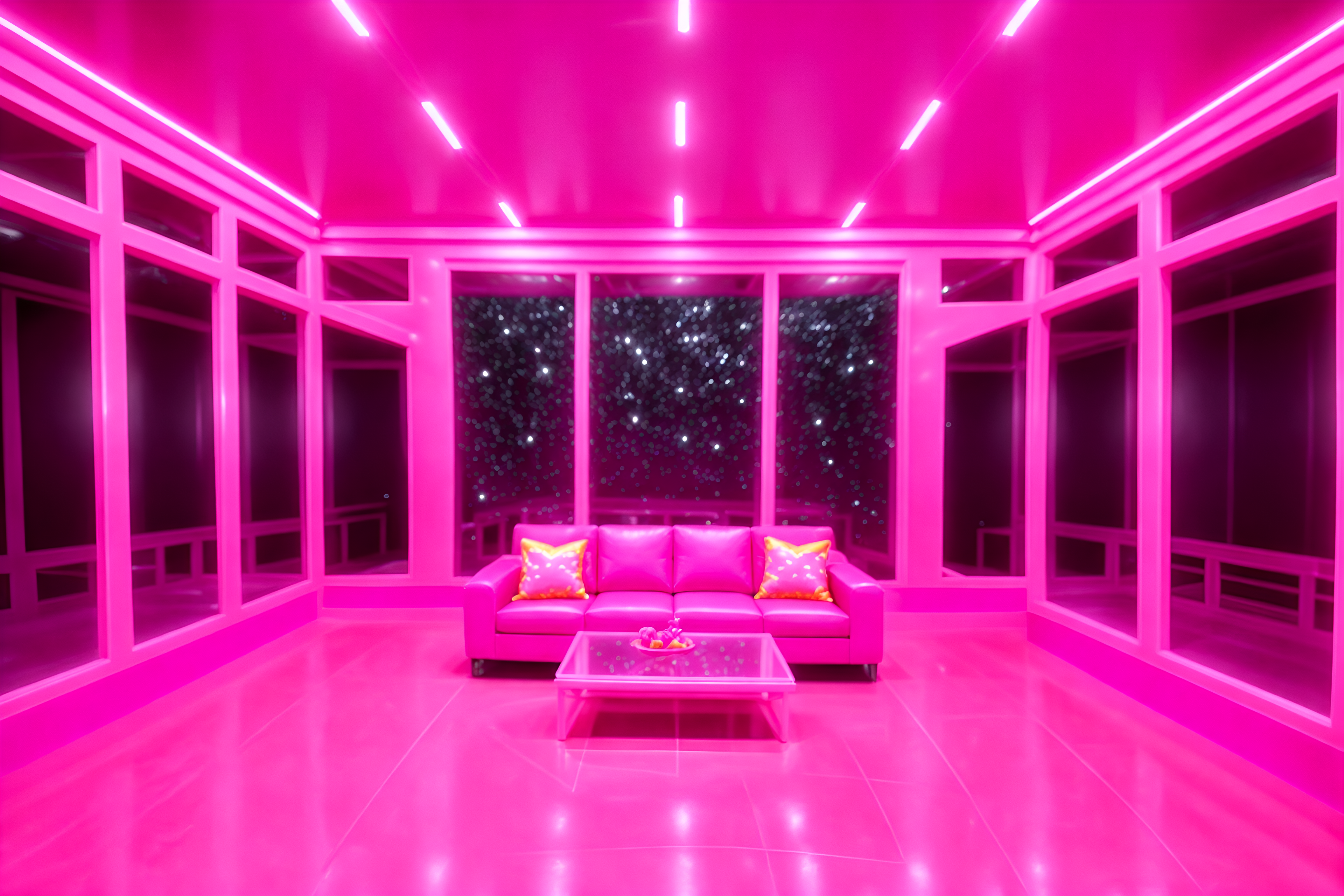photo from pinterest of hot pink-style interior designed (exhibition space interior) . with hot pink barbie walls and barbie glitter and sparkle and hot pink barbie colors and barbie plastic interior and barbie sofa and barbie closet and barbie style interior and barbie bold rosy hues like fuchsia and magenta. . cinematic photo, highly detailed, cinematic lighting, ultra-detailed, ultrarealistic, photorealism, 8k. trending on pinterest. hot pink interior design style. masterpiece, cinematic light, ultrarealistic+, photorealistic+, 8k, raw photo, realistic, sharp focus on eyes, (symmetrical eyes), (intact eyes), hyperrealistic, highest quality, best quality, , highly detailed, masterpiece, best quality, extremely detailed 8k wallpaper, masterpiece, best quality, ultra-detailed, best shadow, detailed background, detailed face, detailed eyes, high contrast, best illumination, detailed face, dulux, caustic, dynamic angle, detailed glow. dramatic lighting. highly detailed, insanely detailed hair, symmetrical, intricate details, professionally retouched, 8k high definition. strong bokeh. award winning photo.