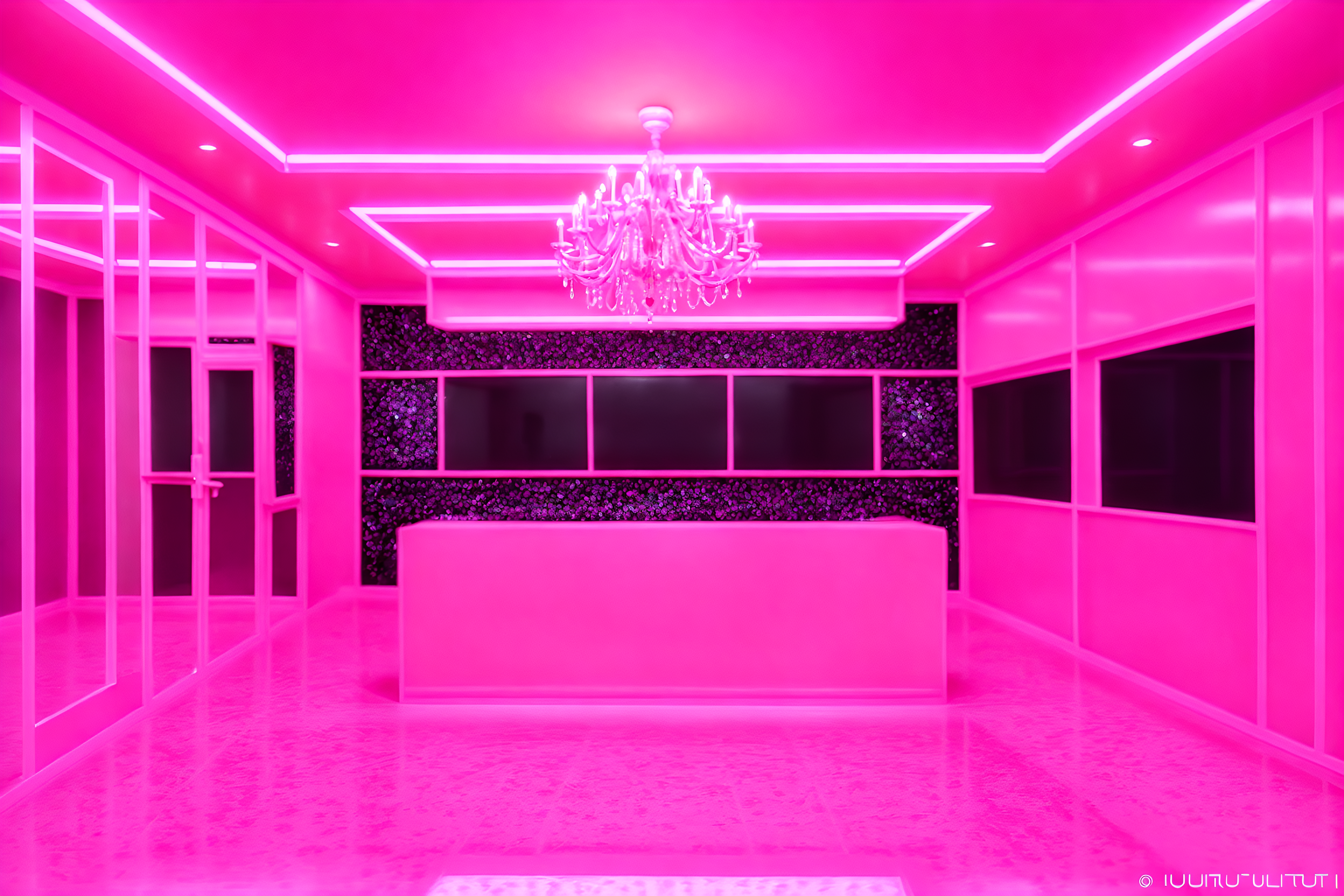 photo from pinterest of hot pink-style interior designed (exhibition space interior) . with hot pink barbie walls and barbie glitter and sparkle and hot pink barbie colors and barbie plastic interior and barbie sofa and barbie closet and barbie style interior and barbie bold rosy hues like fuchsia and magenta. . cinematic photo, highly detailed, cinematic lighting, ultra-detailed, ultrarealistic, photorealism, 8k. trending on pinterest. hot pink interior design style. masterpiece, cinematic light, ultrarealistic+, photorealistic+, 8k, raw photo, realistic, sharp focus on eyes, (symmetrical eyes), (intact eyes), hyperrealistic, highest quality, best quality, , highly detailed, masterpiece, best quality, extremely detailed 8k wallpaper, masterpiece, best quality, ultra-detailed, best shadow, detailed background, detailed face, detailed eyes, high contrast, best illumination, detailed face, dulux, caustic, dynamic angle, detailed glow. dramatic lighting. highly detailed, insanely detailed hair, symmetrical, intricate details, professionally retouched, 8k high definition. strong bokeh. award winning photo.