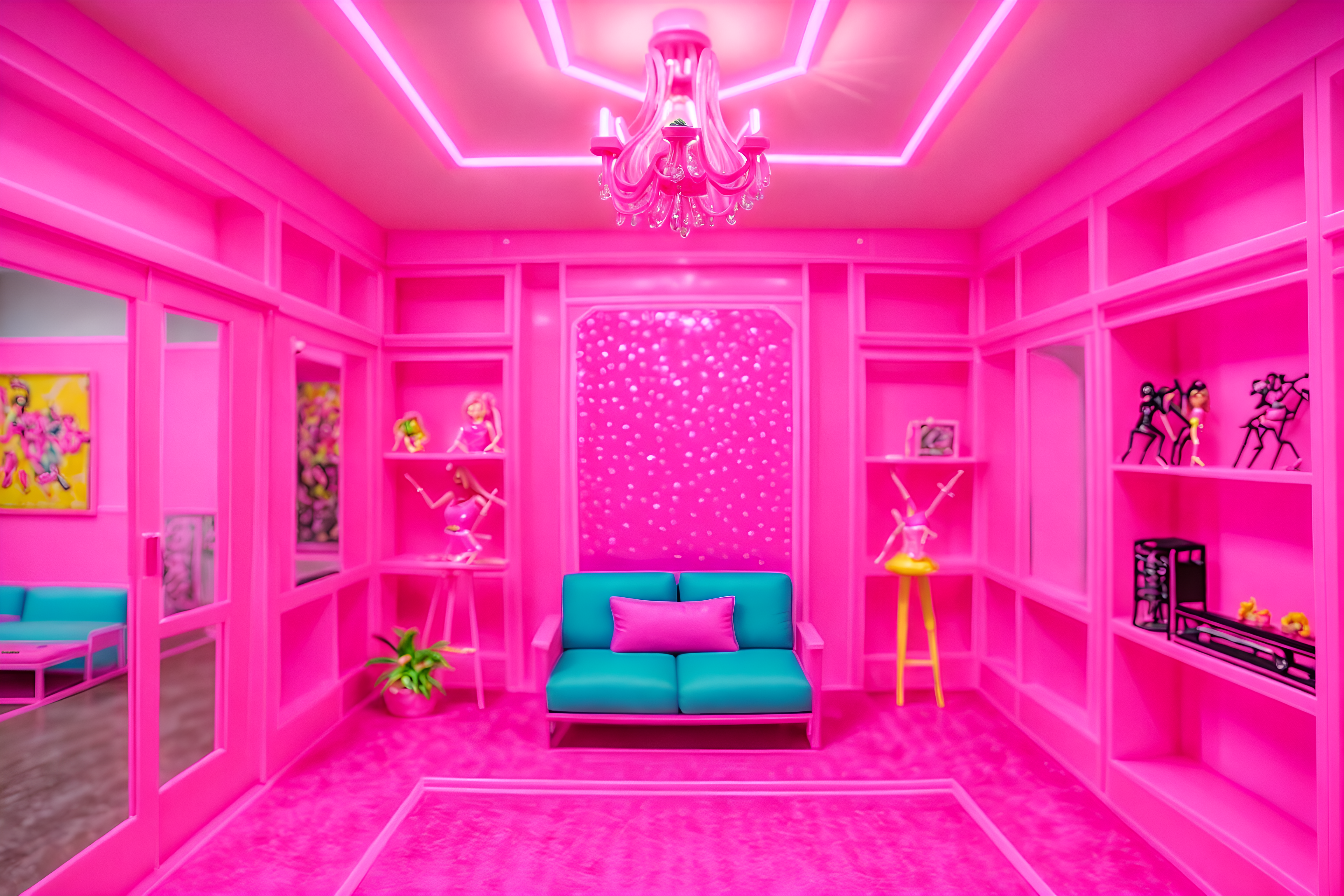 photo from pinterest of hot pink-style interior designed (exhibition space interior) . with hot pink barbie walls and barbie glitter and sparkle and hot pink barbie colors and barbie plastic interior and barbie sofa and barbie closet and barbie style interior and barbie bold rosy hues like fuchsia and magenta. . cinematic photo, highly detailed, cinematic lighting, ultra-detailed, ultrarealistic, photorealism, 8k. trending on pinterest. hot pink interior design style. masterpiece, cinematic light, ultrarealistic+, photorealistic+, 8k, raw photo, realistic, sharp focus on eyes, (symmetrical eyes), (intact eyes), hyperrealistic, highest quality, best quality, , highly detailed, masterpiece, best quality, extremely detailed 8k wallpaper, masterpiece, best quality, ultra-detailed, best shadow, detailed background, detailed face, detailed eyes, high contrast, best illumination, detailed face, dulux, caustic, dynamic angle, detailed glow. dramatic lighting. highly detailed, insanely detailed hair, symmetrical, intricate details, professionally retouched, 8k high definition. strong bokeh. award winning photo.